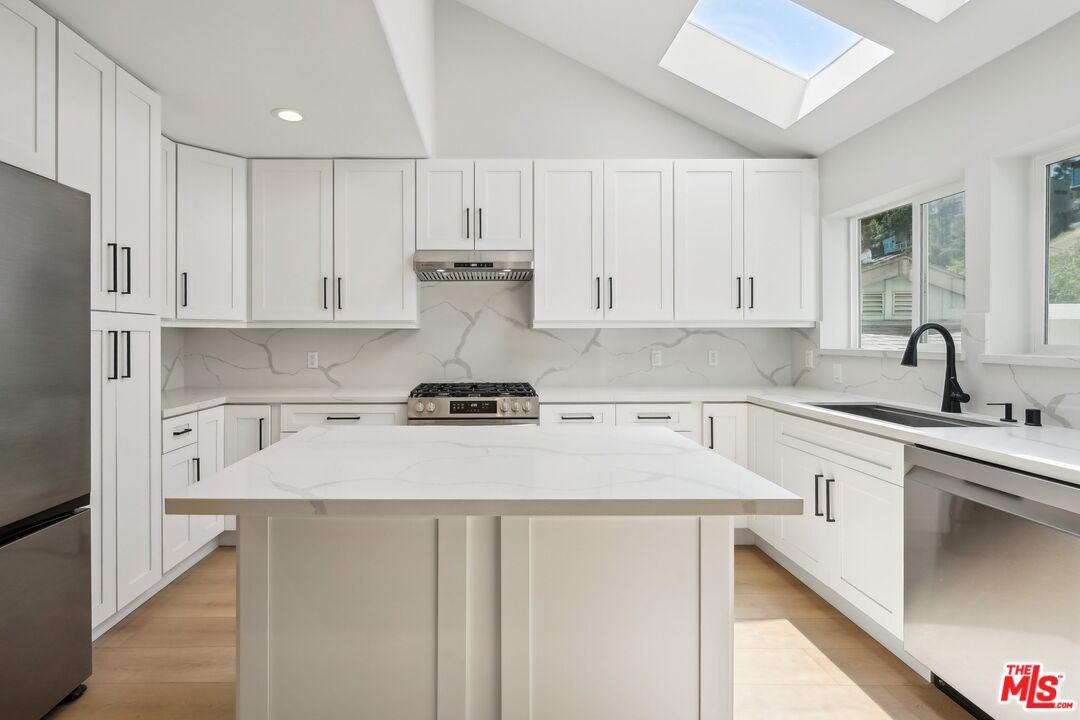 Nestled in the serene hills of Woodland Hills, this beautifully remodeled home offers an exquisite blend of modern comfort, breathtaking city views and natural beauty. With 3 spacious bedrooms and 2.5 bathrooms, this property is designed for both style and functionality. Step inside to a sunlit living room, where skylights fill the space with natural light, creating a warm and inviting ambiance. The thoughtfully designed floor plan includes a separate dining room and a cozy breakfast area, perfect for casual mornings. Work from home effortlessly in the dedicated office room, and enjoy the convenience of a family room that offers ample space for relaxation. A large storage closet room ensures all your belongings are neatly organized, while the laundry room, complete with a washer and dryer, adds to the home's convenience. The property also features a large basement storage area in addition to the garage, providing an abundance of space for your storage needs. With its fresh, complete remodel, this home is move-in ready and waiting for its next resident to enjoy the perfect combination of comfort and sophistication.Interested in this Listing?