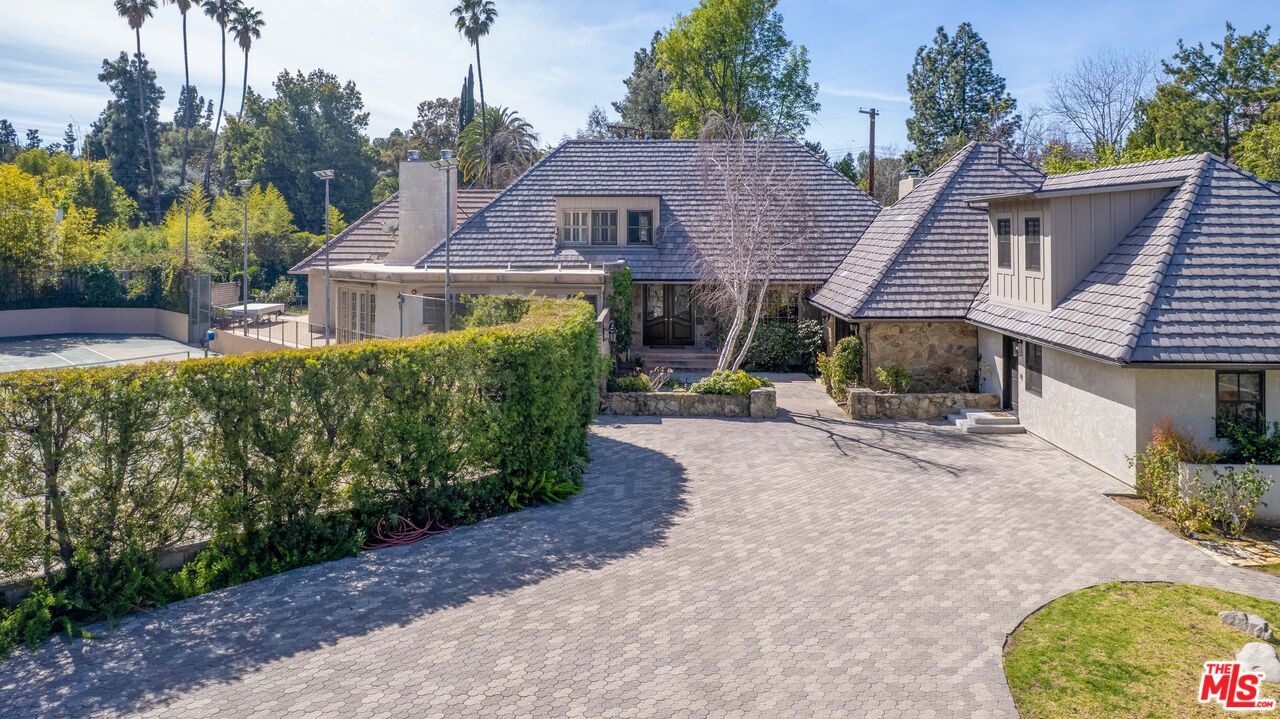 Located south of Ventura Blvd., secluded down a long gated driveway is this elegant Country French tennis court estate designed by famed architect to the stars Hal Levitt. Offering 6 bedroom & 4.5 bathroom on an over 32,000sf flat lot, this impressive compound is complete with custom paver motor-court, sparkling pool, expansive grassy yard, north/south lighted tennis court and newly finished two story attached A.D.U. with separate address of 5200 1/2 Collier Place. The double door entry opens to a grand living room featuring soaring beamed ceilings, floor to ceiling stone fireplace, original wood floors, large formal dining room suitable to host 10 guests, family room adjacent to the updated eat-in kitchen. French doors from every room lead to an outdoor covered portico overlooking the pool and grounds. First floor newly remodeled and spacious primary suite includes a beautiful spa-like bathroom with separate shower, free-standing claw foot tub, walk-in closet and French doors opening to a deck and hot tub. Upstairs consists of 2 guest bedrooms, an office, guest bathroom and plenty of extra storage in the accessible attic space. Set back behind gates at the end of the cul-de-sac, this Tarzana adjacent property, just minutes to bustling Ventura Blvd. shops and restaurants, provides everything you need to make this private estate your forever home. Also available for sale at $3,299,000.Interested in this Listing?
