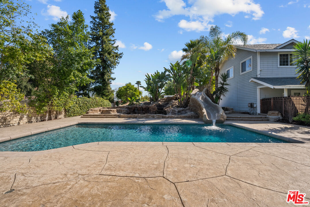 This stunning single-story home offers 4 bedrooms and 3.5 bathrooms, including three ensuite bedrooms for ultimate comfort and privacy. A grand circular driveway welcomes you to an open layout with vaulted ceilings, a cozy fireplace, and a chef's kitchen featuring granite counters, stainless steel appliances, and a brick oven.Step outside to your resort-style backyard, complete with a grotto pool, rock waterslide, and built-in BBQ perfect for entertaining or relaxing in the sun. The spacious primary suite boasts direct outdoor access and a spa-like bath with soaking tub and walk-in shower. A flexible fourth bedroom is ideal for a home office, gym, or guest room. Finished with a two-car garage, this home blends luxury, lifestyle, and convenience. Don't miss the chance to live like you're on vacation, Schedule your private tour today!Interested in this Listing?
