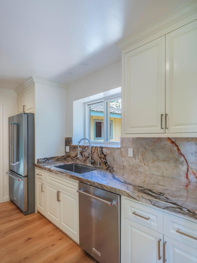 Completely remodeled luxurious must-see home in downtown Carmel-By-The-Sea's famed "Golden Rectangle." This charming cottage offers the perfect combination of modern upgrades and coastal elegance. It is ideal for those seeking comfort and luxury just six blocks from Carmel Beach and downtown. The open-beamed wood ceilings and brand-new wood-clad windows allow natural light to flood the interior and create a warm, inviting ambiance. The addition of new hardwood floors throughout adds both stye and durability to the home, while the updated kitchen has been completely recreated and opened up to create a comfortable, modern atmosphere for family and guest entertaining. Every detail has been carefully considered, including new plumbing, electrical, forced-air furnace, and a tankless water heater. The heated bathroom floors provide an added touch of luxury. Private decking outside the primary bedroom, as well as a large deck accessed from the living and dining rooms through large slidingInterested in this Listing?