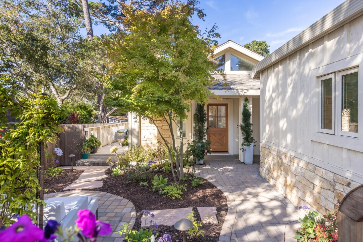 Single-level living in downtown Carmel by the Sea. This charming home offers a great open concept floor plan. Abundant natural light, vaulted ceilings, wood floors & custom wall colors bring to mind a beach lifestyle. Folding patio doors seamlessly disappear to reveal glorious gardens & decks. The kitchen has a Sub-Zero fridge, Wolf Range, built-in espresso machine & large marble-topped island. The primary suite retreat has access to a private deck, separate tub, shower & walk-in closet. Newly built in 2019, lightly lived in, the lush landscaping creates a sense of privacy & coziness. Air conditioning, living room FP, piped-in gas BBQ, new smart home system, on-demand hot water & security system make this home turn-key & ready to be enjoyed immediately. The finished garage with stone exterior adds to its Carmel cottage feel. A must-see home if you're looking for new, one level, close to the beach, downtown shopping & dining, all of which our charming ViInterested in this Listing?