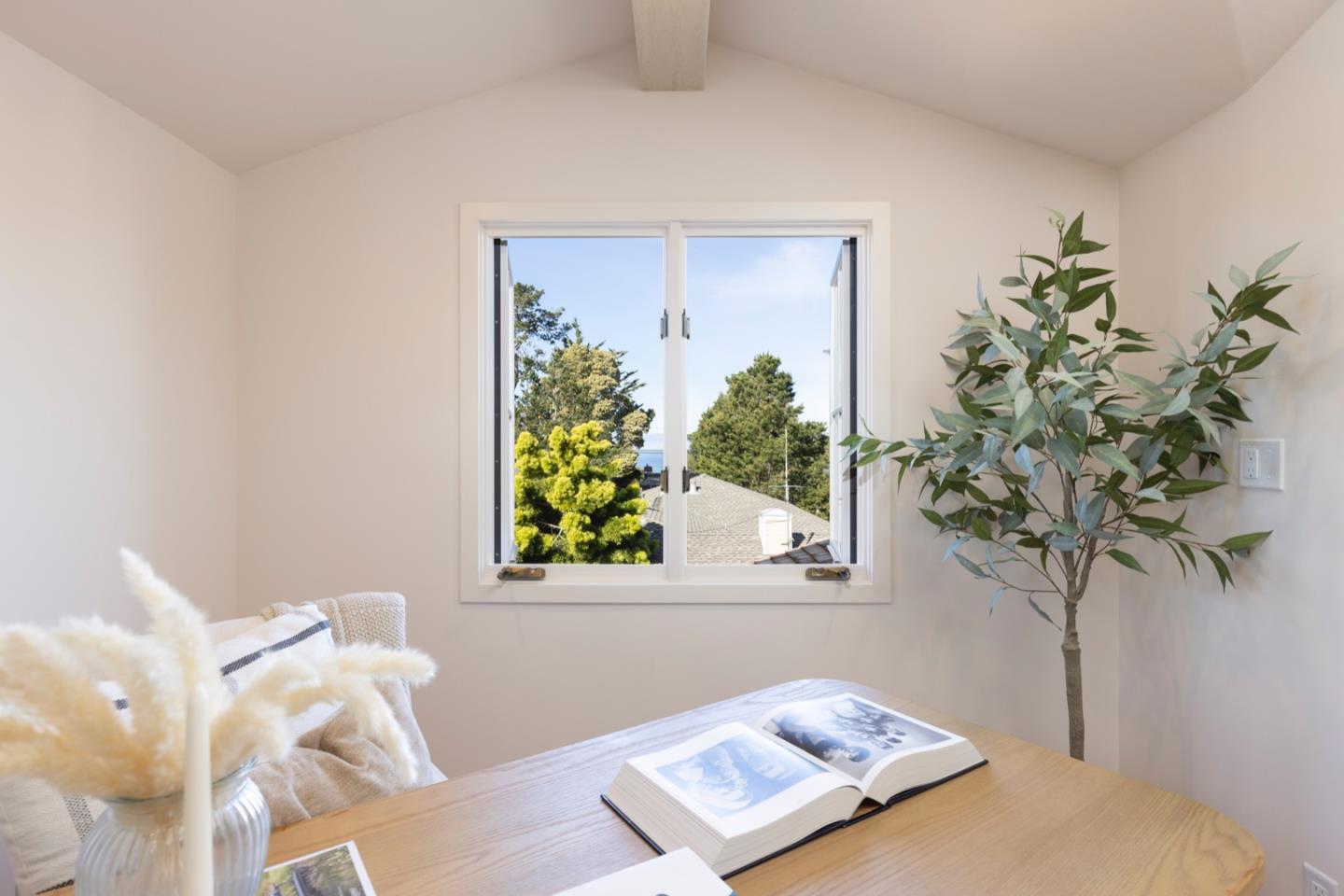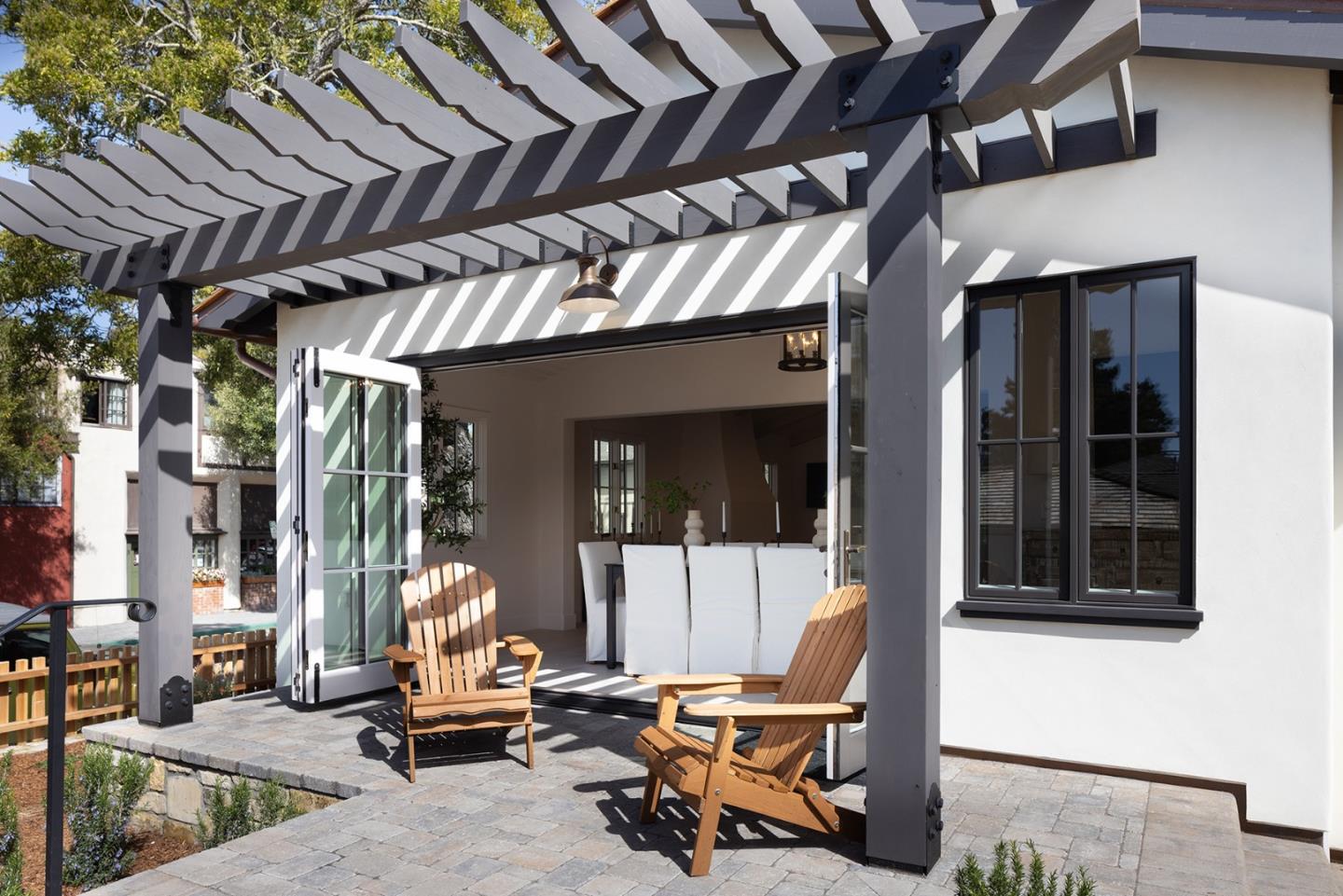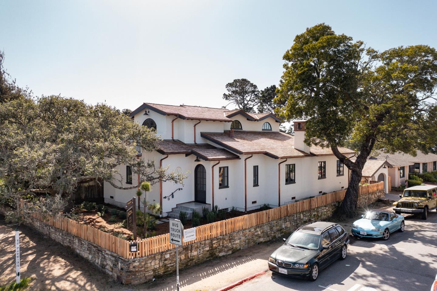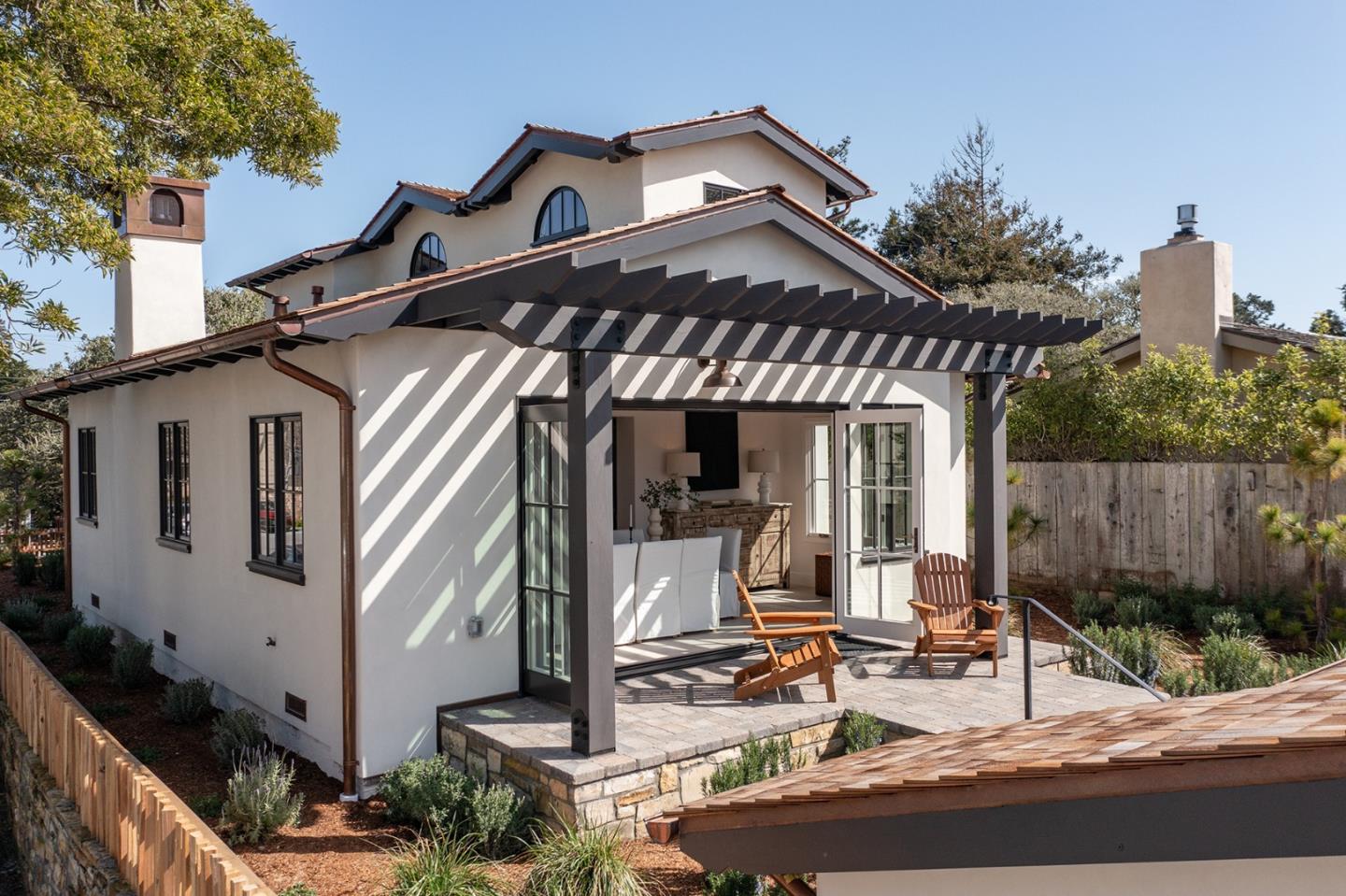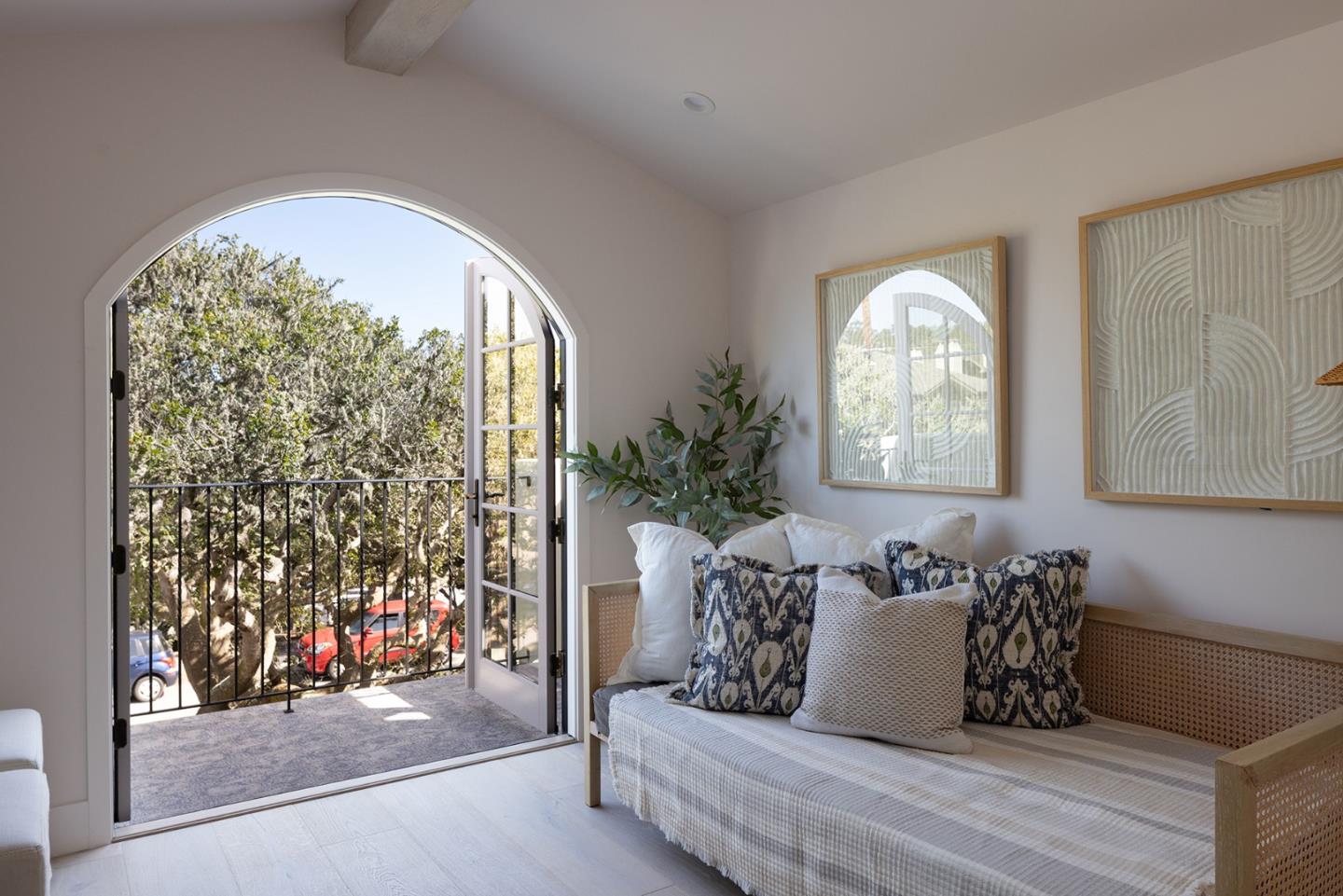 Claudio Ortiz designed Modern-Spanish style new construction home located half block to restaurants & shops in the heart of Carmel-by-the-Sea Village. Highly customized white interior with open flowing floor plan, arched doorways, & blond European Oak hardwood floorings. Kitchen in high end materials with Taj Majal colored Quartz counters, white Moroccan Zellige square-tile backsplash. Touches of custom chosen colorful tiles in multiple areas and on toe kicks all the way up the staircase. Downstairs primary bedroom with bath in custom Spanish tile installation with aqua and blue colored pattern plus large and finished walk-in closet with multiple lighting sources. Upstairs bath in unique aqua blue colored four-piece tile pattern on the floor & up the wall behind tub. "Juliet balcony" over San Carlos with enchanting view into grand, ancient Oak Tree canopy plus West facing peek of Carmel Bay ocean. Wide contemporary, folding glass wall of French-doors opens totally for a hugInterested in this Listing?