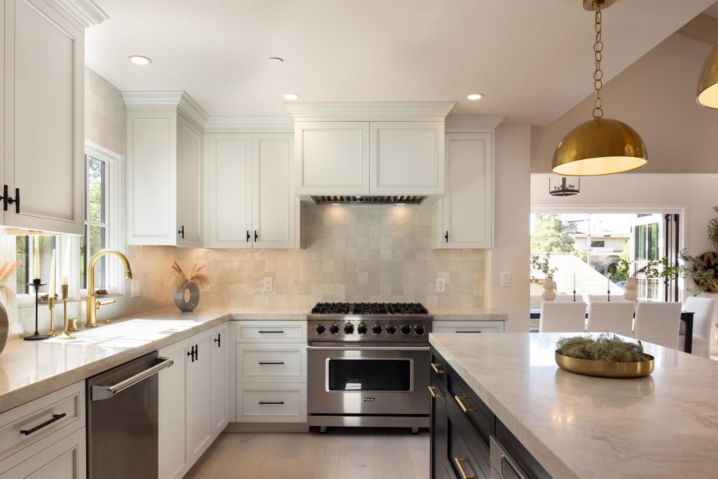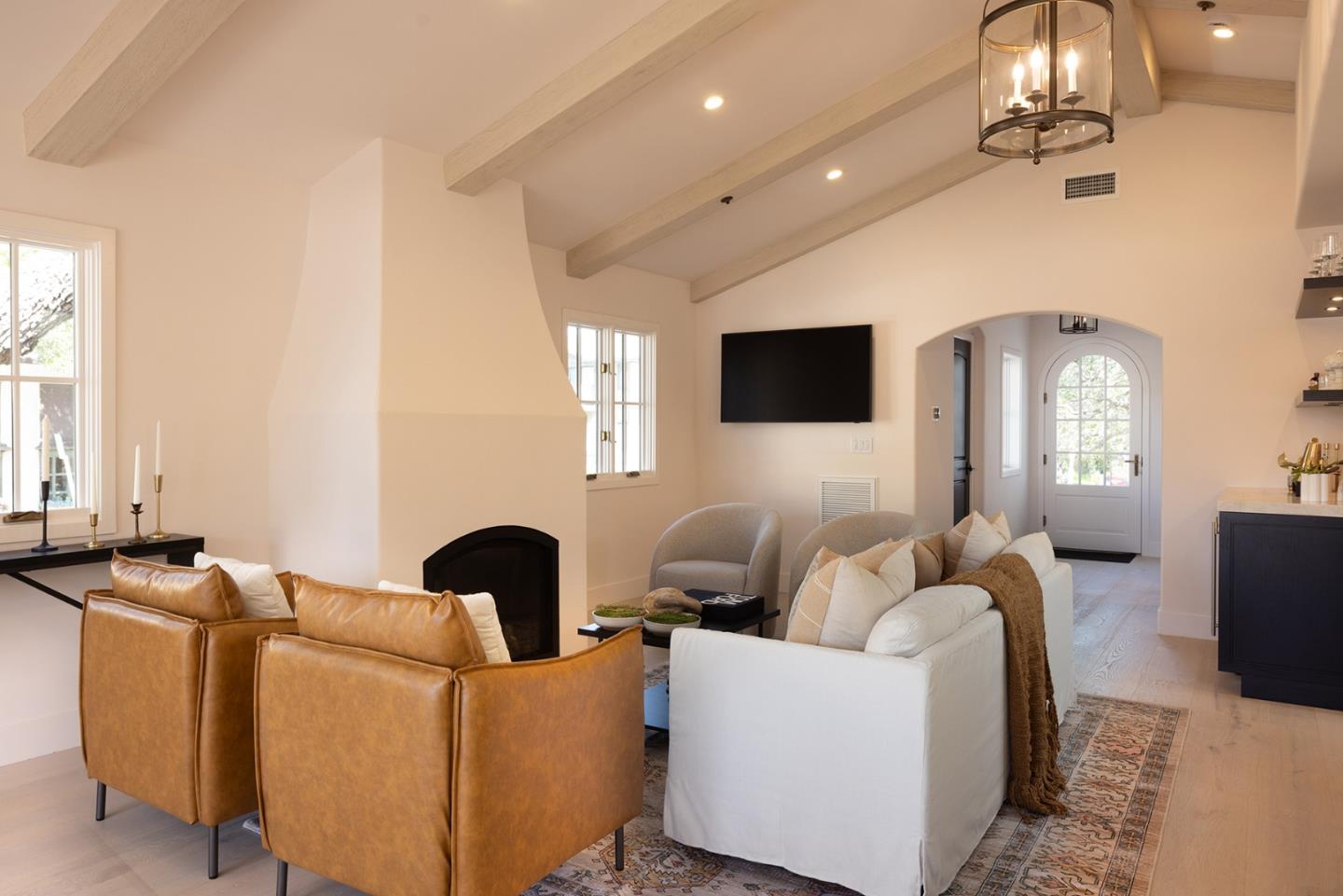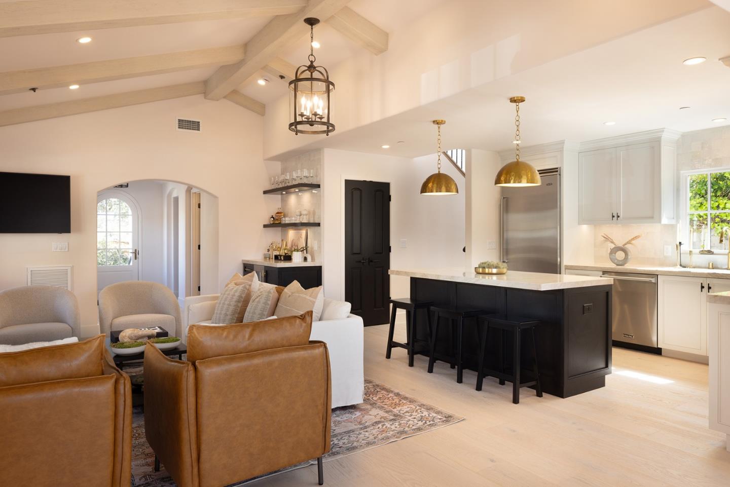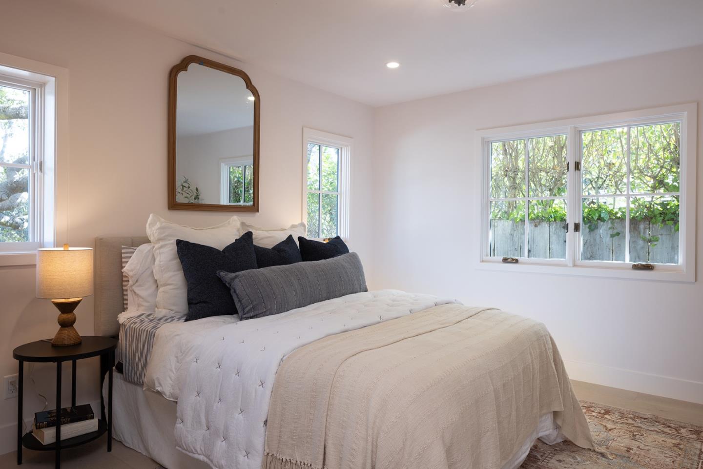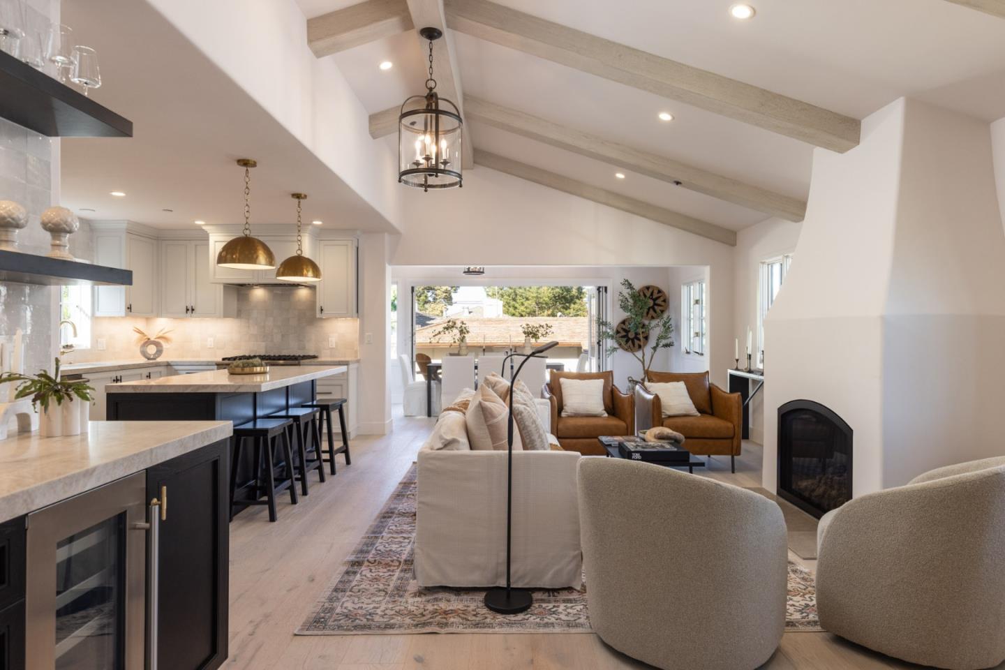 Claudio Ortiz designed Modern-Spanish style new construction home located half block to restaurants & shops in the heart of Carmel-by-the-Sea Village. Highly customized white interior with open flowing floor plan, arched doorways, & blond European Oak hardwood floorings. Kitchen in high end materials with Taj Majal colored Quartz counters, white Moroccan Zellige square-tile backsplash. Touches of custom chosen colorful tiles in multiple areas and on toe kicks all the way up the staircase. Downstairs primary bedroom with bath in custom Spanish tile installation with aqua and blue colored pattern plus large and finished walk-in closet with multiple lighting sources. Upstairs bath in unique aqua blue colored four-piece tile pattern on the floor & up the wall behind tub. "Juliet balcony" over San Carlos with enchanting view into grand, ancient Oak Tree canopy plus West facing peek of Carmel Bay ocean. Wide contemporary, folding glass wall of French-doors opens totally for a hugInterested in this Listing?