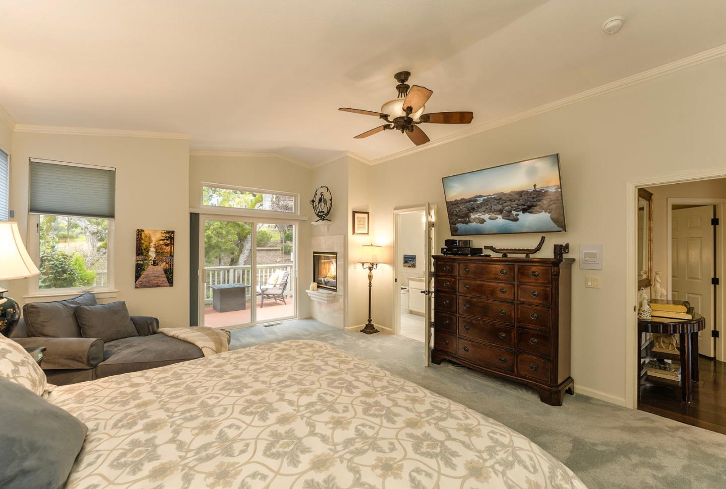 From the moment you enter the cheery front door of this spotless Fairway Lane residence, you can see the care given to this homey residence. Custom cabinets brighten the upgraded kitchen, redone with new efficiency appliances, gas cooktop, and wine cooler in the bar area. Gas fireplace in the living room and an updated integrated music and intercom system throughout the house. Large master has beautifully upgraded features, including several new opening Marvin windows, double headed shower with lower bench seating, and a new soaking tub with a see-through fireplace to enjoy while soaking with your candles and glass of wine. Double sinks, towel warmer, all the perfect mix to enjoy a private oasis in your own home. The back patio off of the master bedroom is expanded for extra plants and seating while you enjoy the serenity of the open spaces. . 2 car garage with tons of storage under the house for your extra lifes treasures. Hiking trails to be enjoyed from either end of FairInterested in this Listing?