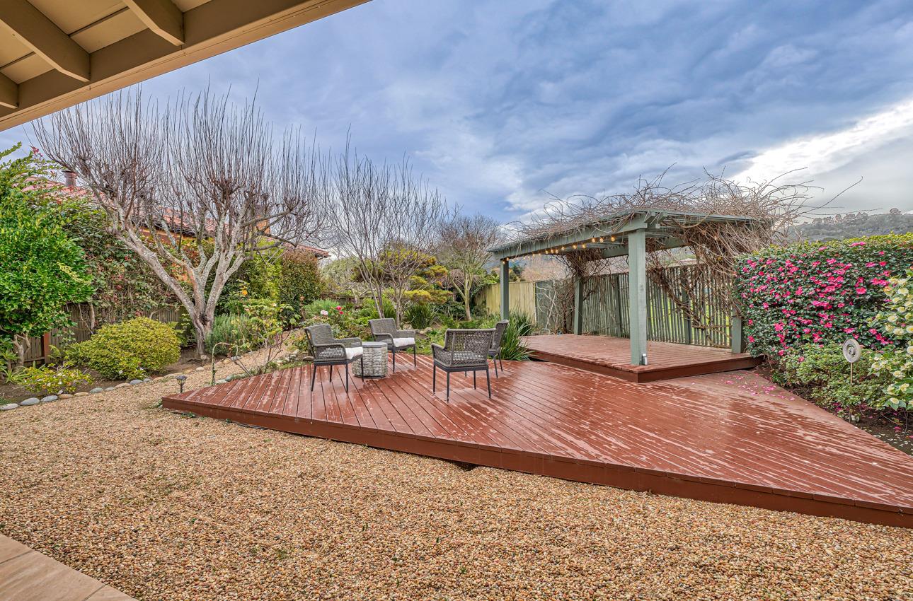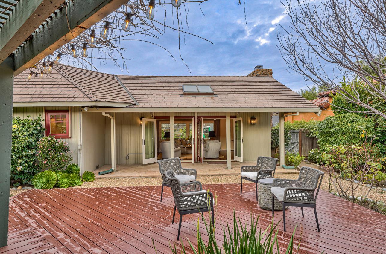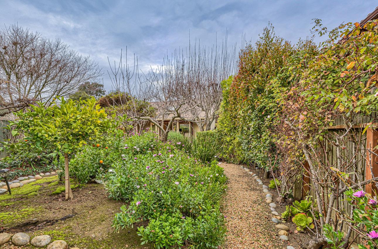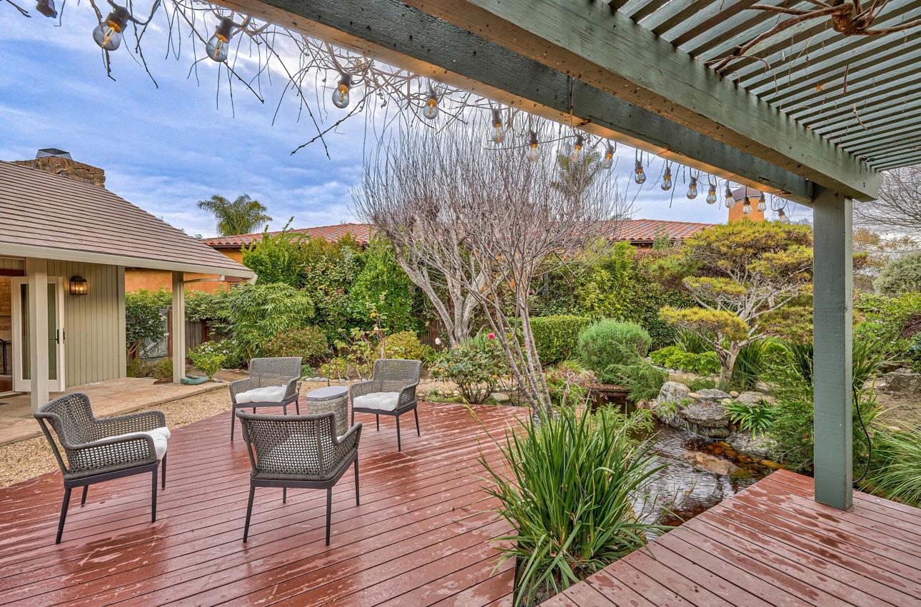 Fall in love with this enchanting home, ideally situated just steps away from Quail Lodge Golf Course. Boasting a south-facing orientation, the residence offers breathtaking mountain views and is nestled on a private cul-de-sac. This single-level home comprises three bedrooms and two bathrooms, featuring vaulted ceilings and glass doors that invite an abundance of natural light, creating a warm and inviting atmosphere. The chef's kitchen has been thoughtfully updated with Viking appliances and showcases charming white cupboards adorned with lighting. Each bedroom in the home offers a glass door opening to a private patio, providing a seamless connection between indoor and outdoor living. Elegant hardwood floors grace the entirety of the home, adding a touch of sophistication to the interior. Step outside to discover a mature garden that serves as a true oasis. Adorned with fruit trees, roses, and a wisteria-draped gazebo, the outdoor space feels like a private paradise. A pond and wateInterested in this Listing?