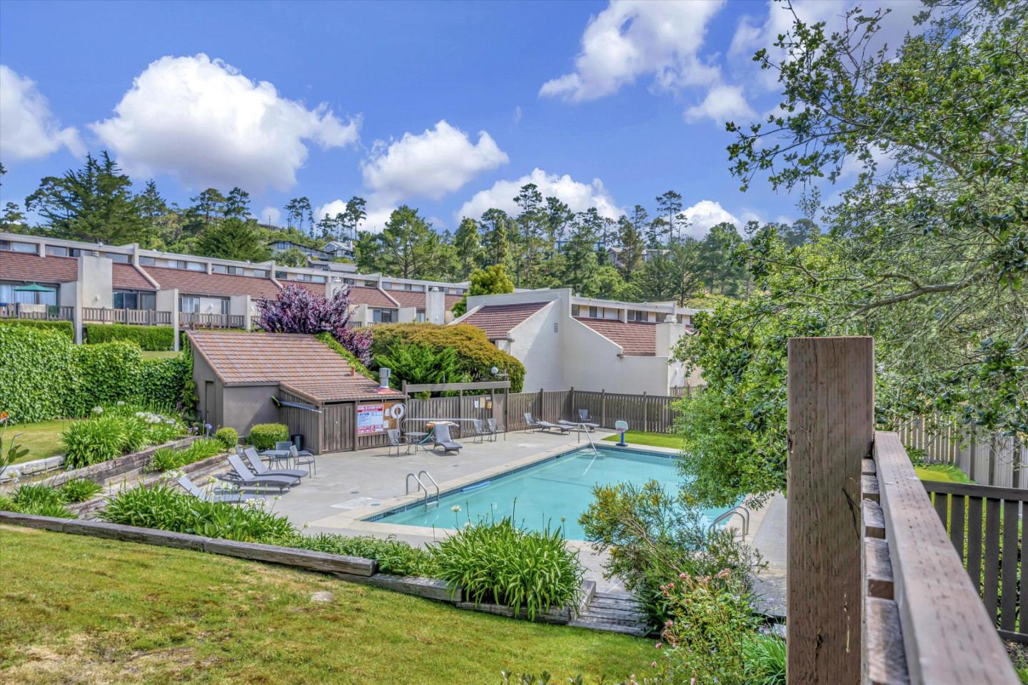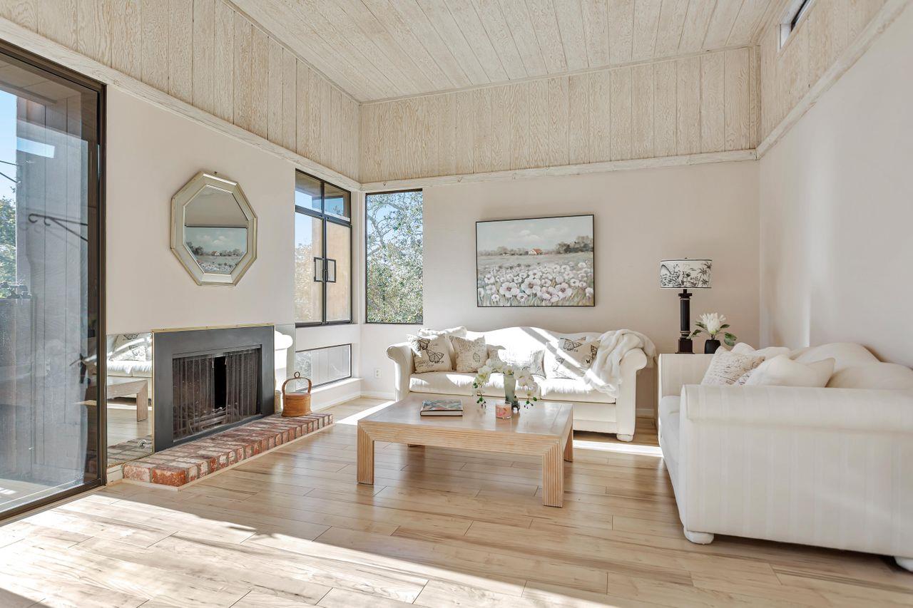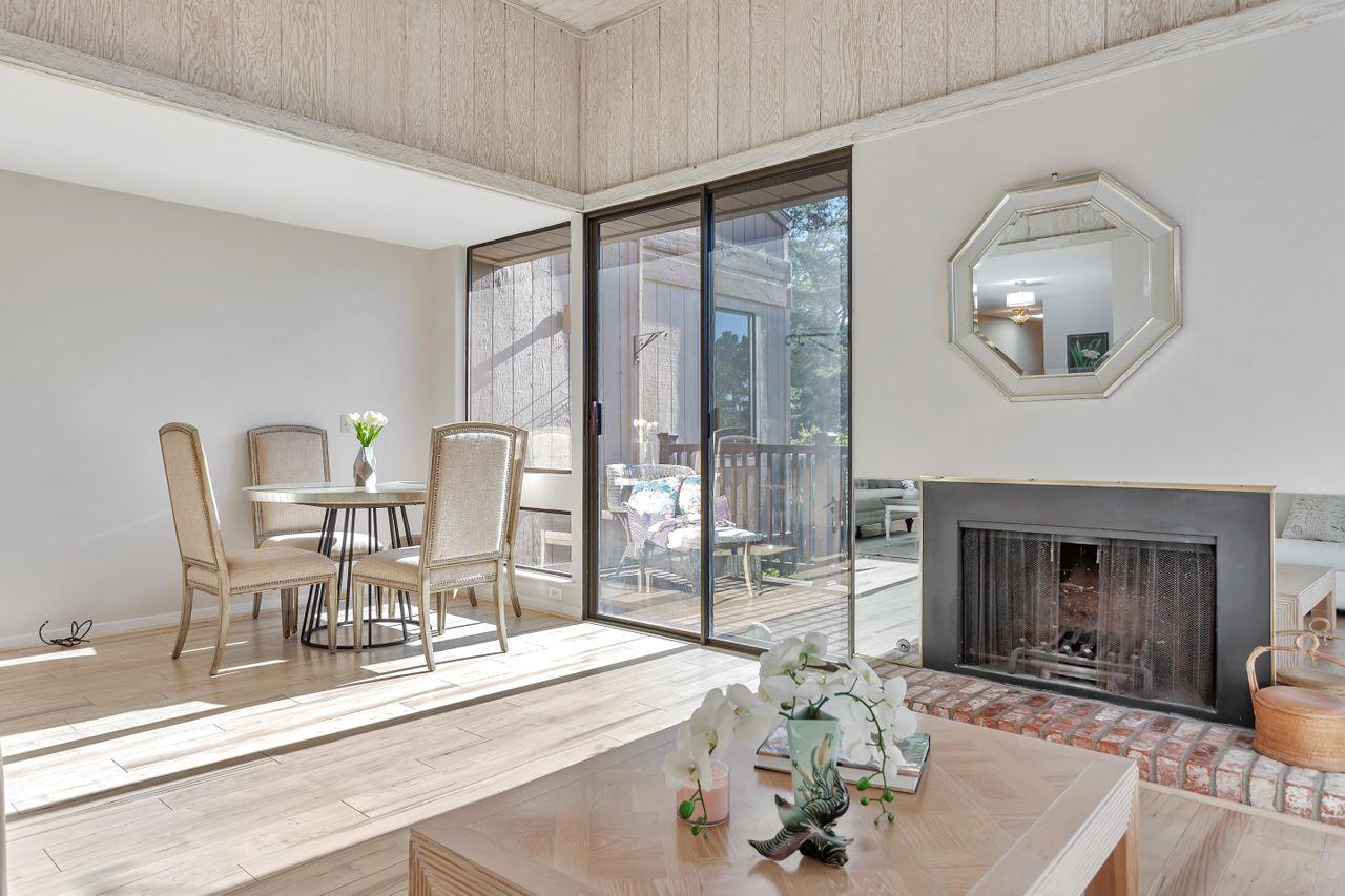 Popular PUD, The Ridge in the High Meadow. Single level unit in a contemporary design. Offering updated kitchen w/garden window, newer appliances, counter top small appliances (blender, food processor, & mixer). Two full baths also recently remodeled. Two roomy sized bedrooms, the primary has a walk in closet, attached bath, plus additional closet, and newer wool carpeting (installed 2-23). Hall coat closet, pantry, & laundry room off the main hall way. This end unit has extra windows w/more natural ight, skylights (recently cleaned), deck overlooking the green belt forested area and distant mountains. High ceilings gives this home a sense of the contemporary and space. The wood burning fireplace welcomes on those cozy Carmel nights. An in unit laundry room hosts a 2 year new stackable full size washer and dryer. Enjoy the pool or tennis/pickle ball court privileges, the HOA has an agreement with the neighboring complex to use their facilities. Recent structural improvemInterested in this Listing?