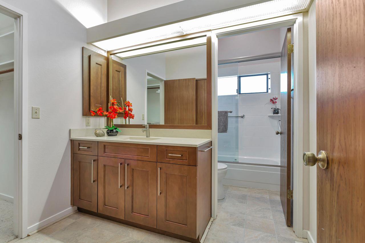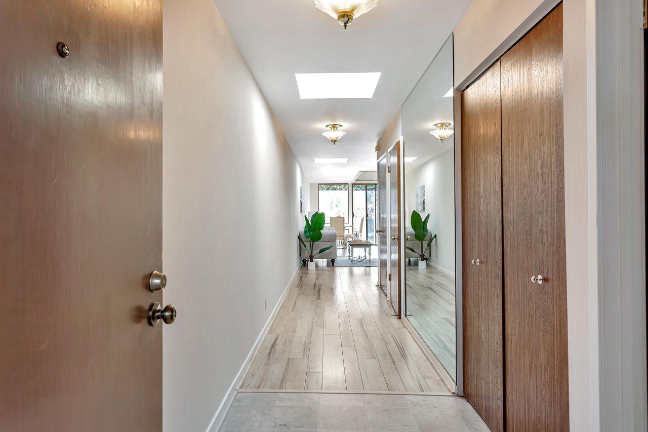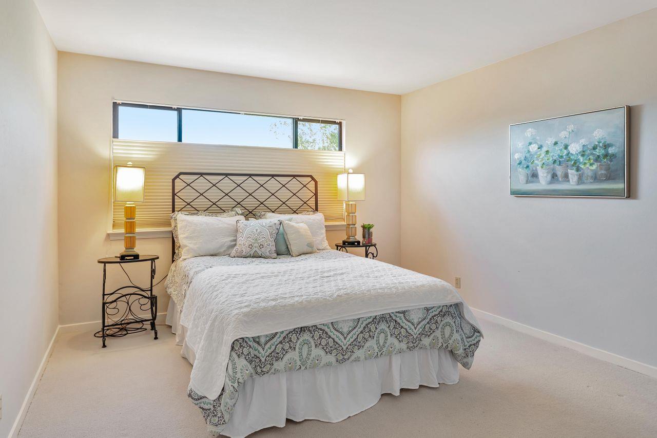 Popular PUD, The Ridge in the High Meadow. Single level unit in a contemporary design. Offering updated kitchen w/garden window, newer appliances, counter top small appliances (blender, food processor, & mixer). Two full baths also recently remodeled. Two roomy sized bedrooms, the primary has a walk in closet, attached bath, plus additional closet, and newer wool carpeting (installed 2-23). Hall coat closet, pantry, & laundry room off the main hall way. This end unit has extra windows w/more natural ight, skylights (recently cleaned), deck overlooking the green belt forested area and distant mountains. High ceilings gives this home a sense of the contemporary and space. The wood burning fireplace welcomes on those cozy Carmel nights. An in unit laundry room hosts a 2 year new stackable full size washer and dryer. Enjoy the pool or tennis/pickle ball court privileges, the HOA has an agreement with the neighboring complex to use their facilities. Recent structural improvemInterested in this Listing?