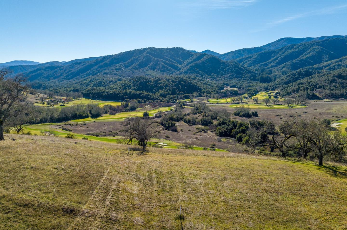 Peacefully situated overlooking the top-rated Tom Fazio designed Preserve Golf Club, lies arguably the best golf course homesite on the market at over 15 acres with a large 2.37-acre building envelope. With stunning panoramic views to the south, layers of ridges filled with redwoods and oaks, Chamisal Pass to the north beautifully framing the Golf Clubhouse, yielding great year-round natural light, this site allows for a single-level main house, guest house and ADU. This homesite is just a short walk to the Preserve Golf Clubhouse and minutes to the Ranch Club activities, where your privacy in nature is protected and amenities are at your fingertips. Security, water, roads, sewer, electrical conduits, cell coverage, fast internet, and fire management infrastructure are all in place ready for you to build your dream home in the Carmel sun.