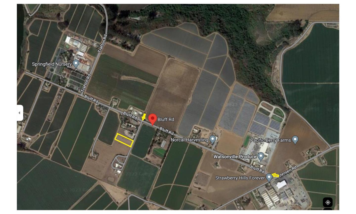 | Directions: | From CA-156 W/US-101 S, Exist 342 to San Juan Rd, Left on Tarpey Rd, Left on Werner Rd, Merge onto Salinas Rd Left onto Hilltop Rd, Right on Jensen Rd, Right on Bluff Rd |
