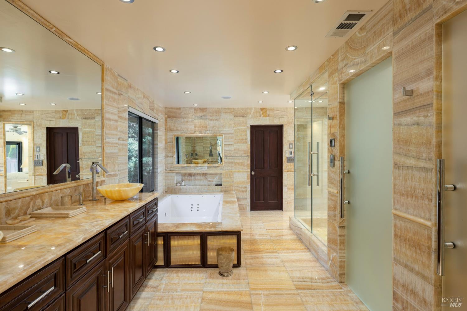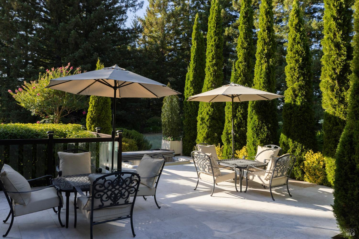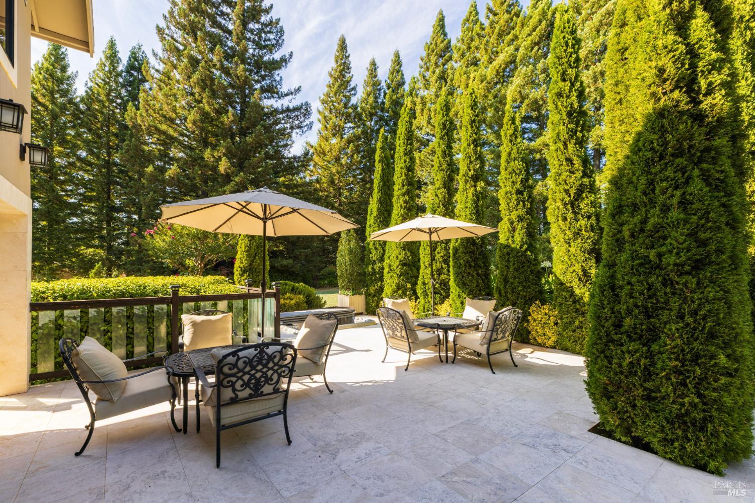 Sitting on prestigious Howell Mountain, 330 Brookside Drive reveals itself as a private Eden. The 6.25-acre estate unfolds in layers: formal gardens scented with herbs and seasonal floral choices, gravel paths that meander past the landscaped grounds into a 2.5-acre Cabernet Sauvignon vineyard that looks across to the historic Ladera vineyard; acquired by the Getty family in 2016 as part of Cade Winery's 13th Vineyard.'' Inside, the main residence expresses intimate luxury. Four ensuite bedrooms balance light-filled living spaces, and baths clad in imported marble and onyx offer chromotherapy tubs and steam showers. A sauna and gym loft provide sanctuary; a Sonos system sends music through more than forty speakers. Guest suites gaze toward the vines and gardens. From the primary suite, French doors open onto a broad terrace where the panorama of Wine Country is perfectly framed. Life spills outdoors in every season. A cypress-lined pool/spa areas invite languid afternoons; fire-warmed patios encourage elegant soirees; and a custom River of Fire'' installation adds a dramatic frame to the frontal landscape. Two separate guest cottages with two bedrooms and two baths each, tuck discreetly into the grounds, creating a multi-home compound without sacrificing privacy.Interested in this Listing?