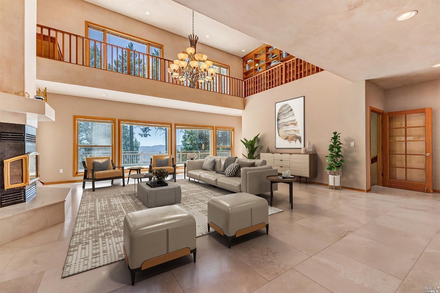 Howell Mountain AVA with 40 acres. Panoramic, unobstructed 180 degree views of St. Helena, Vineyards and Valley floor! Modern Chateau style 6 bedroom residence plus two guest/inlaw suites (on 4th level). Two-story high ceilings in Living room, with woodstove/fireplace opening up to large deck. Gourmet kitchen (with walk-in pantry), dining room and family room on main level. Four-car garage with Workshop room, and potential Wine Cellar. Totally private at the end of Cold Springs Road!Interested in this Listing?