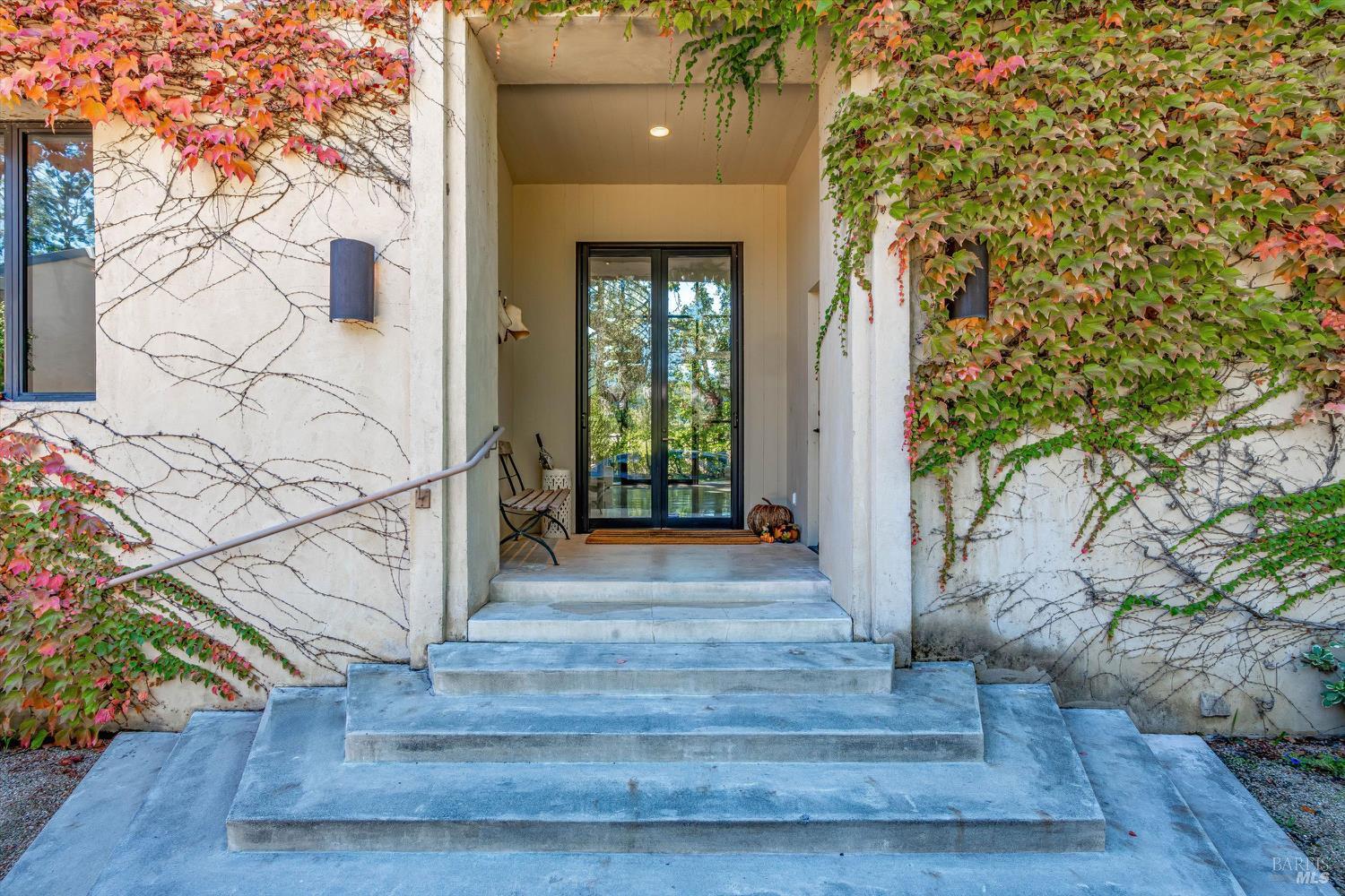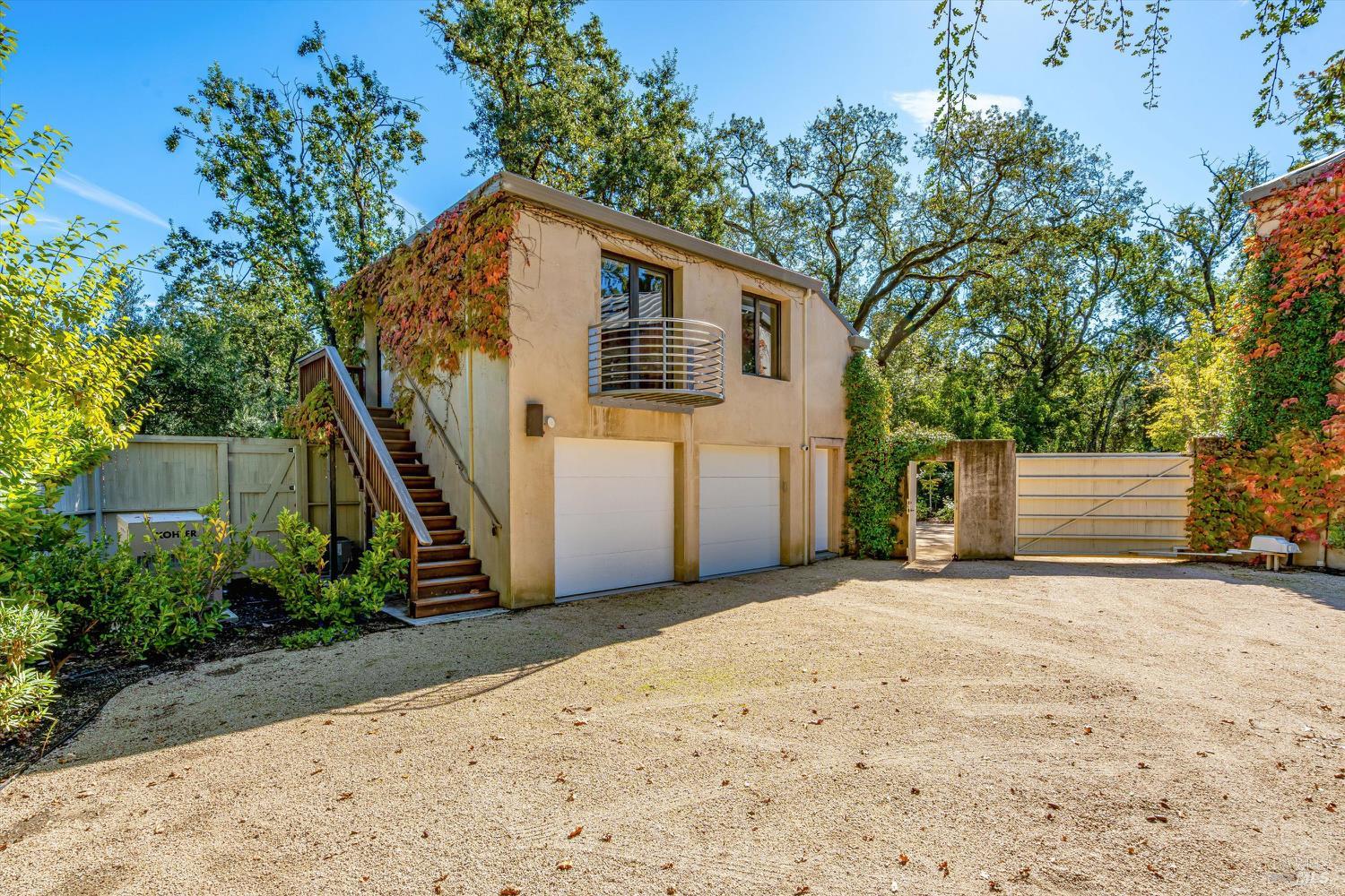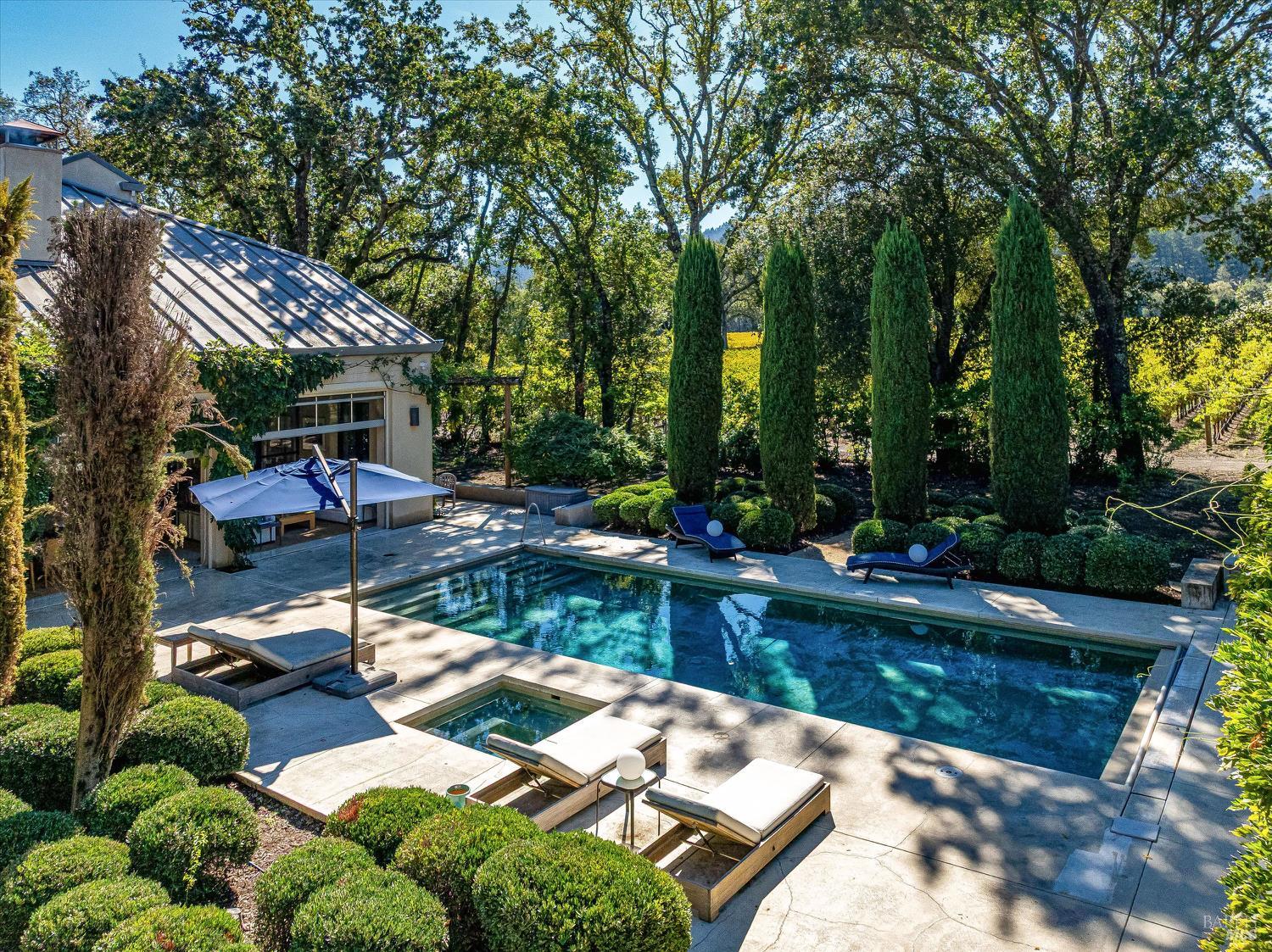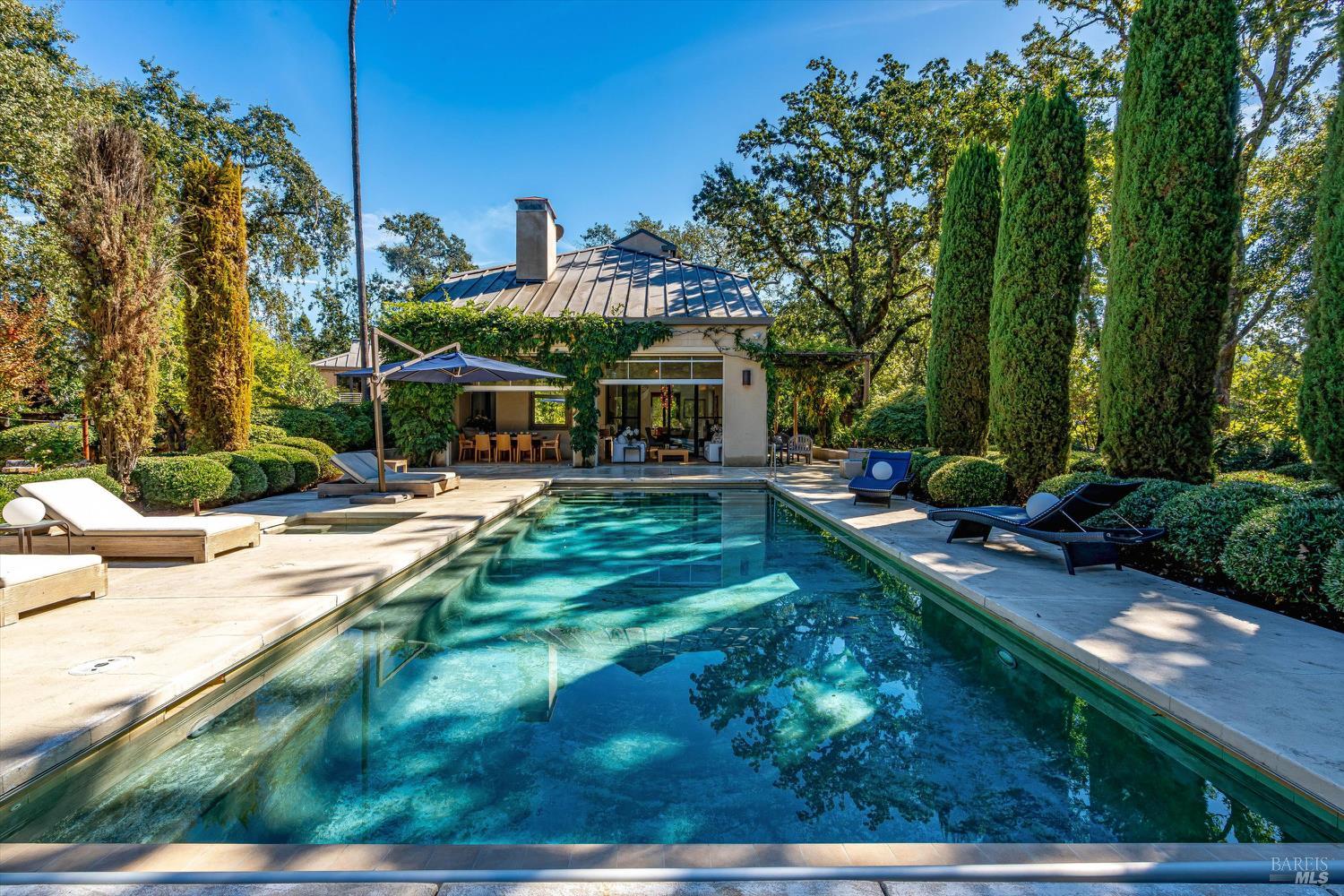 Designed by celebrated architect Sandy Walker, this timeless country compound captures the essence of modern Napa Valley living. Set amid mature oaks, cypress, and vineyard views, the property blends serene privacy with refined design. The main residence features luminous concrete floors, dramatic floor-to-ceiling windows, and a seamless flow between indoor and outdoor spaces. A sunroom with roll-up glass doors invites year-round enjoyment, while two elegant bedroom suites with marble baths, a den, and a third-floor loft offer comfort and flexibility. A separate guest house with living room and ensuite bedroom overlooks the gardens and pool. Outdoor living shines with sun-drenched terraces, a heated pool and spa, tennis court, and a romantic entertaining grove with bar, BBQ, and wood-fired pizza oven. Ideally located between St. Helena and Calistoga, this distinctive retreat pairs architectural pedigree with the relaxed sophistication of Napa Valley life.Interested in this Listing?