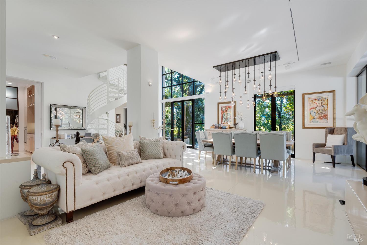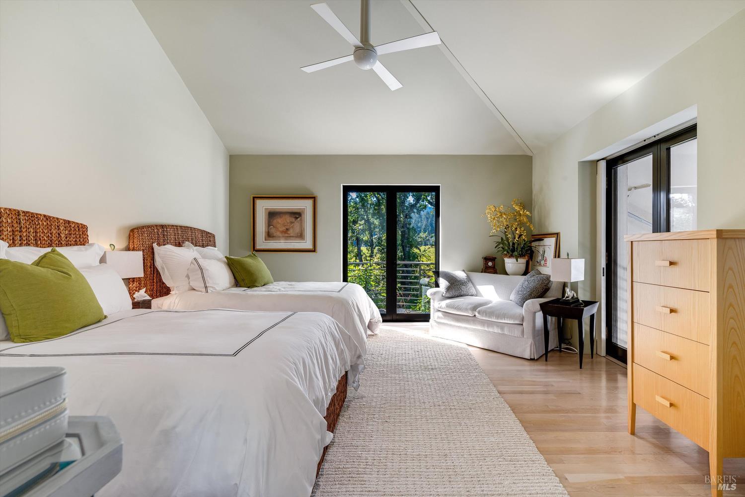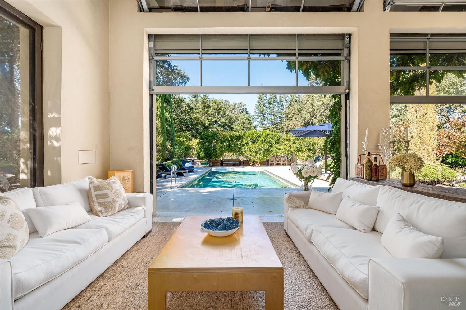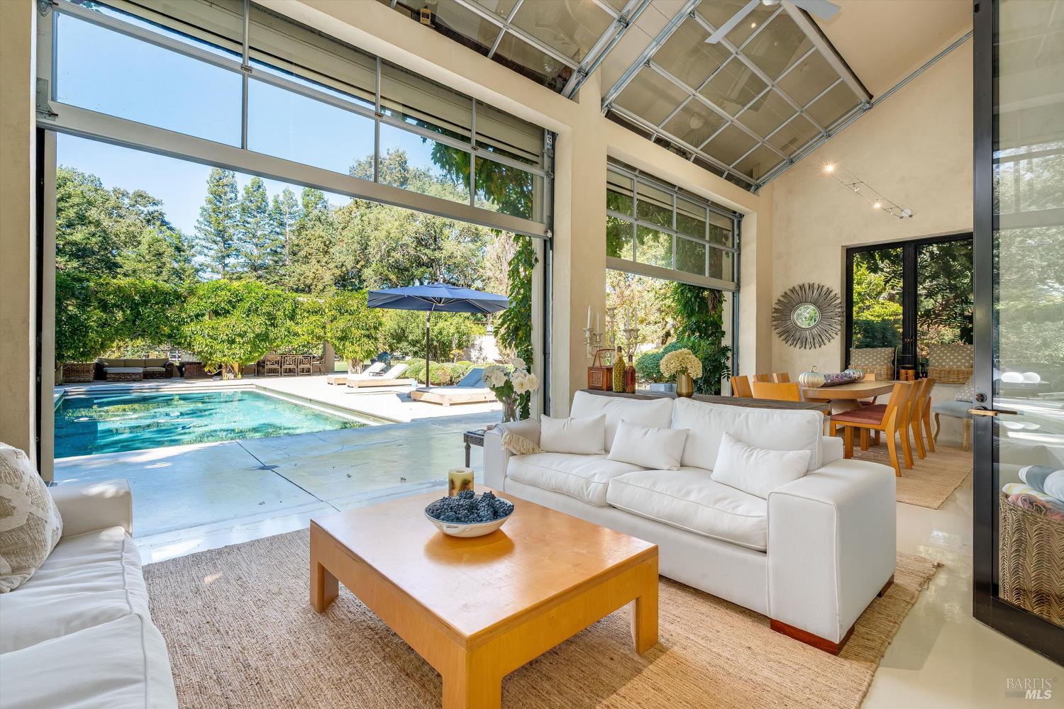 Designed by celebrated architect Sandy Walker, this timeless country compound captures the essence of modern Napa Valley living. Set amid mature oaks, cypress, and vineyard views, the property blends serene privacy with refined design. The main residence features luminous concrete floors, dramatic floor-to-ceiling windows, and a seamless flow between indoor and outdoor spaces. A sunroom with roll-up glass doors invites year-round enjoyment, while two elegant bedroom suites with marble baths, a den, and a third-floor loft offer comfort and flexibility. A separate guest house with living room and ensuite bedroom overlooks the gardens and pool. Outdoor living shines with sun-drenched terraces, a heated pool and spa, tennis court, and a romantic entertaining grove with bar, BBQ, and wood-fired pizza oven. Ideally located between St. Helena and Calistoga, this distinctive retreat pairs architectural pedigree with the relaxed sophistication of Napa Valley life.Interested in this Listing?