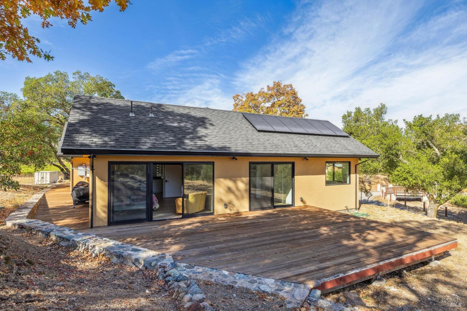 Coveted Bennett Lane location - This newly built home situated on over 4 acres with several acres that relatively level, ideal for a hobby vineyard or horses. Property was the home for Maxine Freitas's Equi-Ed for many years. The house features a charming front porch that overlooks the neighboring vineyards, spacious living room with vaulted ceilings and views of Mt. St. Helena and a neighboring lake. 2 bedrooms and a den with views of the Palisades. House was just finished and finaled Spring 2024. Building permit for the detached 720 sq. ft. garage was recently issued. 43 panel Solar system is owned and conveys with the property. 2-5000 gallon cement water storage tanks. The only thing left to do is complete the landscaping. The pictures of the barn are historical as the barn doesn't exist anymore.Interested in this Listing?