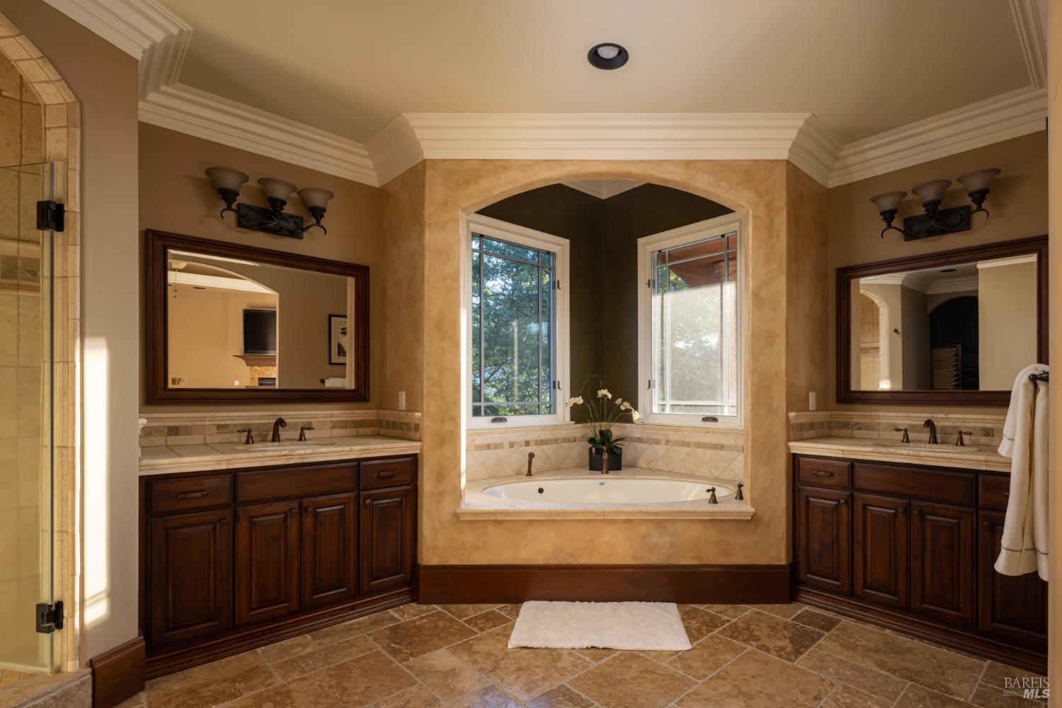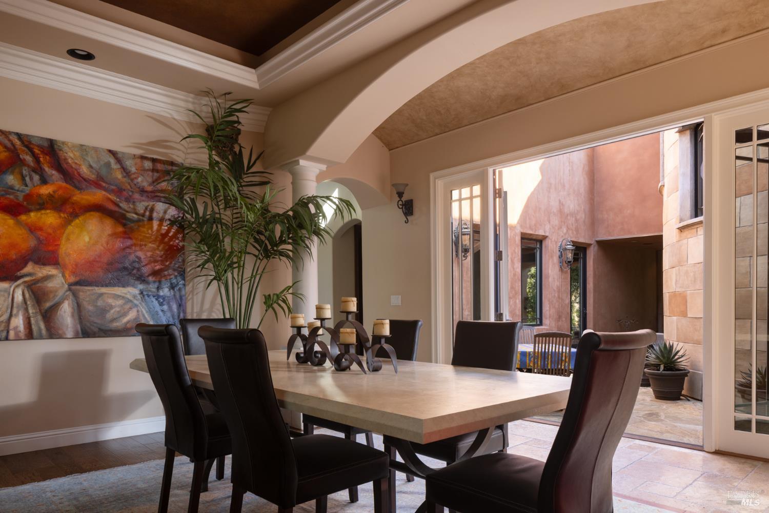 Nestled just above the valley floor with sweeping views across Napa Valley, 1312 Summit offers privacy without sacrificing proximity, just minutes from Calistoga and St. Helena. Spanning approximately 6225+/- sq.ft. of total conditioned living space, this 5-bedroom, 5.5-bath compound was built in 2010 and accommodates full-time living, entertaining, and extended stays. The current owner has enhanced the property with thoughtful upgrades and improvements, both inside and out. This Tuscan-inspired estate is designed to open to its surroundings. Retractable glass doors extend the main living space to a covered loggia overlooking an infinity-edge pool and spa, set against panoramic valley views. Both the main residence and guest house offer generous covered outdoor living areas for year-round use. The gourmet kitchen features Brazilian quartz countertops, Miele appliances, and a butler's pantry, flowing into the living and dining areas anchored by a gas fireplace. A covered courtyard with a wood-burning fireplace creates an intimate gathering space, equally inviting on warm evenings and cozy on cooler evenings and rainy days. The home includes two primary suites--one on the main level and one above--each positioned to capture the views, with spa-like baths and walk-in closets. The lower level features a private theater, wine cellar, and speakeasy-style lounge. A detached guest house with full kitchen, gas fireplace, one bedroom and one-and-a-half baths, provides privacy for visitors, while a motor court and 4-car garage allows for ample parking. Offering a rare balance of privacy, scale, and proximity, this is a Napa Valley property that lives effortlesslyequally suited for everyday living, weekend escapes, and exceptional entertaining.Interested in this Listing?