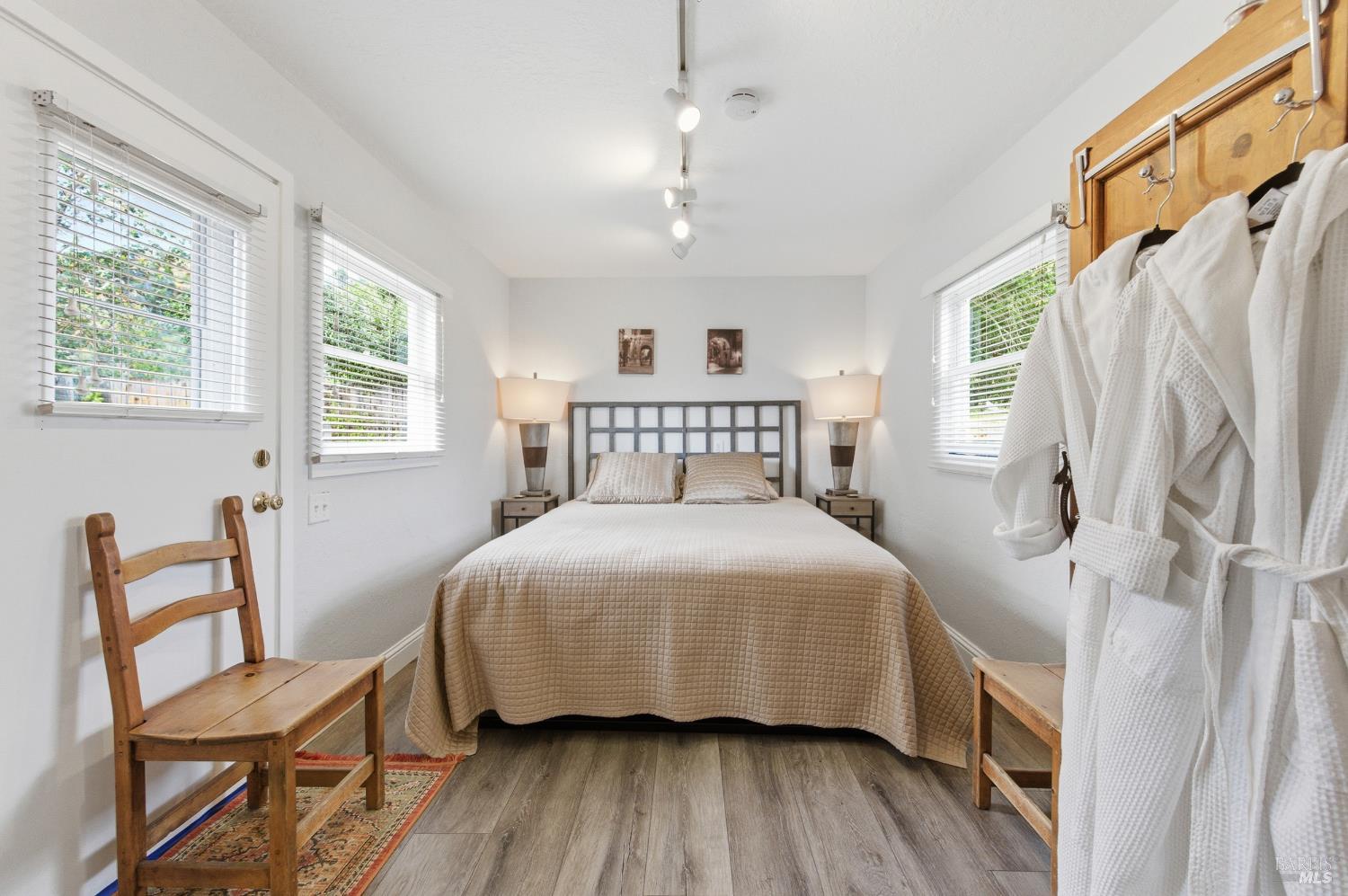 Perched atop a private knoll just off the world-renowned Silverado Trail, this serene Calistoga retreat offers sweeping vineyard views, elegant outdoor living, and flexible indoor spaces across two thoughtfully positioned structures. Set on 1.18 acres with a long private driveway, the property offers both seclusion and an elevated vantage point, with unobstructed views of Castello Di Amorosa and surrounding vineyards. At the top of the drive sits the main housea bright and airy 2-bedroom, 1.5-bathroom home with panoramic vineyard vistas from nearly every room. The approach is inviting, with beautifully laid flagstone, curated sitting areas, and a backdrop of mature trees and manicured landscaping. Inside, the home features durable vinyl flooring and a fresh, light-filled interior palette. The updated kitchen includes crisp white cabinetry and sleek quartz countertops, seamlessly opening to a casual dining area and a comfortable living room. French doors frame the vineyard below, offering a picture-perfect view with every sunrise and sunset. Just outside, a freestanding soaking tub and outdoor shower are nestled into the landscape, creating a spa-like retreat surrounded by nature. At the base of the property sits the barn, a spacious structure with Spanish tile flooring, rustic character, and tremendous potential. Upon entry, you are welcomed into a central gathering area with vineyard views through a large sliding screen door, creating a seamless indoor-outdoor connection. One wing of the barn features multiple adjoining rooms, a dining area, and a wine cellar tucked just beyond a rustic stone arch, ideal for intimate gatherings. A window-lined hallway fills the space with natural light and showcases uninterrupted views of the surrounding vineyards. The opposite wing offers additional flexible-use rooms and a bar area, providing a versatile layout that can be well-suited for entertaining or creative use. Just outside, a generous deck blends into the surrounding landscape, perfect for hosting, enjoying quiet mornings, or relaxing with a glass of wine at sunset. Located minutes from downtown Calistoga's acclaimed restaurants, luxury resorts, and world-class wineries, 4405 Silverado Trail offers a rare opportunity to own a scenic and flexible Napa Valley property.Interested in this Listing?