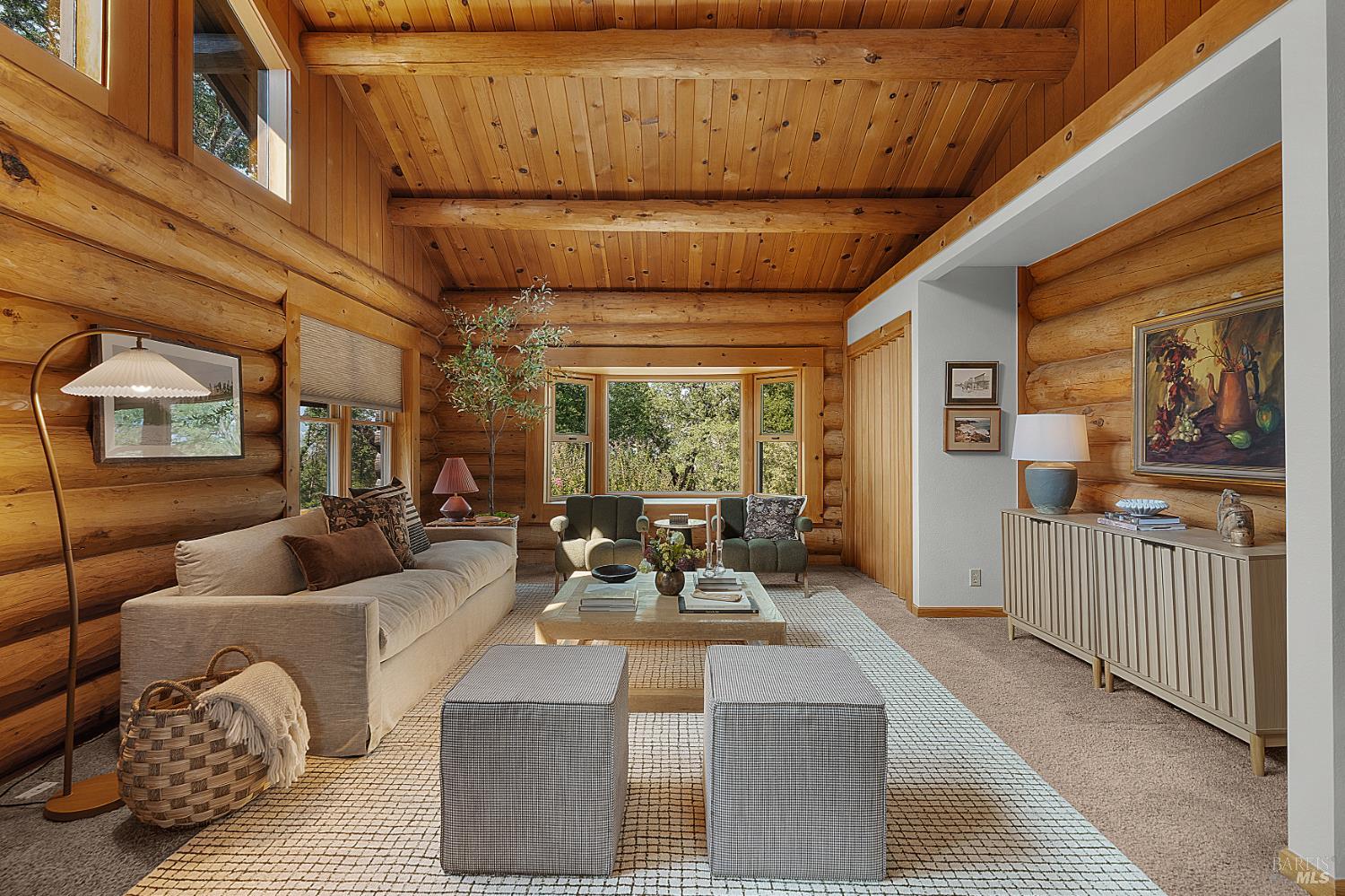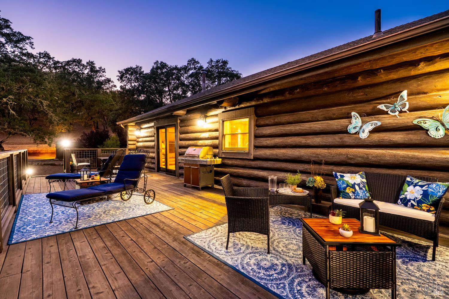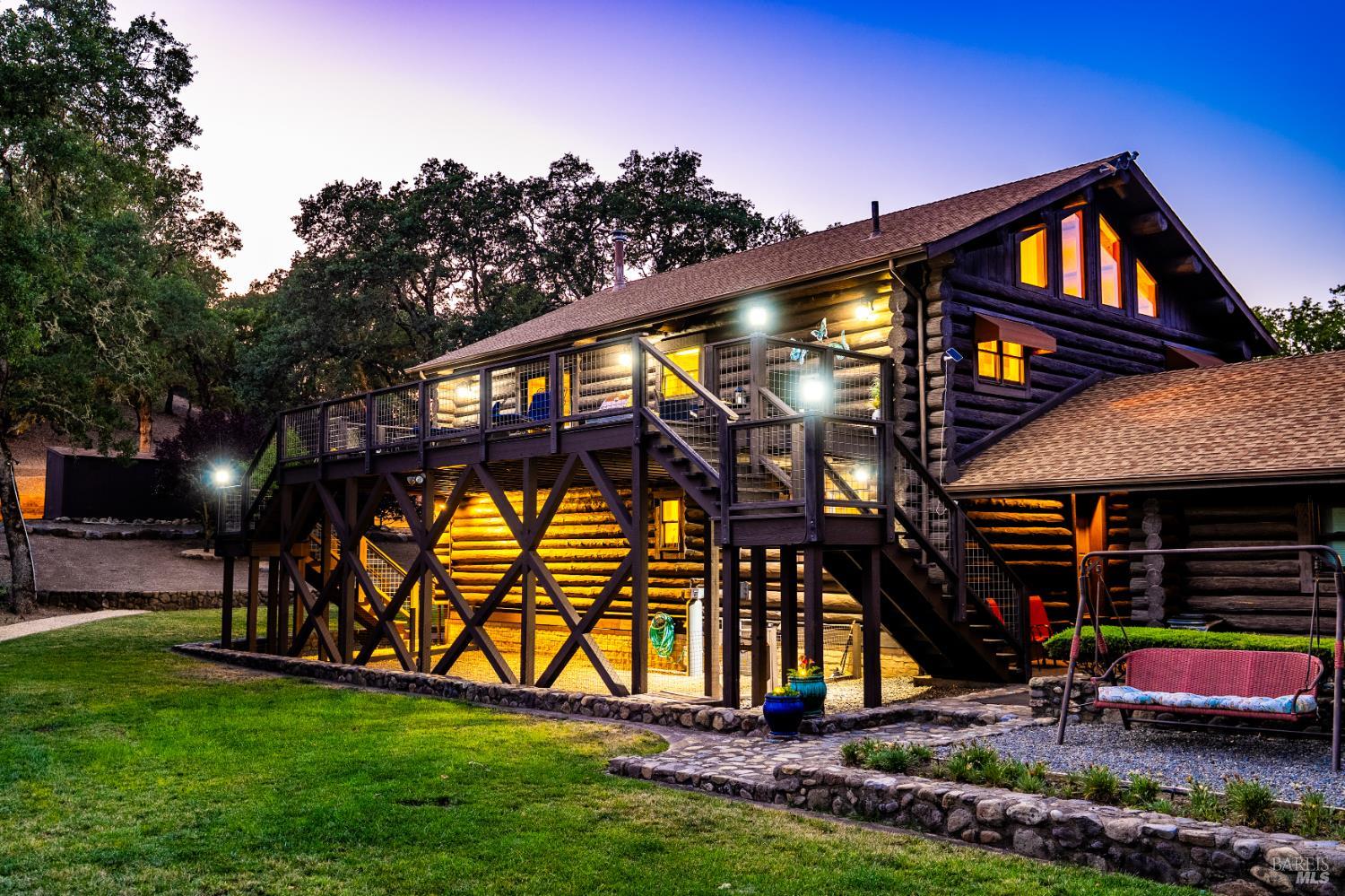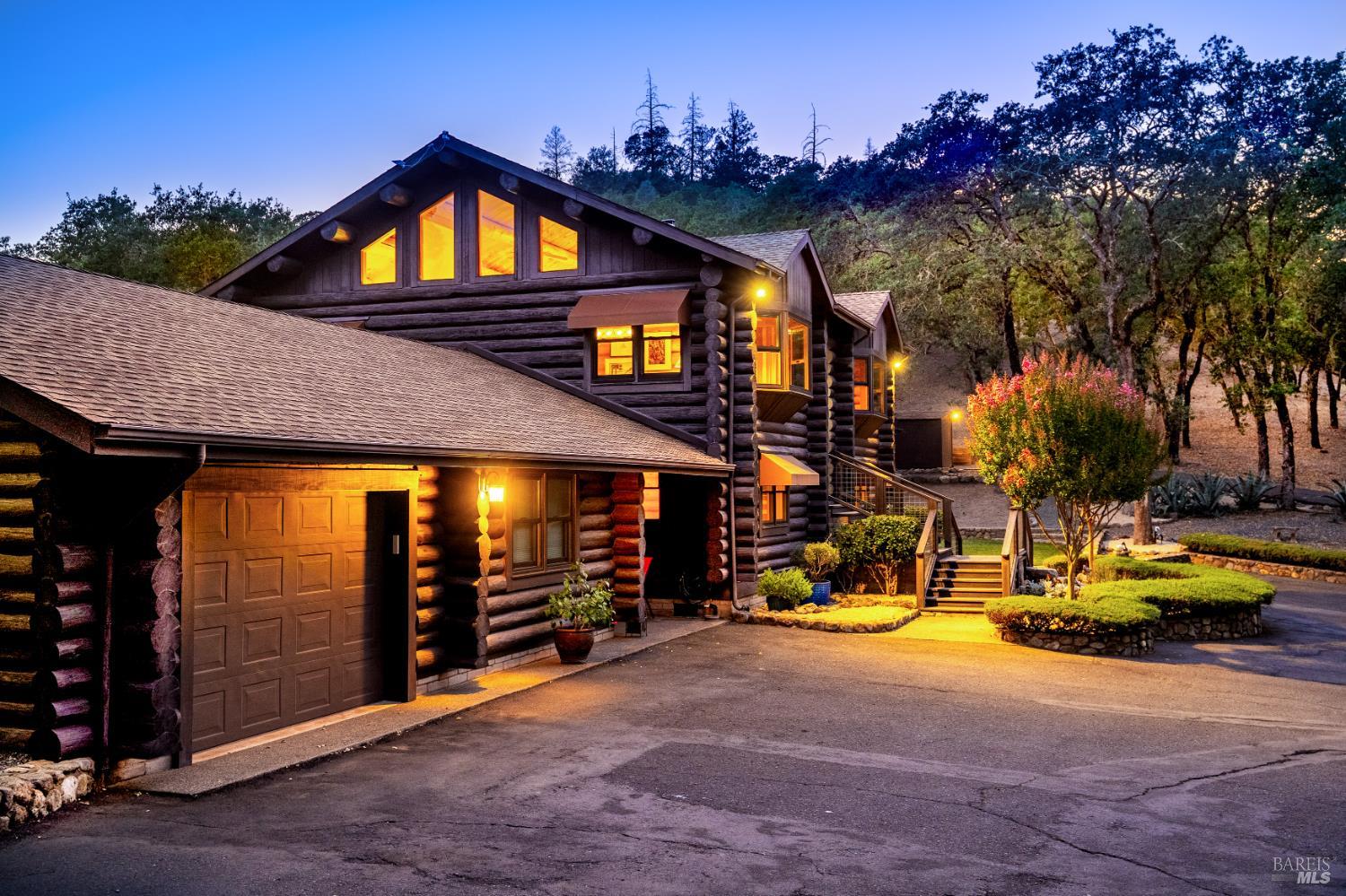 Welcome to your private Wine Country retreat, perfectly situated between Sonoma and Napa Counties and just minutes from downtown Calistoga. Tucked behind a gated entry on 5.9 peaceful acres, this custom log-framed home offers nearly 2,700 sq ft of rustic charm and modern comforts. The 3-bed, 2-bath layout features vaulted ceilings, exposed beams, and natural light throughout. Downstairs, enjoy heated flooring for year-round comfort, while upstairs offers a cozy soapstone wood stove for crisp evenings. Step out onto the spacious deck and take in serene views of heritage oaks, manzanita, and fir trees. A whole-property Generac backup generator ensures seamless living no matter the season. The detached garage is connected by a breezeway and offers additional storage. A separate studio with a full bath provides flexible space for guests, work, or creative pursuits. With room for a pool, vineyard, or garden, this peaceful Calistoga haven blends nature, privacy, and endless potential.Interested in this Listing?