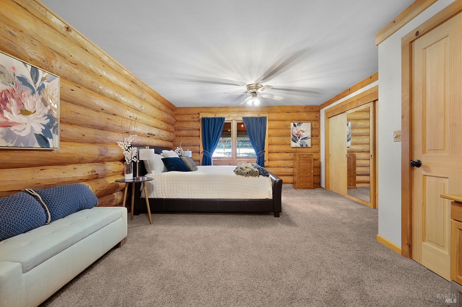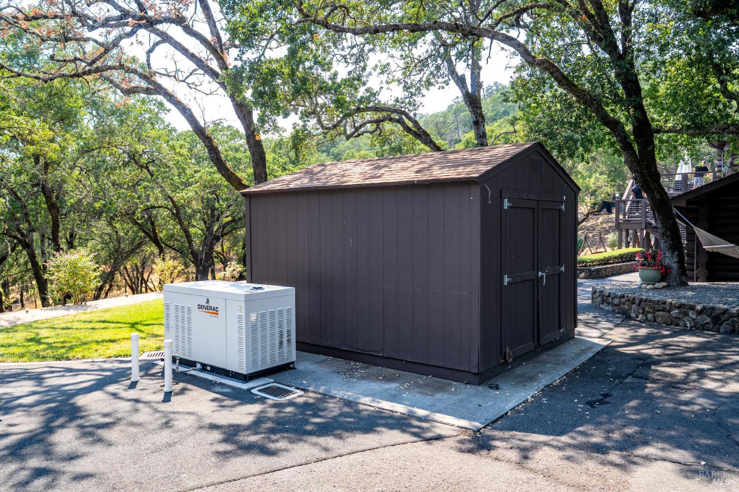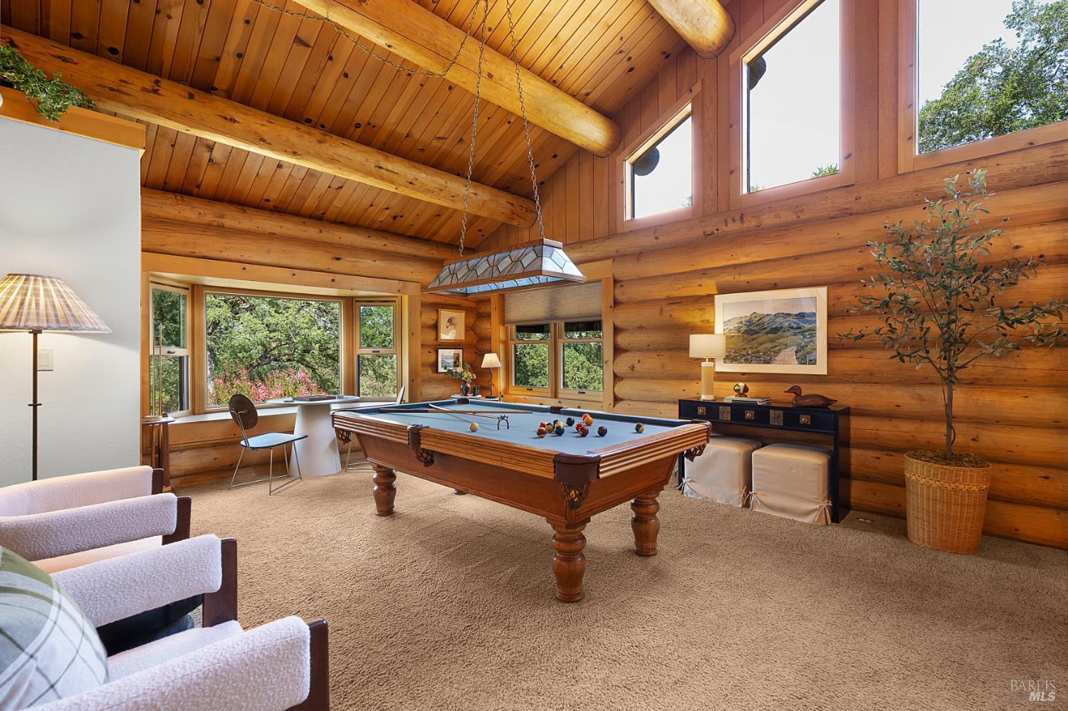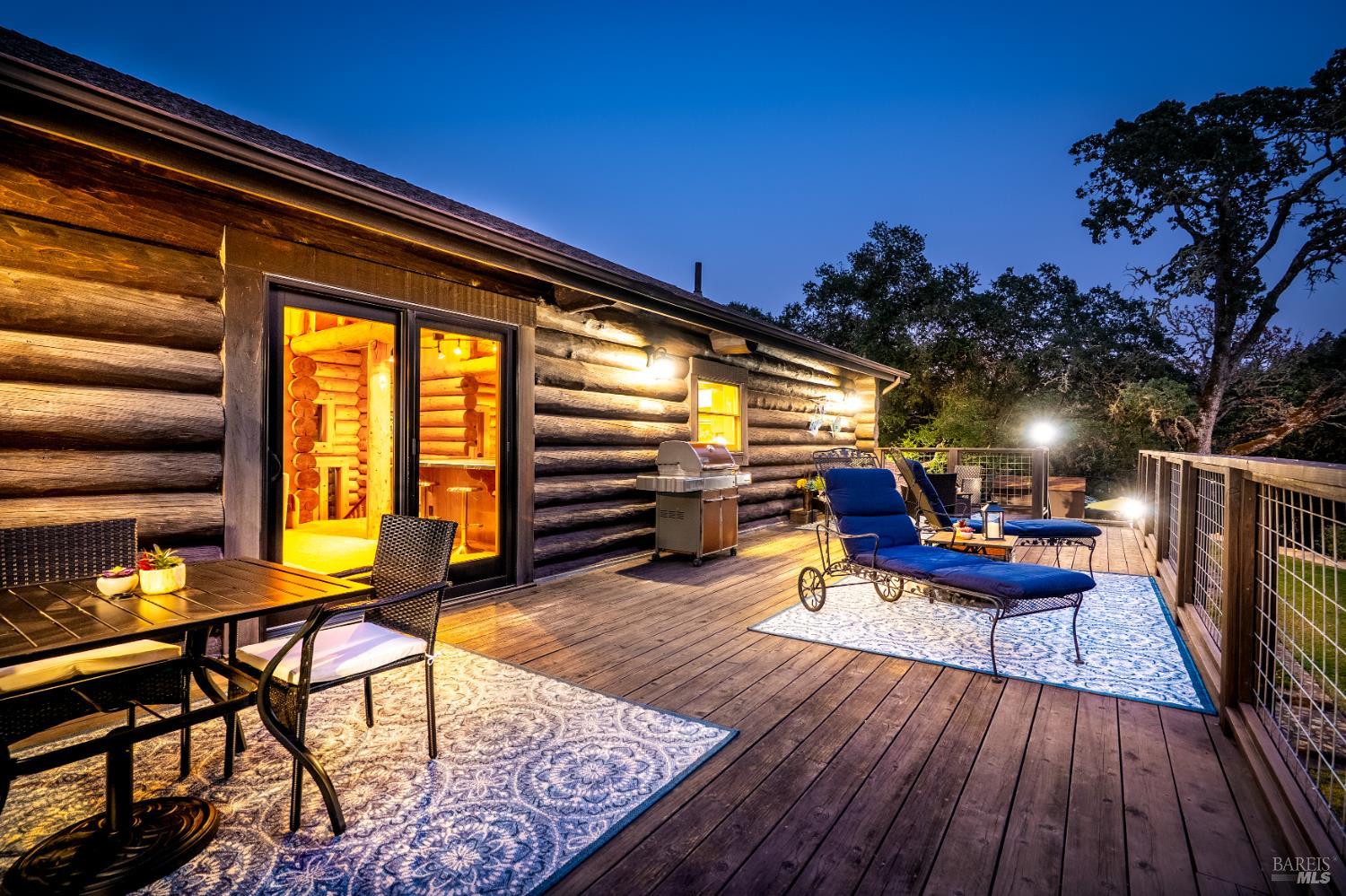 Welcome to your private Wine Country retreat, perfectly situated between Sonoma and Napa Counties and just minutes from downtown Calistoga. Tucked behind a gated entry on 5.9 peaceful acres, this custom log-framed home offers nearly 2,700 sq ft of rustic charm and modern comforts. The 3-bed, 2-bath layout features vaulted ceilings, exposed beams, and natural light throughout. Downstairs, enjoy heated flooring for year-round comfort, while upstairs offers a cozy soapstone wood stove for crisp evenings. Step out onto the spacious deck and take in serene views of heritage oaks, manzanita, and fir trees. A whole-property Generac backup generator ensures seamless living no matter the season. The detached garage is connected by a breezeway and offers additional storage. A separate studio with a full bath provides flexible space for guests, work, or creative pursuits. With room for a pool, vineyard, or garden, this peaceful Calistoga haven blends nature, privacy, and endless potential.Interested in this Listing?