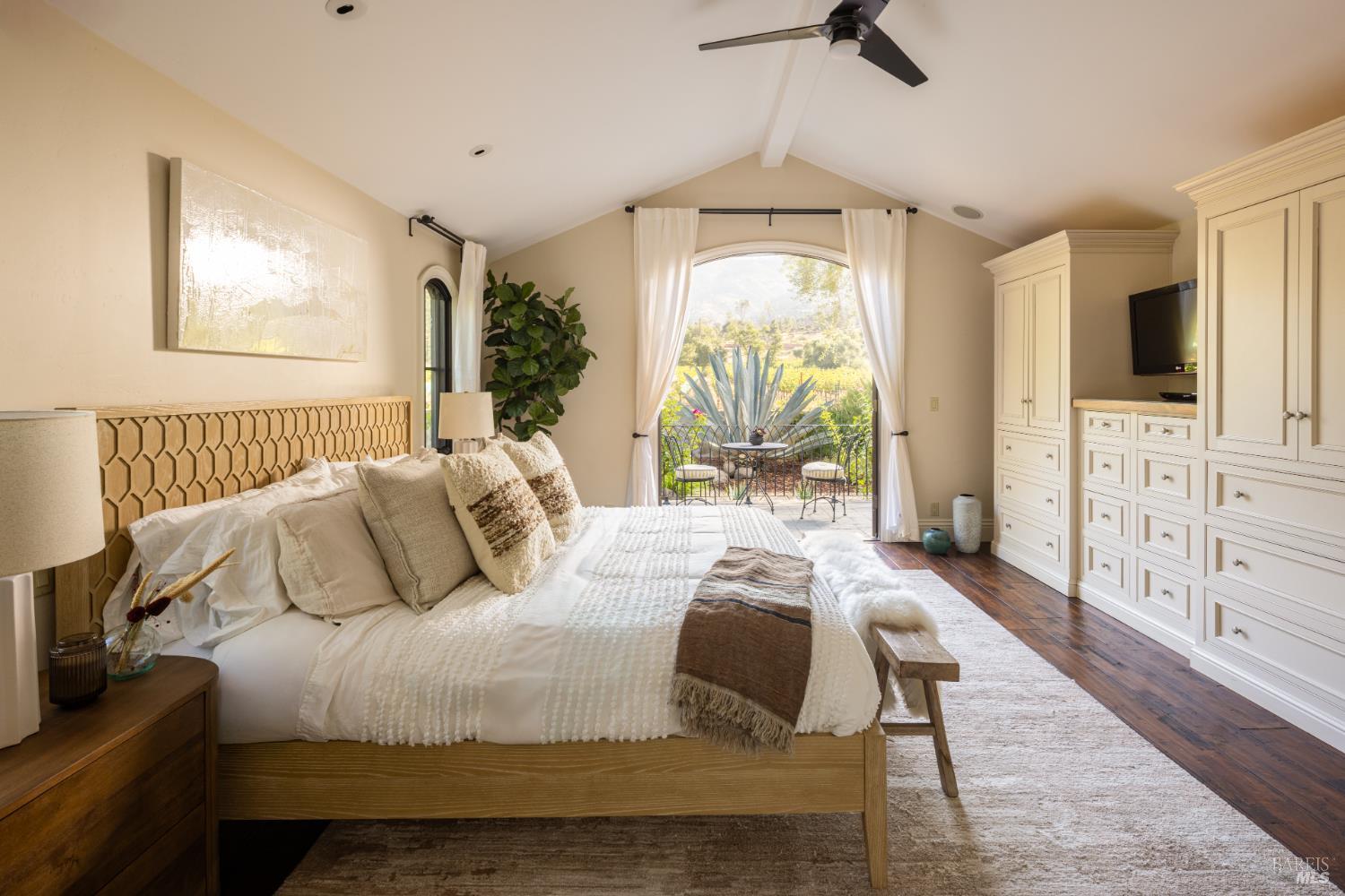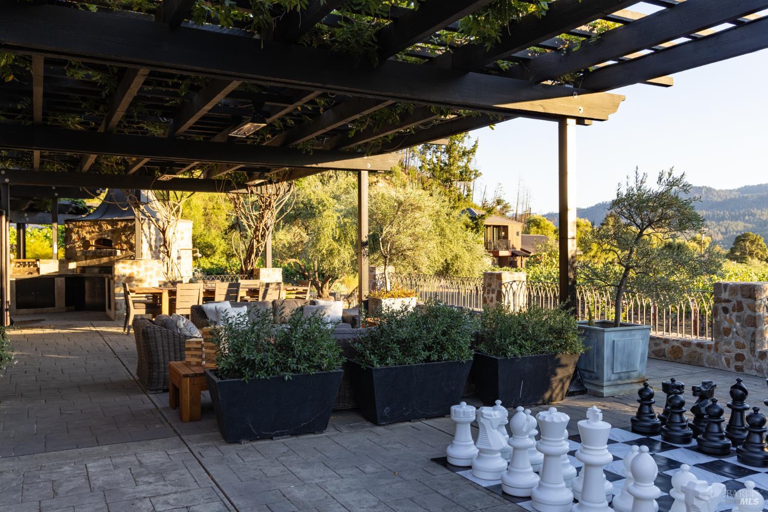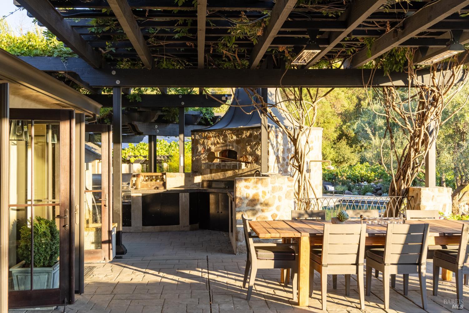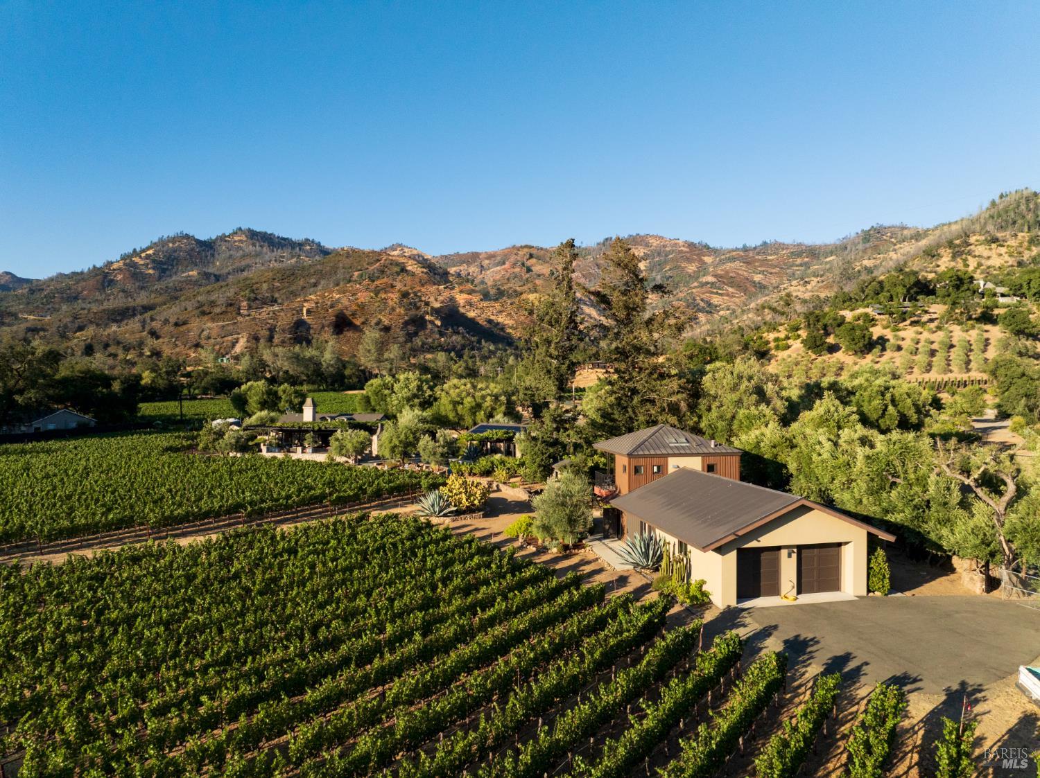 Mid way between Calistoga and St. Helena along the iconic Silverado Trail, La Place is a timeless compound in the heart of Napa Valley wine country. Framed by 120-year-old olive trees and surrounded by neighboring vineyards, the property captures the essence of elegant indoor-outdoor living on just over 2.5+/- acres. Inspired by a Provencal village square, the property exudes a rare sense of place-refined, rooted, and designed for relaxed luxury. The main residence features two en-suite bedrooms and two-and-a-half baths, anchored by a light-filled great room with vaulted ceilings, chef's kitchen, scullery, and bar for entertaining. French doors open to multiple terraces, creating a seamless connection to the land and lifestyle. The grounds showcase Wine Country living with a resort-style pool and spa, multiple dining patios, an outdoor kitchen with wood-fired pizza oven, and a quiet garden patio among ancient olives. Additional structures include a guest room, a detached studio suite with kitchenette and balcony overlooking the famed Three Palms Vineyard, and a multipurpose building for gym or art studio. A Cabernet vineyard and small Rhone block, seasonal garden, and curated gathering spaces complete this enchanting estate/playground.Interested in this Listing?