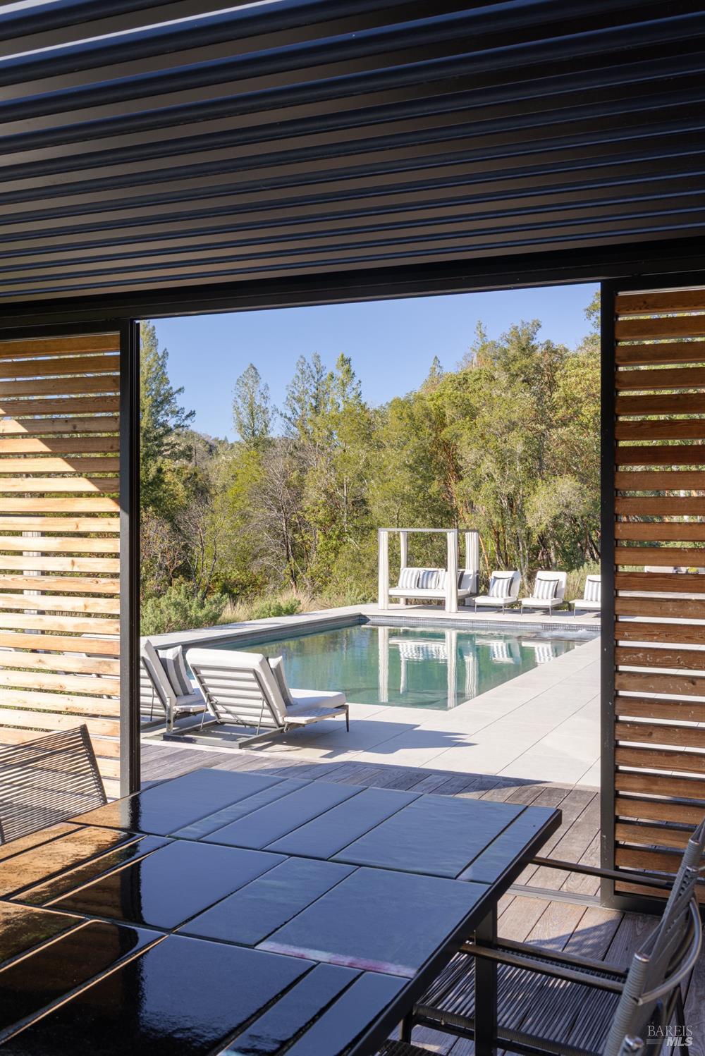 Situated minutes to Calistoga's world-class spas, wineries, and culinary destinations, 8495 Franz Valley School Road is an unparalleled expression of contemporary refinement, privacy, and natural beautya modern sanctuary at the intersection of architecture and landscape. Designed by the renowned Signum Architecture and brought to life by Fairweather and Associates in 2020, this private retreat redefines modern luxury. A gated entrance and short drive unveil a home described as having a strong sense of horizontality and a palette of wood-on-wood, punctuated with metal.'' Durable materials of concrete, stained cedar, aluminum-framed expanses of glass, and Japanese shou sugi ban siding (insect and fire resistant) unify beneath a sleek parapet roof. Walls of glass disappear to dissolve the boundary between indoors and out and lead to an inviting heated pool w/ spa and an outdoor kitchen with expansive views. A private tennis court adds to the resort-style living. The layout is thoughtfully attuned to the Terremoto/Alain Peauroi masterful landscape design complementing the architecture's geometric precision. In keeping with the home's open and transparent ethos, a carport replaces the traditional garage, ensuring the architecture remains unobtrusive and deeply connected to the land.Interested in this Listing?
