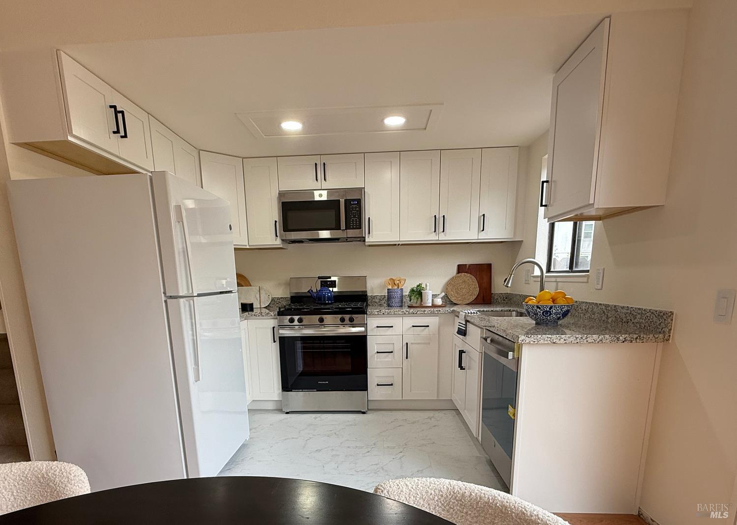 Worth the Wait! Recently refreshed kitchen with new cabinets, granite counters, updated appliances, new flooring and fixtures. Saratoga Manor is conveniently located, a hop, skip and a jump from Calistoga's community pool, soccer field and Fairgrounds. Three bedrooms plus an extra room off the living room can be used as a home office or guest room. Partial Views of the Mayacamas Mountains from the upstairs bedrooms. Three designated parking spaces, including one directly behind the unit, for easy access to bring groceries right into the beautifully updated kitchen.Interested in this Listing?