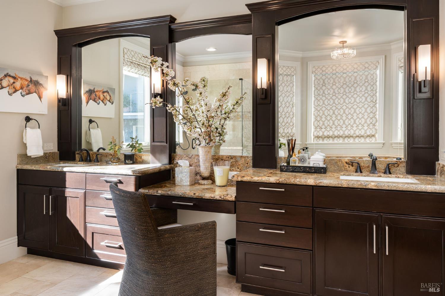 Nestled within a private ridgeline enclave at the gateway to the world-renowned Napa Valley and just minutes from downtown Napa, this exceptional residence offers a rare blend of privacy, luxury, and breathtaking scenery. Designed to capture expansive city and valley views, the approximately 3,680-square-foot home features 3 bedrooms and 3.5 bathrooms, thoughtfully arranged for both refined living and relaxed comfort. Guests are welcomed through an elegant entry hall with a fresh, sophisticated palette that blends timeless design with modern warmth. The entry opens to a gallery-style mezzanine level leading to the expansive primary suite, complete with a stone fireplace and tranquil outlooks. An additional ensuite bedroom, a private office with inspiring views, and interior access to the garage complete this level. Straight ahead, the dramatic vaulted living room forms the heart of the home. Filled with natural light from expansive windows, the space seamlessly integrates living and dining areas ideally for entertaining or quiet evenings overlooking the valley. Beyond the main living space, a dedicated wine room celebrates the home's location in one of the world's most celebrated wine regions. The sun-filled kitchen features marble countertops, an expansive island, intimate dining, and a relaxed lounge area. Glass doors open to a generous main-level stone deck, creating effortless indoor-outdoor living and a perfect vantage point for Napa Valley's changing light and scenic beauty. Set behind gated access on approximately 1/2 acre, the property offers exceptional privacy and includes a two-car attached garage and lower-level storage. Convenient proximity to Highway 29 allows easy Bay Area access and effortless exploration of the renowned wineries, restaurants, and scenic drives of both Napa Valley and Sonoma Valley. Whether as a full-time residence or an elegant weekend retreat, 10 Canterbury Drive embodies the relaxed sophistication and timeless beauty of Napa Valley living.Interested in this Listing?