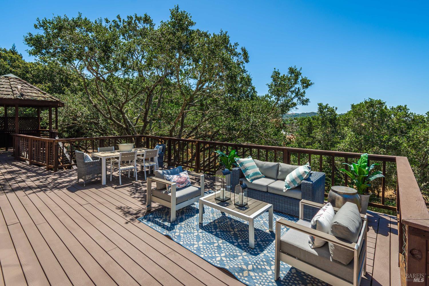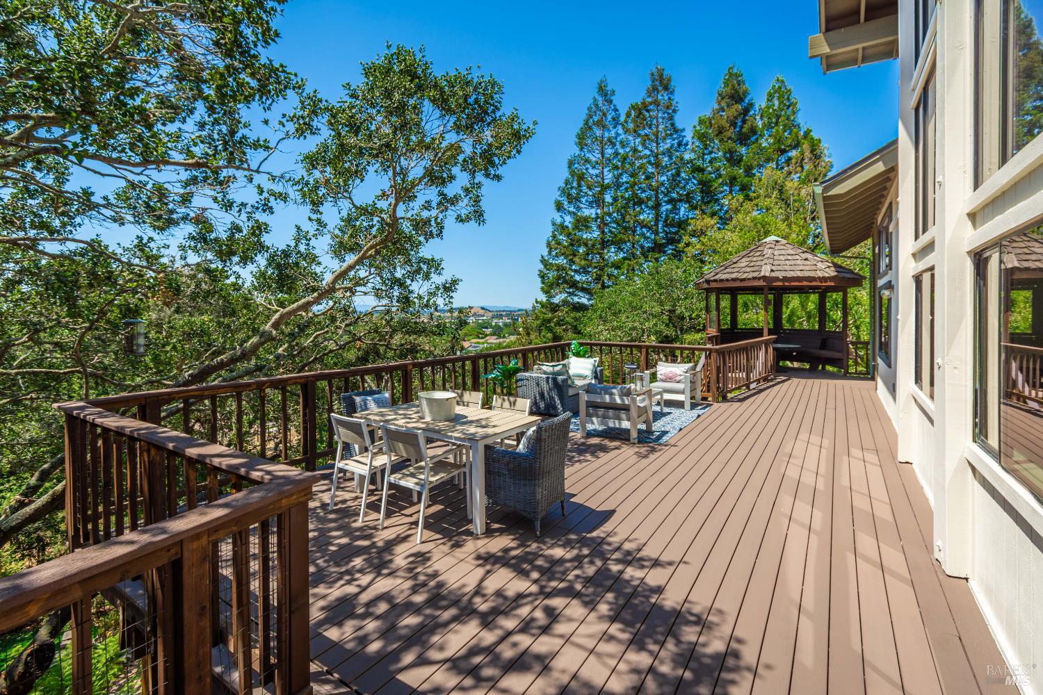 Architecturally significant and custom-built, this 4BD/3.5BA Napa retreat blends design, privacy, and sustainability on a .43-acre south-facing parcel with sweeping views of Napa Valley, Mt. Tamalpais, and San Pablo Bay. Flooded with natural light, the home features renovated oak floors, smooth coat walls, fresh paint, and designer details throughout. The chef's kitchen offers stone counters, custom cabinets, gas range, stainless appliances, and windows that overlook lush grounds. The main-level primary suite includes a spa-style bath, soaking tub, walk-in shower, and deck access. Upstairs: 2 bedrooms + reading loft. Enjoy mature landscaping, private outdoor zones, a freeform pool with waterfalls, and a separate guest unit. Smart features include owned solar, Tesla charger & battery, and oversized 2-car garage with fireplace + guest parking. Tucked in nature's arms, just minutes to Downtown Napa. Experience this indoor-outdoor havenInterested in this Listing?