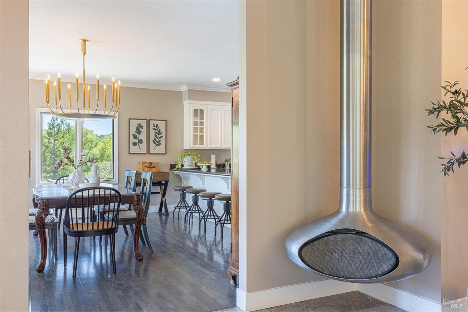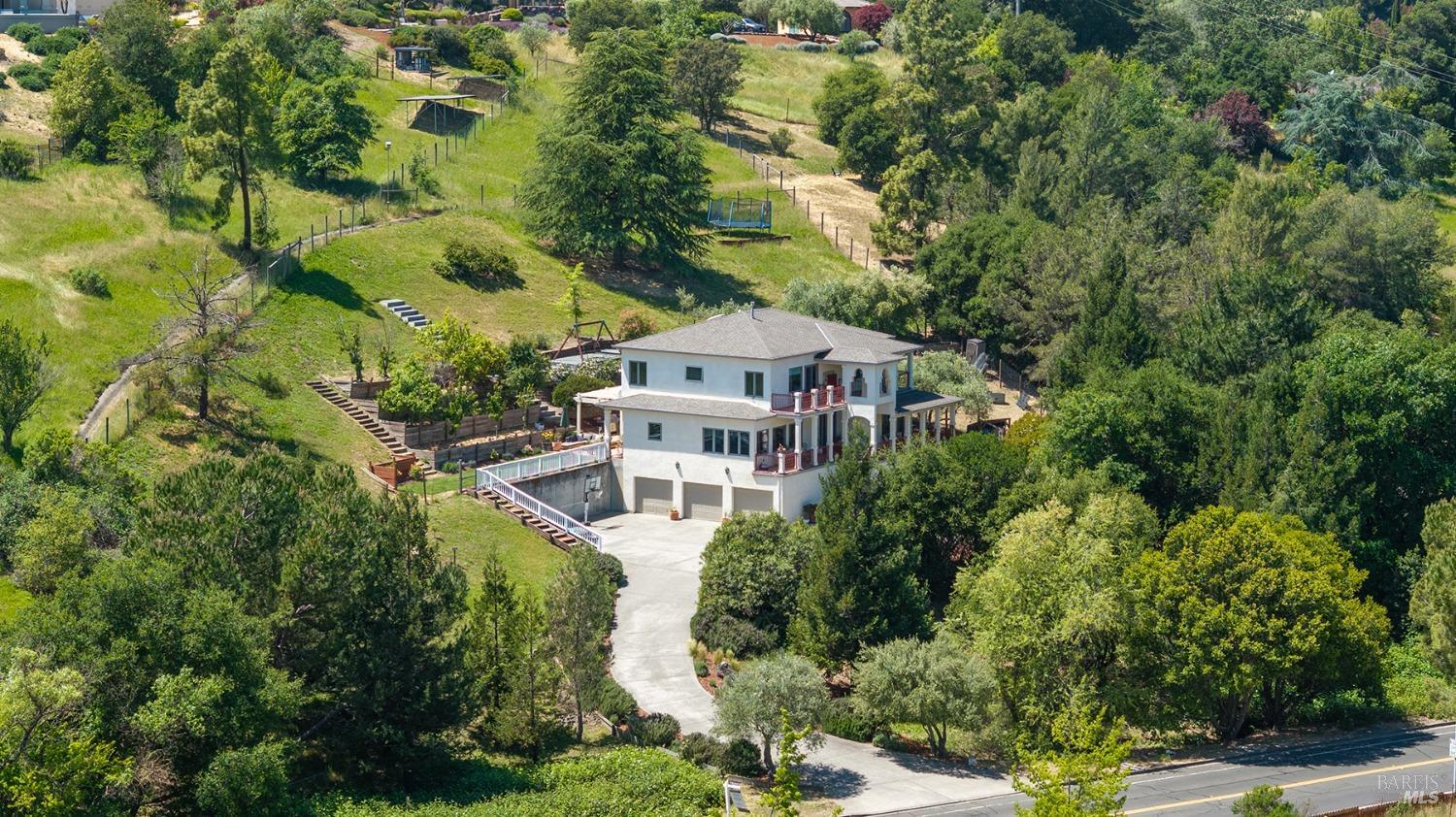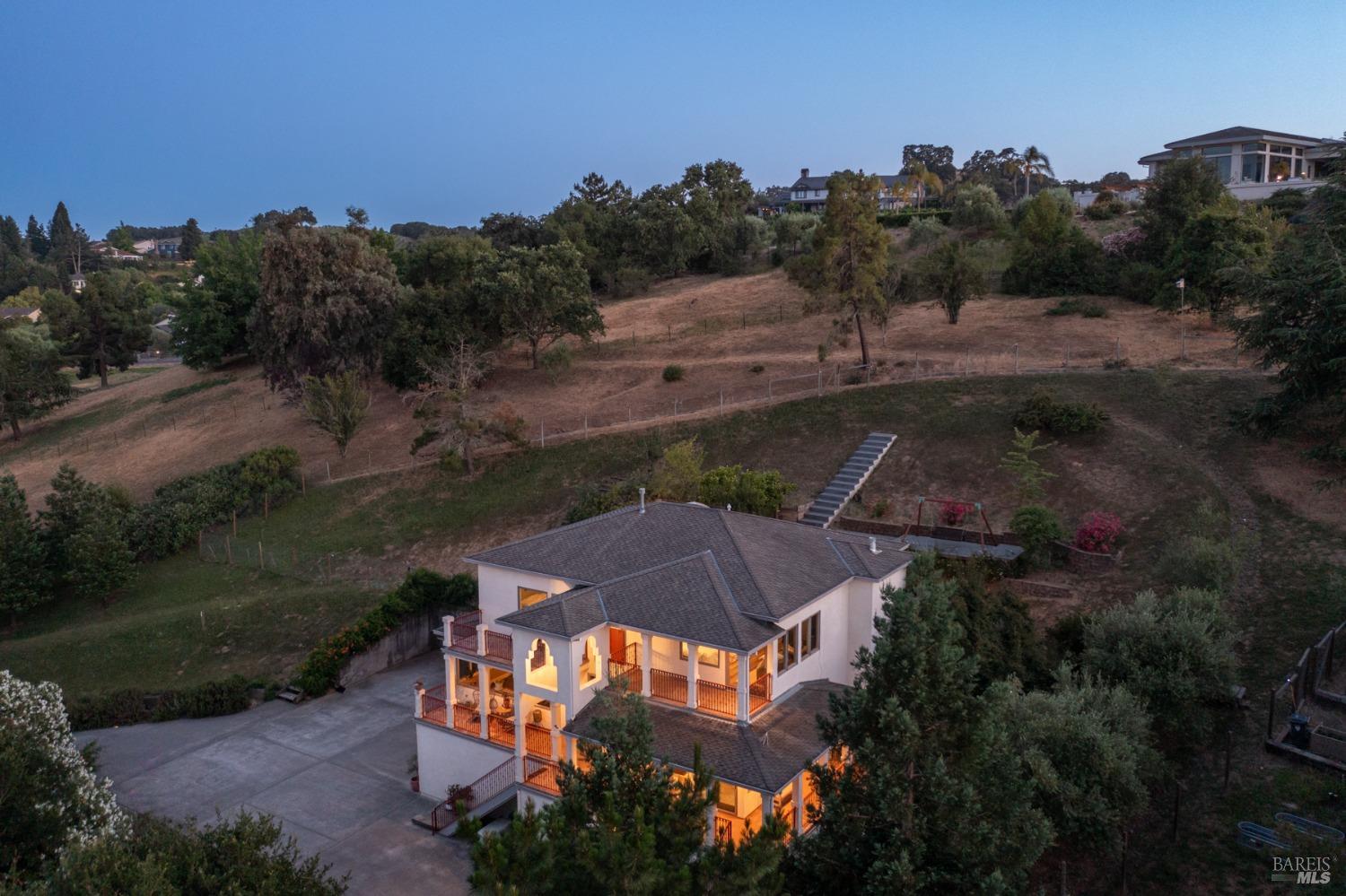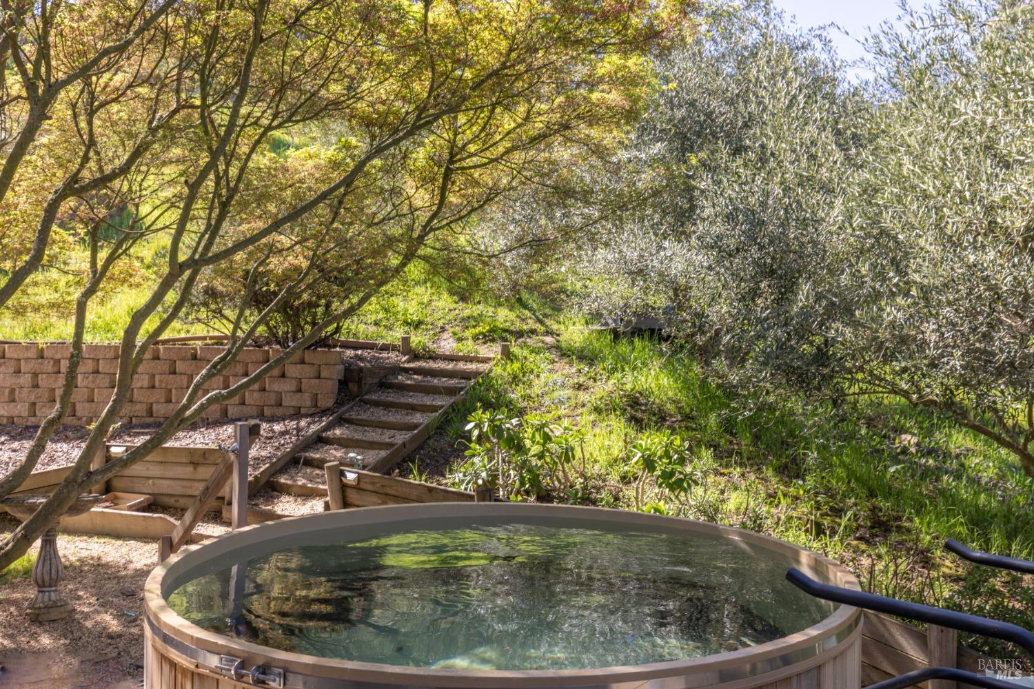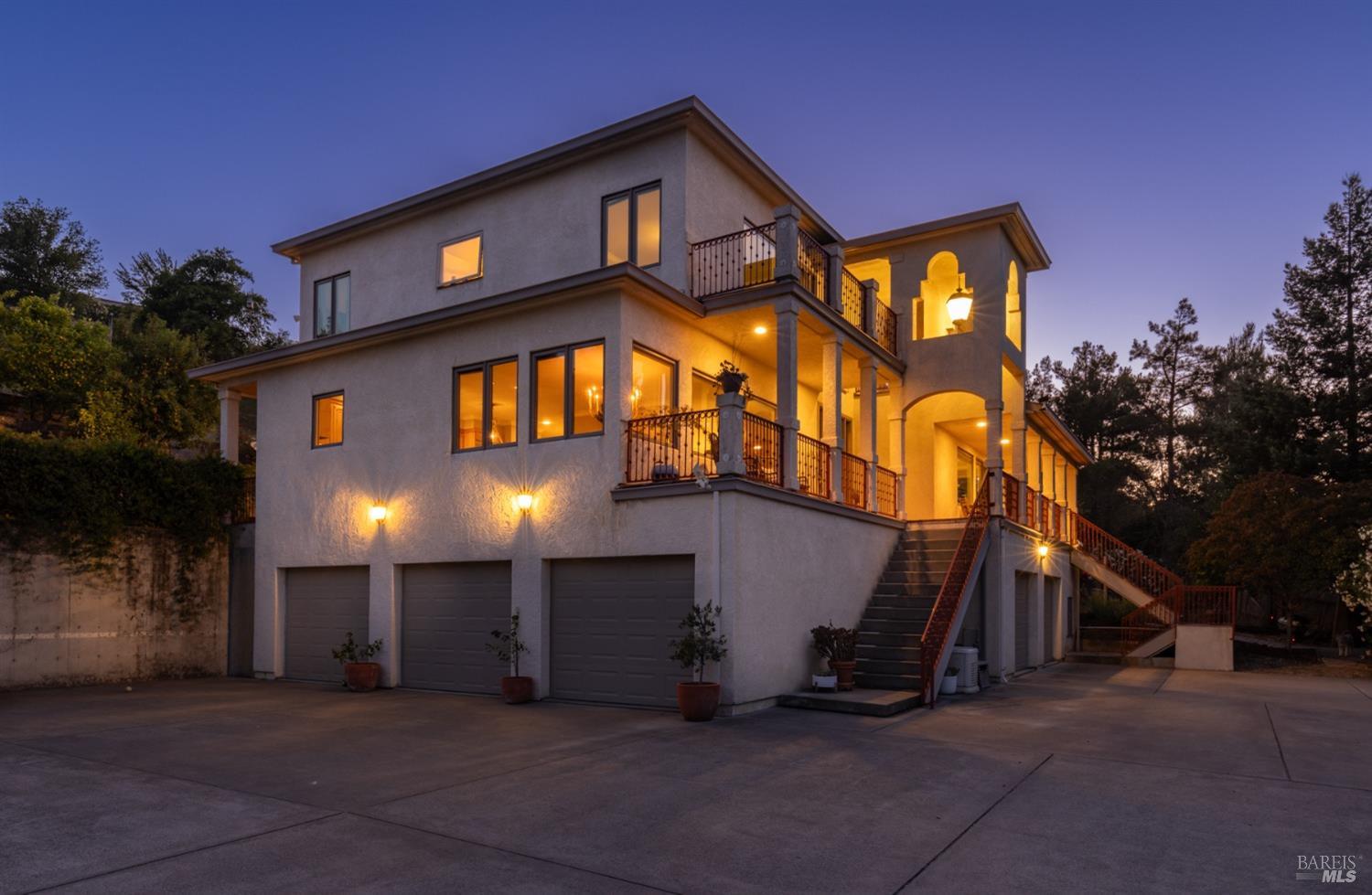 Beautiful Californian mission-style estate home. Presents a remarkable opportunity for those seeking a seamless blend of sophistication and functionality. Positioned privately down a long driveway, this residence embodies a unique combination of vision, thoughtful planning, and execution...offering all the conveniences of city living with a country vibe. Whether enjoying the multiple terraces, relishing the views, or taking in the aural beauty of birdsong from the large cedar hot tub, this estate offers a lifestyle of luxury and refinement, making it a truly exceptional offering in the market. Among its standout features is the sturdy steel beam framing ensuring structural integrity, while city services and the inclusion of a backup Generac generator speaks to the foresight invested in ensuring continuous comfort and convenience. The wine country style kitchen serves as the heart of the home, boasting upgraded materials such as classic pine cabinetry, high-end appliances including a Sub-Zero refrigerator, and Russian birch solid wood floors, opening on to a secluded outdoor eating and entertaining area. The thoughtful addition of a dumbwaiter streamlines the process of transporting groceries from the expansive 5-car garage, spanning over 1700 square feet.Interested in this Listing?