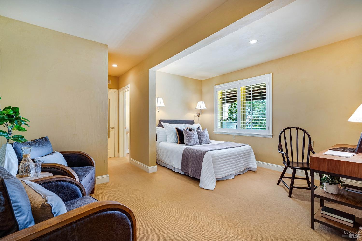 Unlock exceptional value with new pricing and a complimentary Silverado Club Membership transfer for purchases made before year-end. This refined 4-bed, 3-bath contemporary Mediterranean home, set at the end of a serene cul-de-sac in the coveted Silverado community, offers sweeping valley vistas and timeless architectural character. Vaulted ceilings, exposed wood beams, plaster walls, two wood-burning fireplaces, custom window seats, and abundant natural light create an atmosphere of understated elegance. The expansive kitchen and open family room flow seamlessly to a stunning deck overlooking Napa Valley, where views extend to the Mayacamasan idyllic setting for savoring morning coffee as hot-air balloons drift past or enjoying wine at sunset. Three generous bedrooms grace the main level, while a private lower-level suite provides an ideal guest enclave or dedicated home office. Designed for effortless indoor-outdoor living, the home is framed by inviting terraces and beautifully tended gardens. More than a residence, it is an entre to the Silverado lifestyle: championship golf (home to the ProCore Championship), tennis and pickleball, swimming pools, a full-service spa, fine dining, and proximity to world-class wineries and downtown Napa's vibrant shopping + culinary scene!Interested in this Listing?