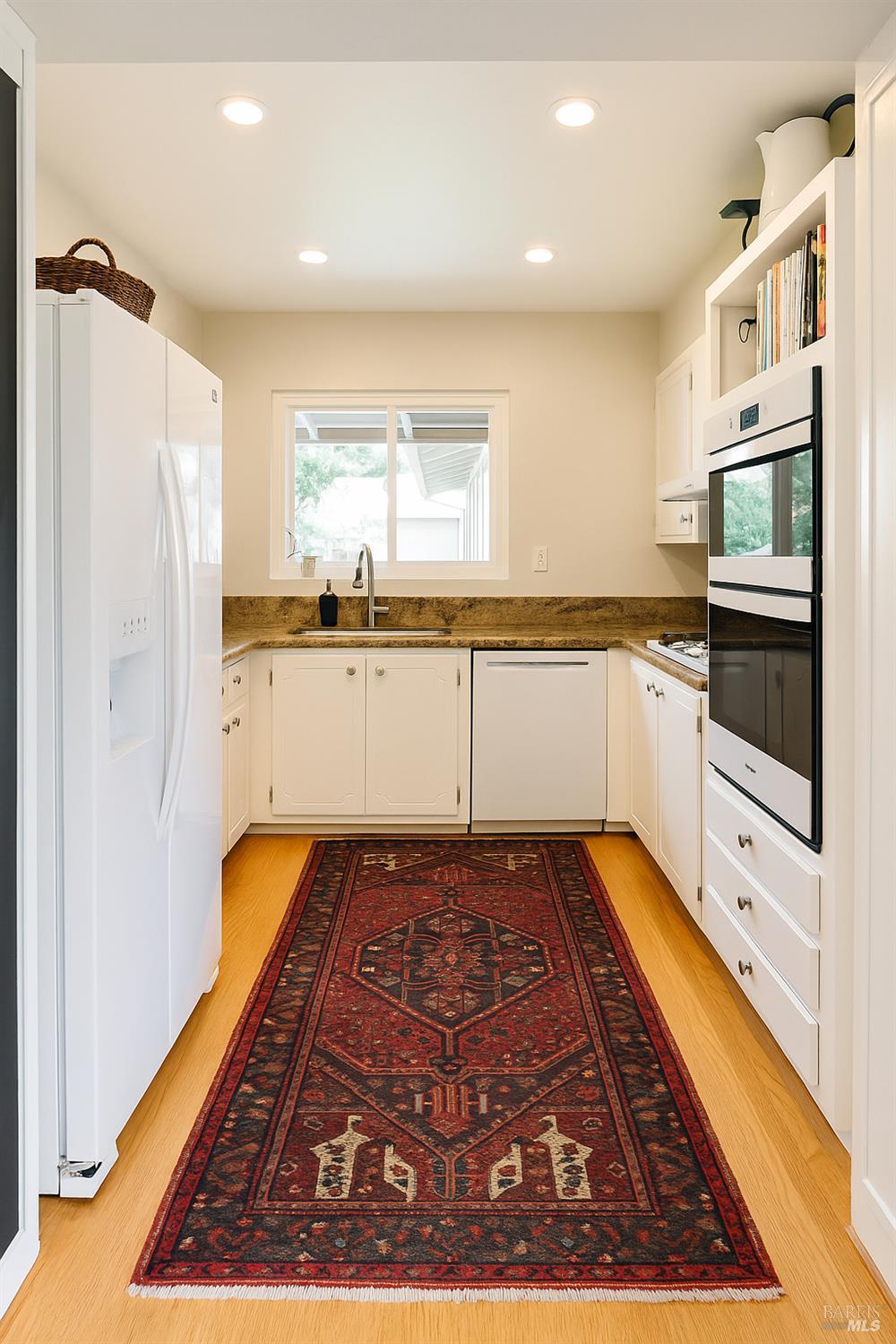 Welcome to this lovingly maintained 3-bedroom, 2-bathroom home offering 1,365 square feet of inviting living space. Designed for both comfort and functionality, this residence features a bright skylight, an open dining area seamlessly connecting the kitchen and living room and a cozy fireplace perfect for gathering with family and friends. Gleaming hardwood floors run throughout, adding warmth and character to the interiors. The home's practical layout includes an attached two-car garage with convenient interior access and plenty of storage space. Outdoors, you'll find a spacious patio ideal for entertaining, complete with a brick BBQ for summer cookouts, as well as additional parking spaces for guests. Perfectly situated near the Bel Aire Shopping Center, you'll enjoy easy access to Whole Foods, Trader Joe's, Target, OSH and a variety of local dining options. Schools, parks and public transportation are just minutes away, making this an ideal location for both everyday living and commuting. Don't miss your chance to call this beautiful Napa home your own, where timeless charm meets modern convenience.Interested in this Listing?
