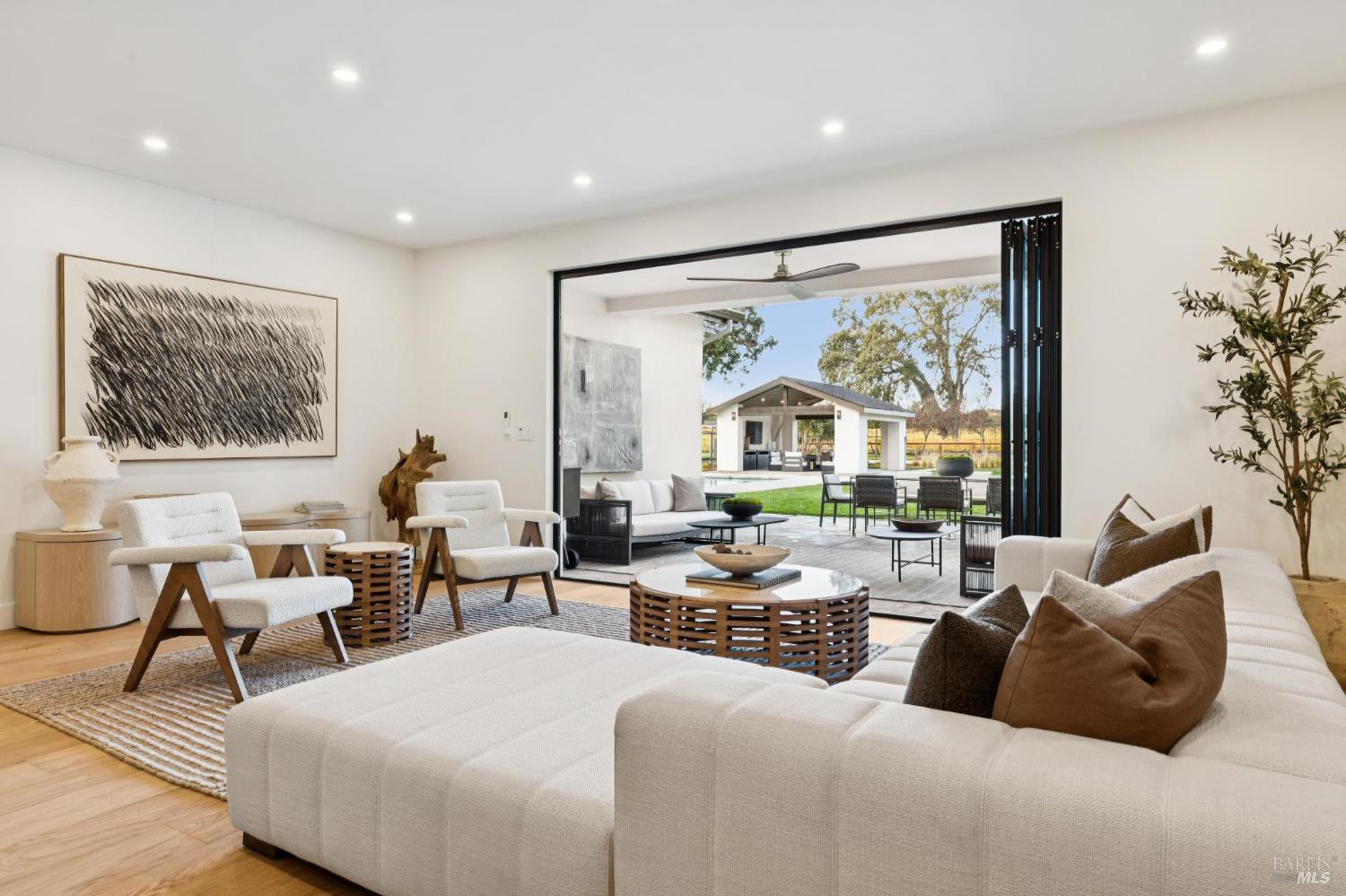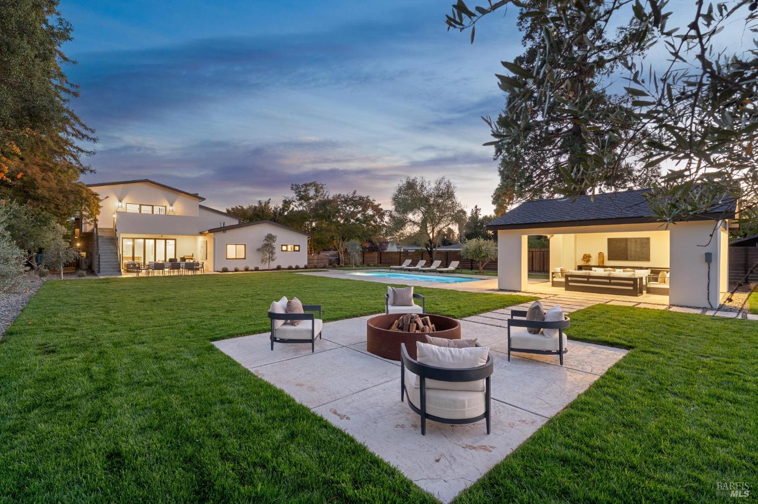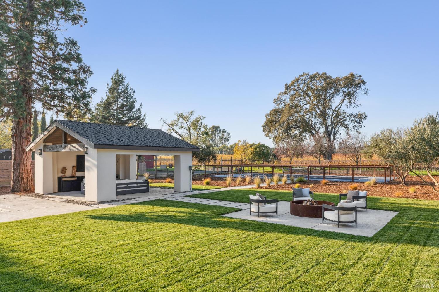 Exceptional Napa Valley lifestyle property located on desirable East Side featuring 5 BR 4 BA modern residence with 3324 +/-sq ft of refined living space on .55 acre with resort-like grounds & stunning vineyard & mountain views minutes to downtown Napa & Yountville. Completed in 2025 extensively renovated & rebuilt, this luxury residence embodies Wine Country living with outdoor features including 14' x 32' pool, 20' x 20' pavilion with shiplap ceilings & recessed lighting, built-in copper firepit with seating area, fenced-in pickleball court & mature imported olive trees - creating an extraordinary Napa Valley retreat. Designed for seamless indoor-outdoor living, great room with retractable doors transitions to spacious lanai with outdoor seating & dining area. Gourmet kitchen curated with custom White Oak inset cabinetry, marble countertops, premium Thermador appliances & spacious center island with seating opens to dining room featuring custom built-in bar with 2 Zephyr wine coolers & living room with electric fireplace both spaces enhanced by vaulted exposed wood beam ceilings. 5 BRs feature 3 ensuites with 2 large upper-level main ensuites, each with vaulted exposed wood beam ceilings, large walk-in closets & private balconies capturing extraordinary views! 3 BRs located on main level adjacent to 2 full baths. Wide plank White Oak flooring, luxury lighting, Signature Hardware & level 5 smooth walls throughout elevate the entire home. Fantastic location walking distance to Silverado Resort & Spa featuring golf, tennis & dining including market/bakery with Starbucks!Interested in this Listing?