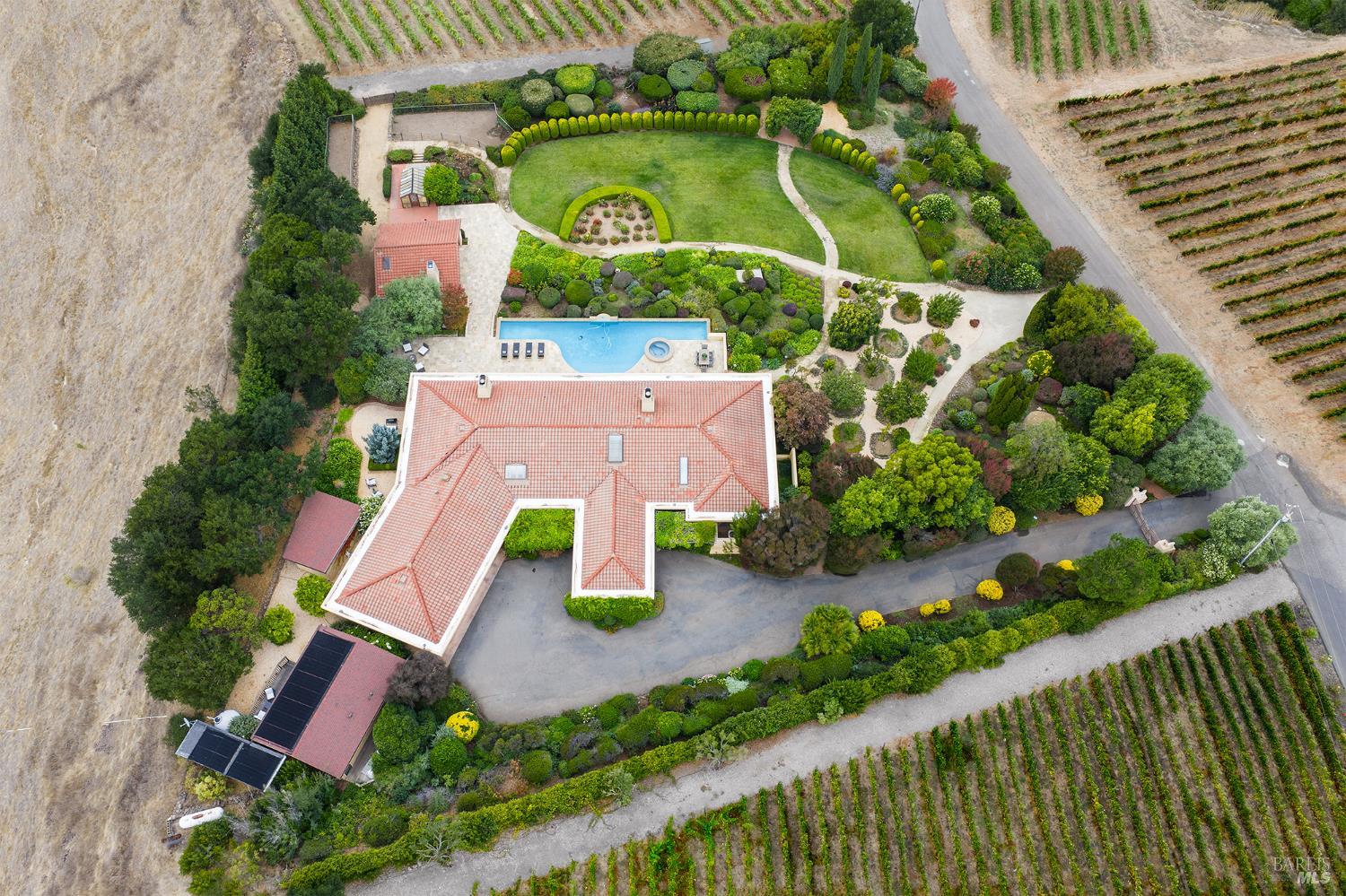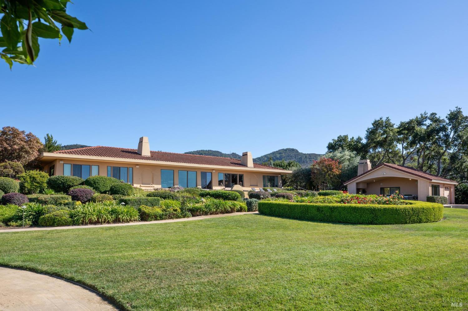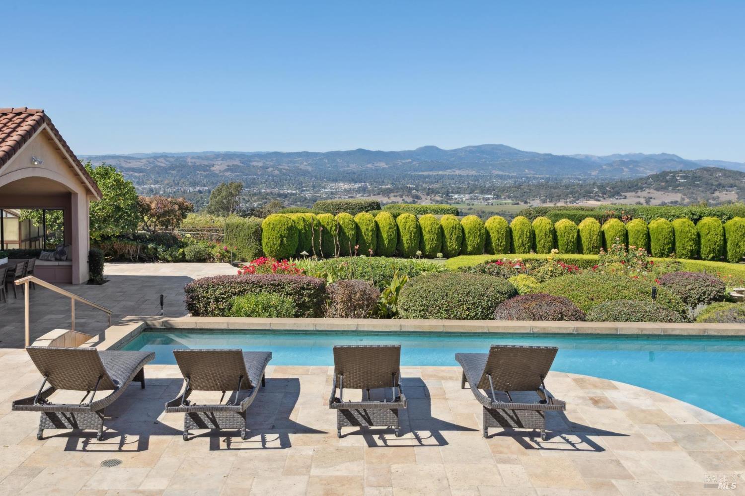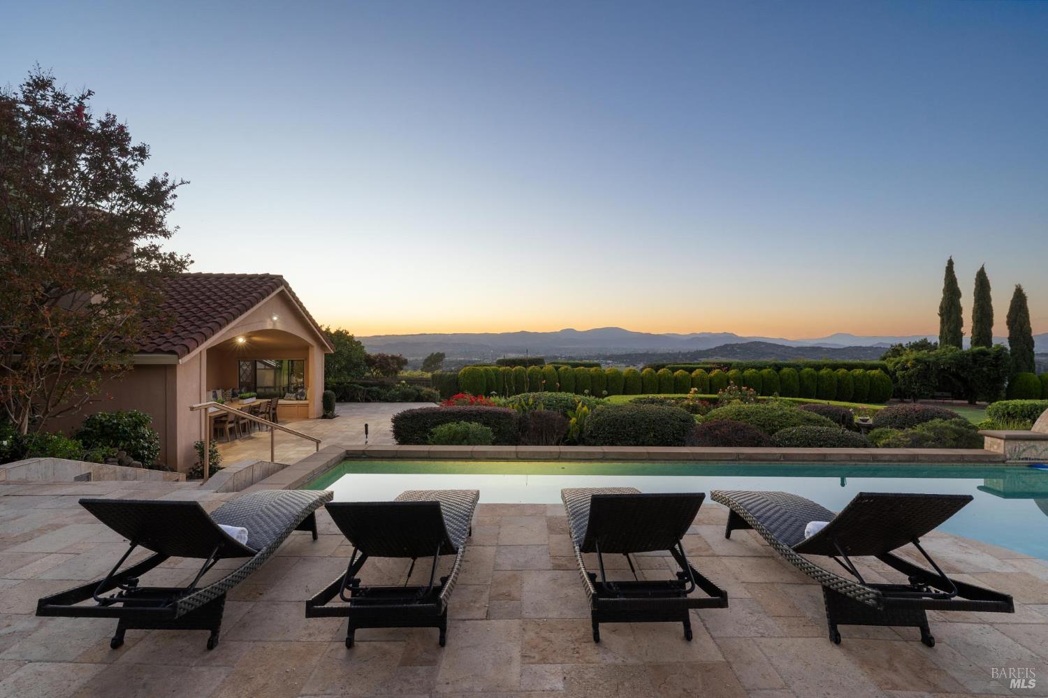 Extraordinary view estate on 5.35 acres located in private gated setting on highly desirable East side of Napa in Coombsville AVA minutes to downtown. Flanked by views of the Mayacamas & Vaca Mountains & surrounded by sea of vineyards featuring single level 4 BDR 4 BA 4213 sq ft main house, 1 BDR 1 BA 800 sq ft +/- guest house with kitchen & 1 BA 200 sq ft +/- pool house with kitchen. Experience Napa Valley lifestyle of indoor/outdoor living with sliding glass doors opening to expansive outdoor entertaining areas including solar pool with built in spa & water feature, pool house loggia with Blaze BBQ, built-in seating & dining area, large lawn, fruit orchard & jaw dropping views. Main house offers perfect floor plan for hosting guests & entertaining. Luxurious main en-suite with fireplace, seating area, 2 spa-like baths & access to pool with spa is located at one end of home & 2 ensuite BDRS with private outdoor seating areas located at opposite end plus office & 4th BDR currently used as exercise studio. Expansive great room with extraordinary views features resort-like wet bar with counter seating, 2 large seating areas each with fireplace, 2 dining areas & gourmet kitchen with Wolf range & hood, 2 SubZeros, 2 Miele dishwashers, counter seating, walk-in pantry & more!Interested in this Listing?