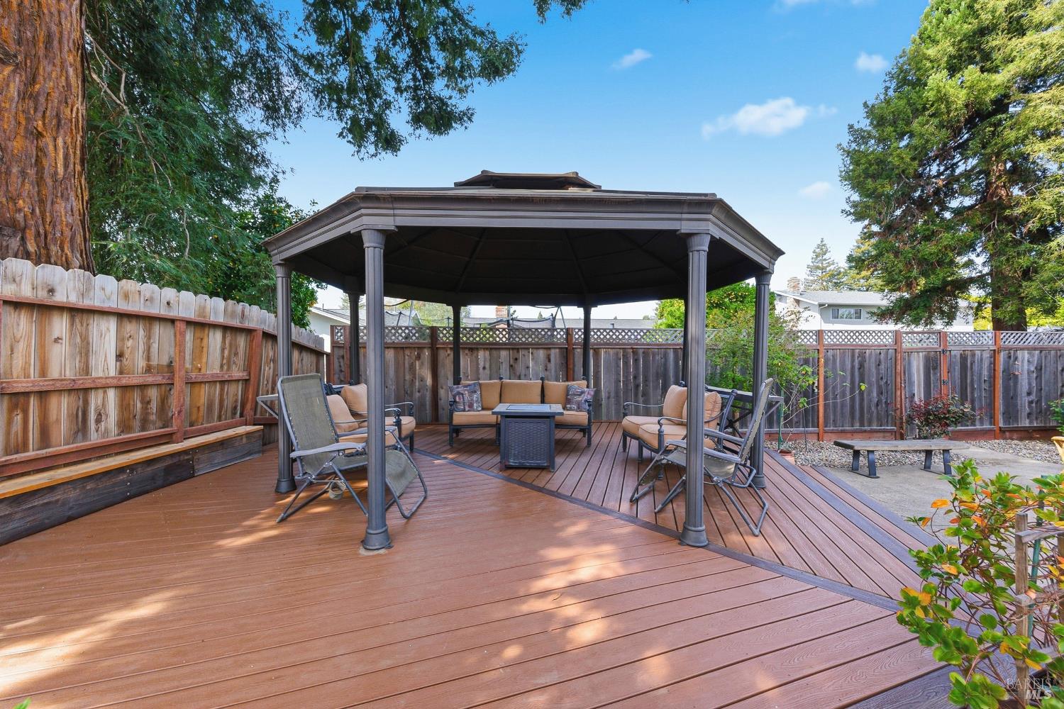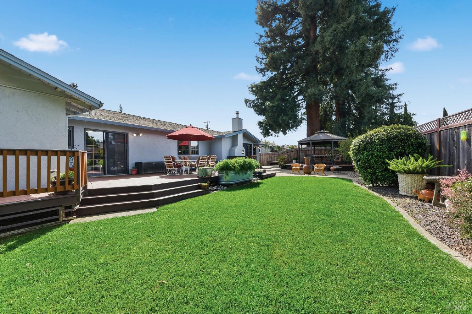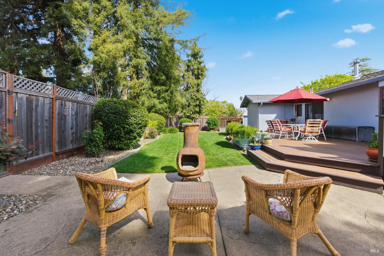 Redwood Village single level 3BR/3BA with guest retreat featuring striking curb appeal with a brick facade, refined landscaping, walkway and covered front porch. Spacious open floorplan with warm oak hardwood floors, vaulted ceilings in the family room and primary suite, and a family room centered on a gas insert fireplace in a brick hearth. Well appointed kitchen boasts granite counters and matching backsplash, stainless appliances, butcher block island with bar seating and breakfast nook; formal dining with wet bar and slider to the lush backyard. Expansive primary suite offers built ins, sitting area with wood stove, skylights, outdoor access, dual sinks, walk in tile shower and a large cedar floored walk in closet. Outdoor living on 10,000+ sq. ft. includes a cement patio, three composite decks (one with gazebo and covered seating), lush lawn and temperature controlled wine shed; additional highlights: owned solar array, central heat & A/C, broad driveway and a two car garage with epoxy floor and ample storage cabinets. All within one of Napa's premier neighborhoods with the benefit of a community pool!Interested in this Listing?