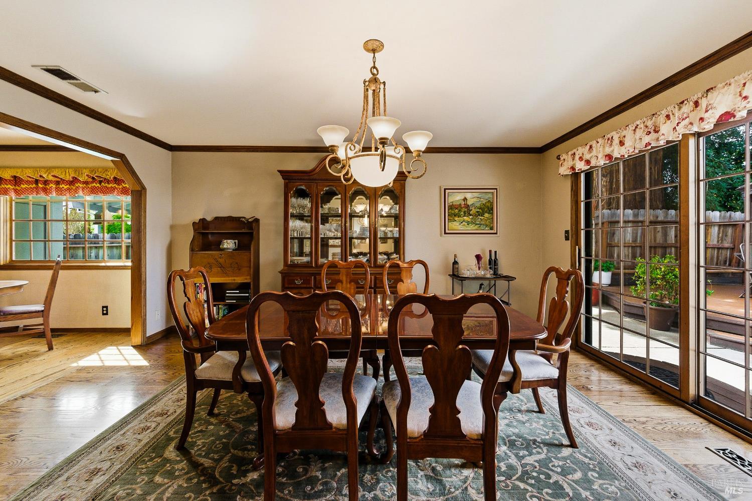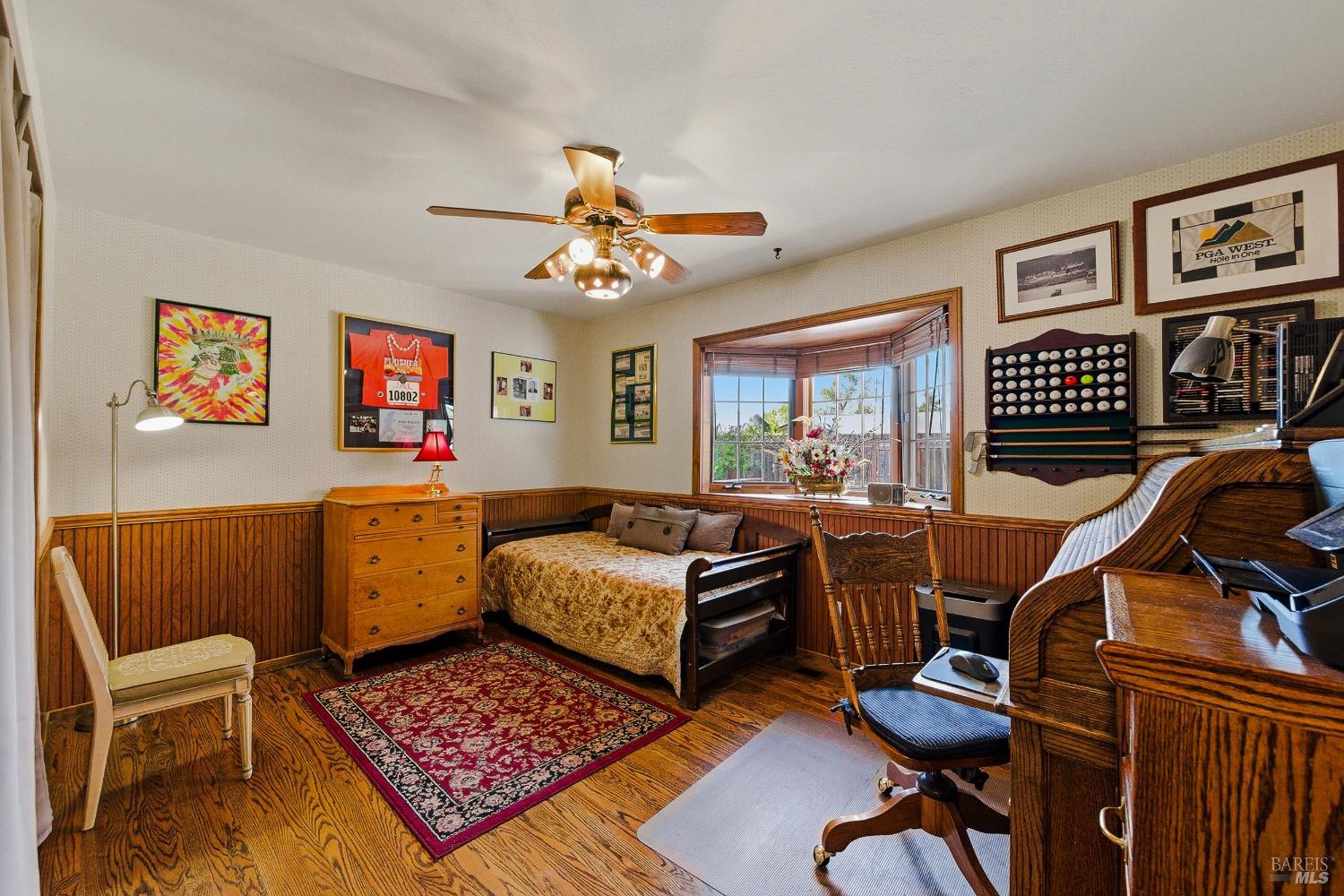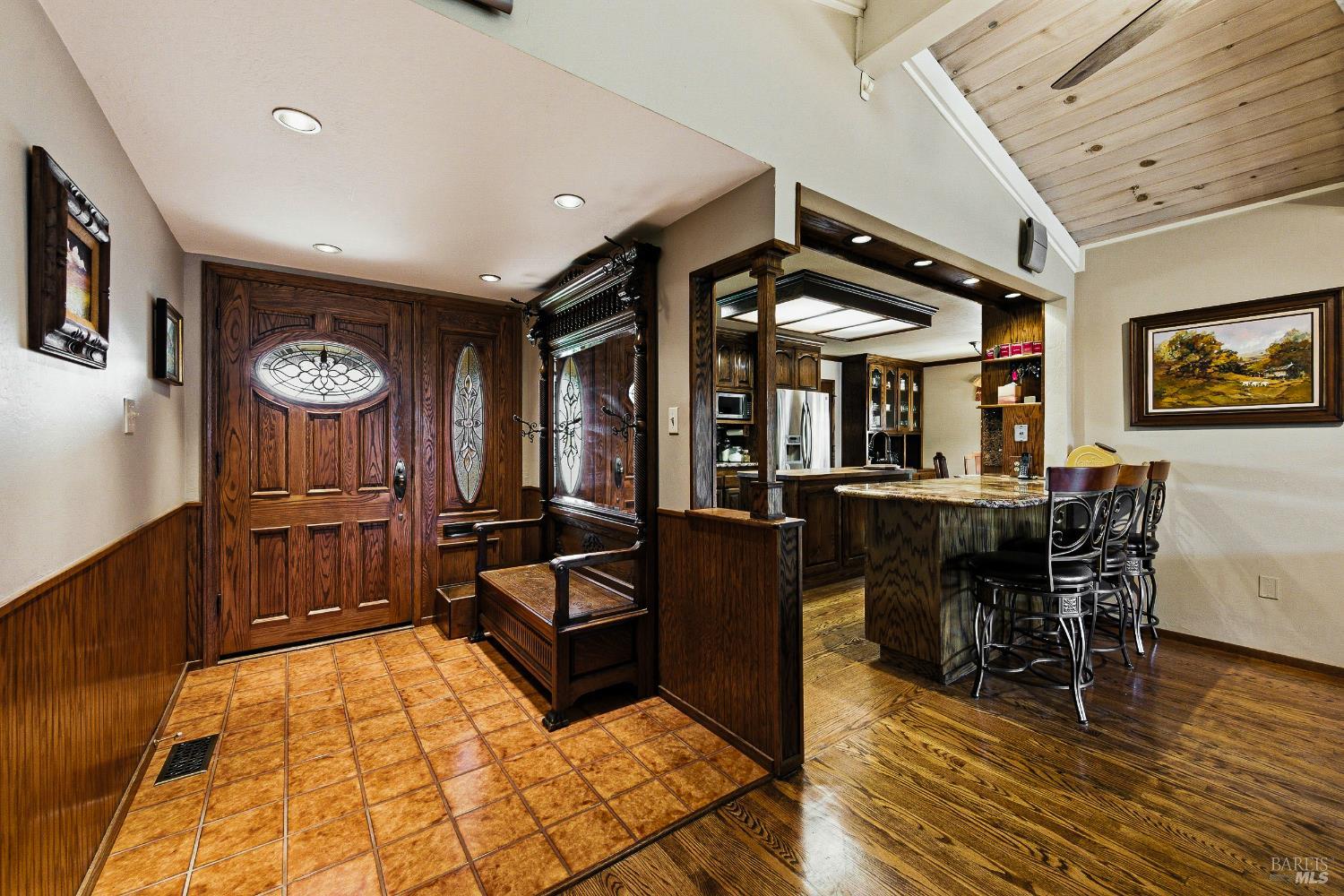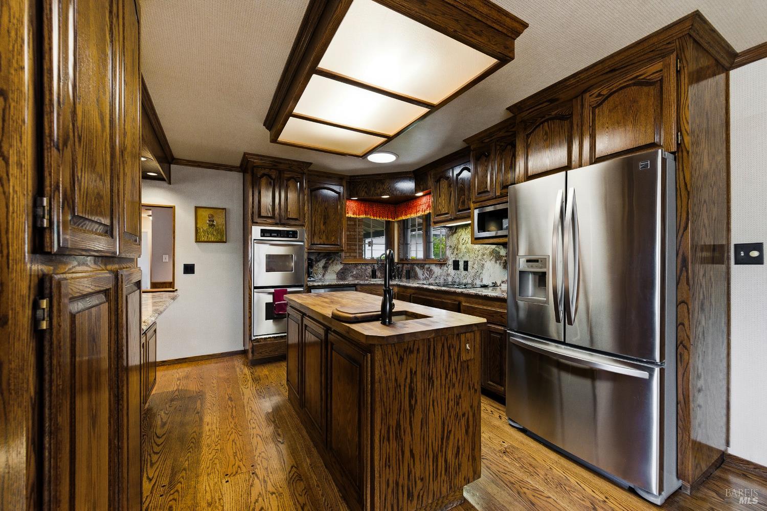 Redwood Village single level 3BR/3BA with guest retreat featuring striking curb appeal with a brick facade, refined landscaping, walkway and covered front porch. Spacious open floorplan with warm oak hardwood floors, vaulted ceilings in the family room and primary suite, and a family room centered on a gas insert fireplace in a brick hearth. Well appointed kitchen boasts granite counters and matching backsplash, stainless appliances, butcher block island with bar seating and breakfast nook; formal dining with wet bar and slider to the lush backyard. Expansive primary suite offers built ins, sitting area with wood stove, skylights, outdoor access, dual sinks, walk in tile shower and a large cedar floored walk in closet. Outdoor living on 10,000+ sq. ft. includes a cement patio, three composite decks (one with gazebo and covered seating), lush lawn and temperature controlled wine shed; additional highlights: owned solar array, central heat & A/C, broad driveway and a two car garage with epoxy floor and ample storage cabinets. All within one of Napa's premier neighborhoods with the benefit of a community pool!Interested in this Listing?
