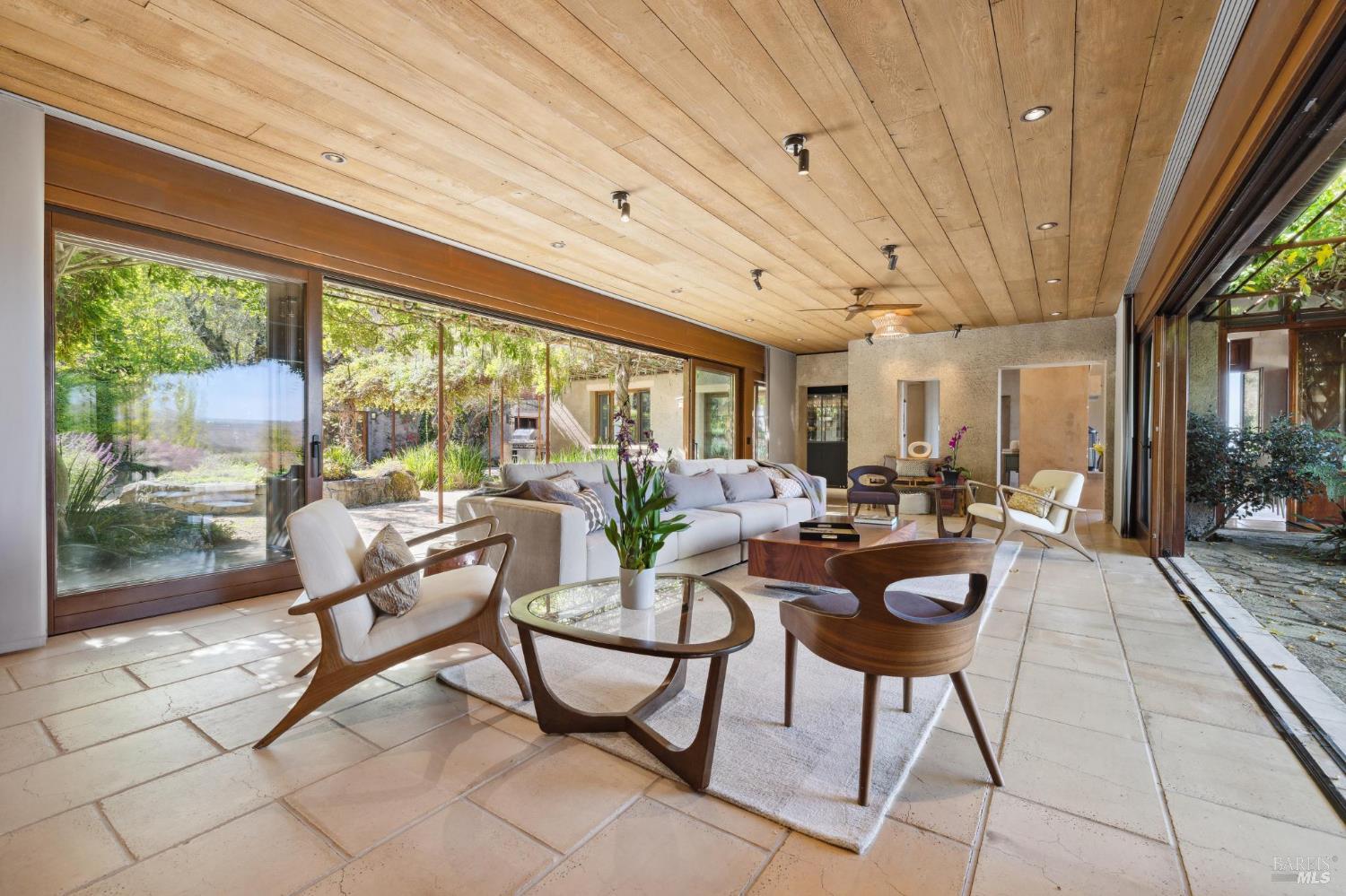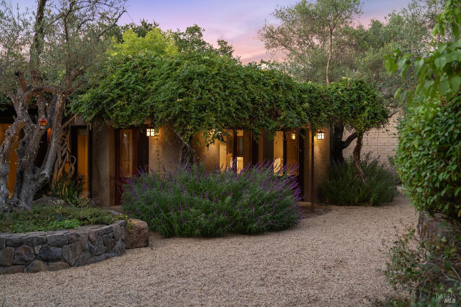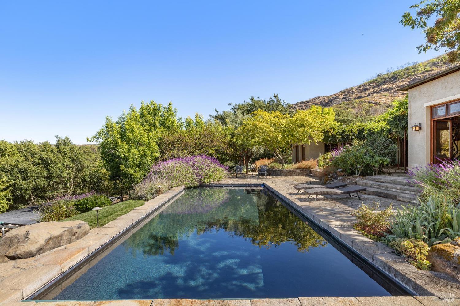 Wall Street Journal Winner: House of the Week. House of the Month and Nominee for 2025 House of the Year. (House of the year voting begins December 2025) Designed to blend in with the landscape, not dominate. This tranquil Zen influenced home, embodies peace and tranquility yet is only 7 minutes from Silverado Country Club . All homes have kitchens, bedrooms & baths, but few have rammed earth construction (designed by Michael Baushke & built by David Easton) which fold seamlessly into the rocky contours of the Palisades high above the Valley in eastern Napa. Adjacent to iconic wineries Kenzo and Jarvis. It has over 4,000 sqft, 3 ensuites artfully designed and a great room with custom floor to ceiling windows & doors that open to outdoor seating & entertaining areas capitalizing on Napa's famed indoor/outdoor living. This Zen masterpiece comes with 8-24 steel-reinforced earth walls and custom floor to ceiling windows & doors. The primary bedroom features a built-in media center with wet bar, fireplace, spacious walk-in closet, spa-like bath and access to outdoor shower & private courtyard with views. To add to the Napa Valley feel, there are expansive wine caves, 70 acres of land, a 2-acre cabernet vineyard, an olive grove and a horse barn.Interested in this Listing?