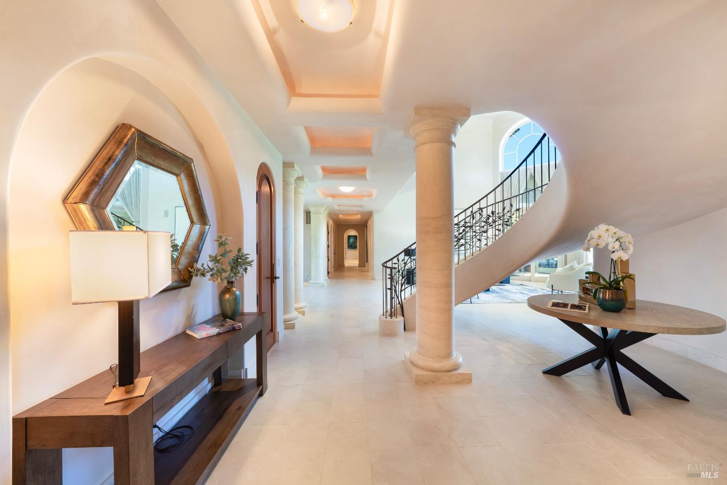 Escape to a world where luxury living meets the abundance of the land in the heart of Napa Valley's Oak Knoll AVA sited on the foothills of towering Mount Veeder. Tucked behind a private gate and framed by sweeping views to Atlas Peak, this 35 acre estate is pure Napa Valley wine country magic. A grand stone-and-stucco residence 6,535 sq ft of light, elegance, and volume welcomes you with a soaring 2-story atrium, curved floating staircase, and sunlit rooms that flow effortlessly to the outdoors. Lounge by the infinity edge pool overlooking your vineyard, work on your putting game, or gather around the pizza oven as the sun dips behind you. With 5.7 acres planted (plus 5 more under replant), olive trees, two reservoirs, and a sport court, this is a lifestyle rooted in beauty and bounty. Inside, every room invites comfort and sophistication: vaulted beam ceilings, chef-grade kitchen appliances, a dreamy primary suite with private office, and bespoke finishes throughout. The hillside estate is blessed with ample water sources, with two reservoirs dedicated to the agriculture and a well for domestic use. A spacious agricultural barn with office, 2,040 sq ft garage, and new security gate system complete the dream. This is more than a home it's a destination.Interested in this Listing?