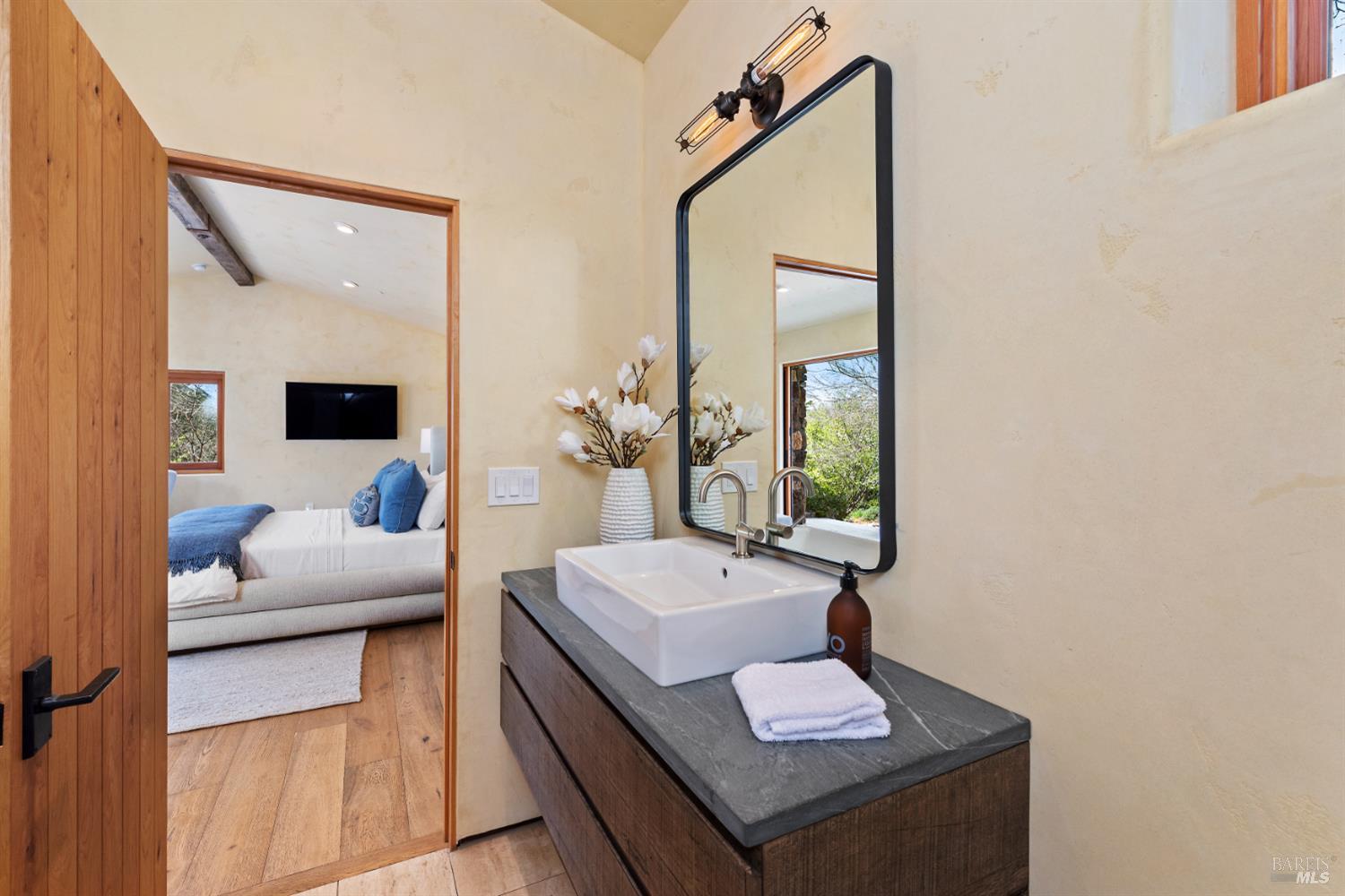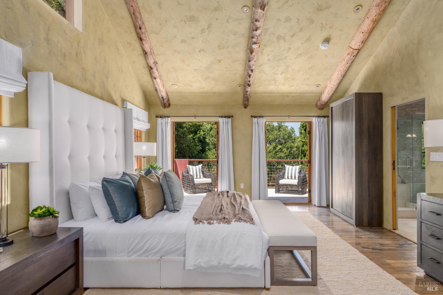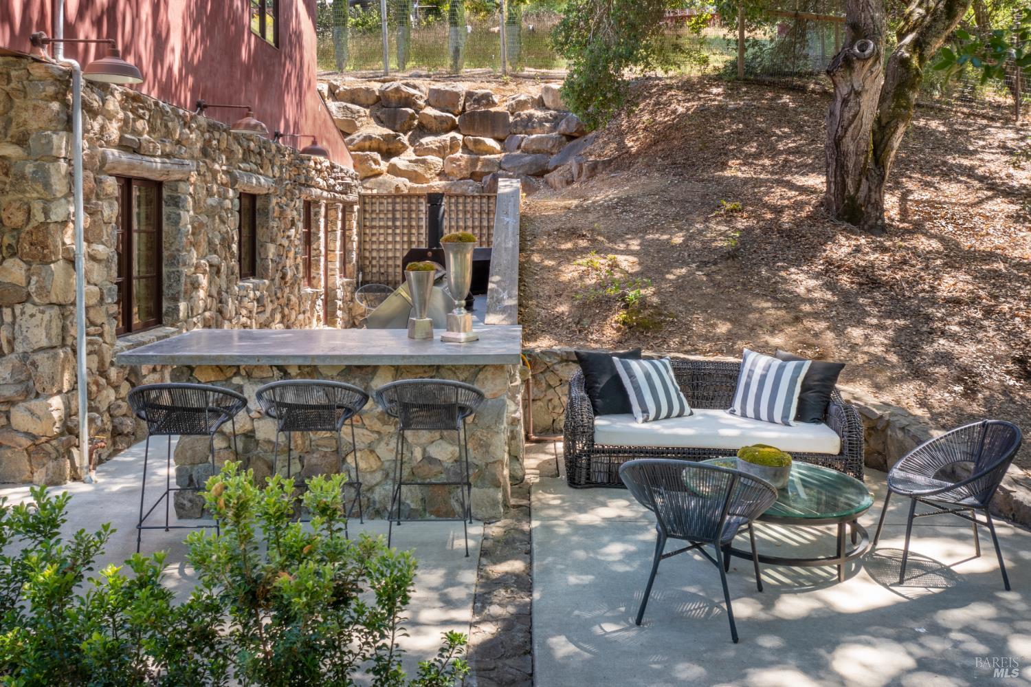 Within Napa's established Browns Valley neighborhood, this residence designed by Jack Chandler draws upon Italy's Lake Garda architecture, constructed with materials sourced directly from the region. Quality masonry, soft plaster and limestone, and substantial timber create a quiet sense of permanence and calm. On just over an acre, a 4,496 Sq Ft, 4 Bedroom main house and 464 Sq Ft single-level guest unit with full bath sit within a beautiful and private setting, hovering just above the core of Napa Valley's esteemed destinations for dining, wine tasting, hiking, wellness, and community activities. Open-concept living areas connect directly to the front patios and garden, supporting an indoor-outdoor flow central to Napa Valley's year-round, relaxed lifestyle. Outside, a level lawn surrounded by cypress trees, roses, and greenery, an outdoor kitchen, two covered patios, and a walking path that meanders to the lower portion of the property are incredibly private and ideal for entertaining. The kitchen features top-end appliances, an oversized pantry, and scullery room which anchors daily activity, while adjacent living and media rooms allow for the spaces to be enjoyed simultaneously. On the main level, a sizable en suite bedroom is fit to be a second primary bedroom. Upstairs, a primary suite is complete with large spa-like bathroom, walk-in closet, office space, a fireplace with marble surround, and a private balcony accessed through French doors, perfect for enjoying quite moments outdoors. From the second-floor guest bedrooms with walk-in closets and en suite bathrooms, filtered mountain views appear through trees. The detached guest unit complete with full bathroom and closet offers true separation, well-suited to also be an office or gym. The 3-car garage includes electric car charging station and room for storage. Quietly embedded in Browns Valley, this property is moments to downtown Napa with easy access to San Francisco and surrounding Wine Country destinations.Interested in this Listing?