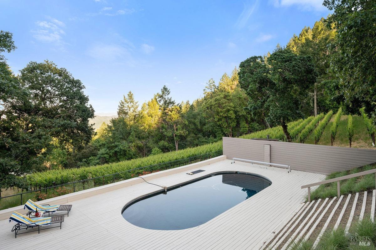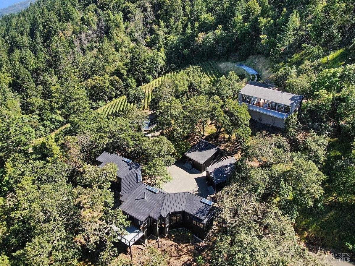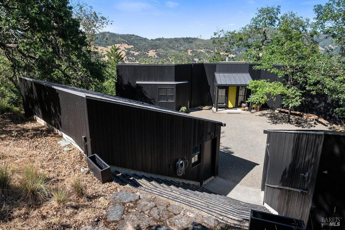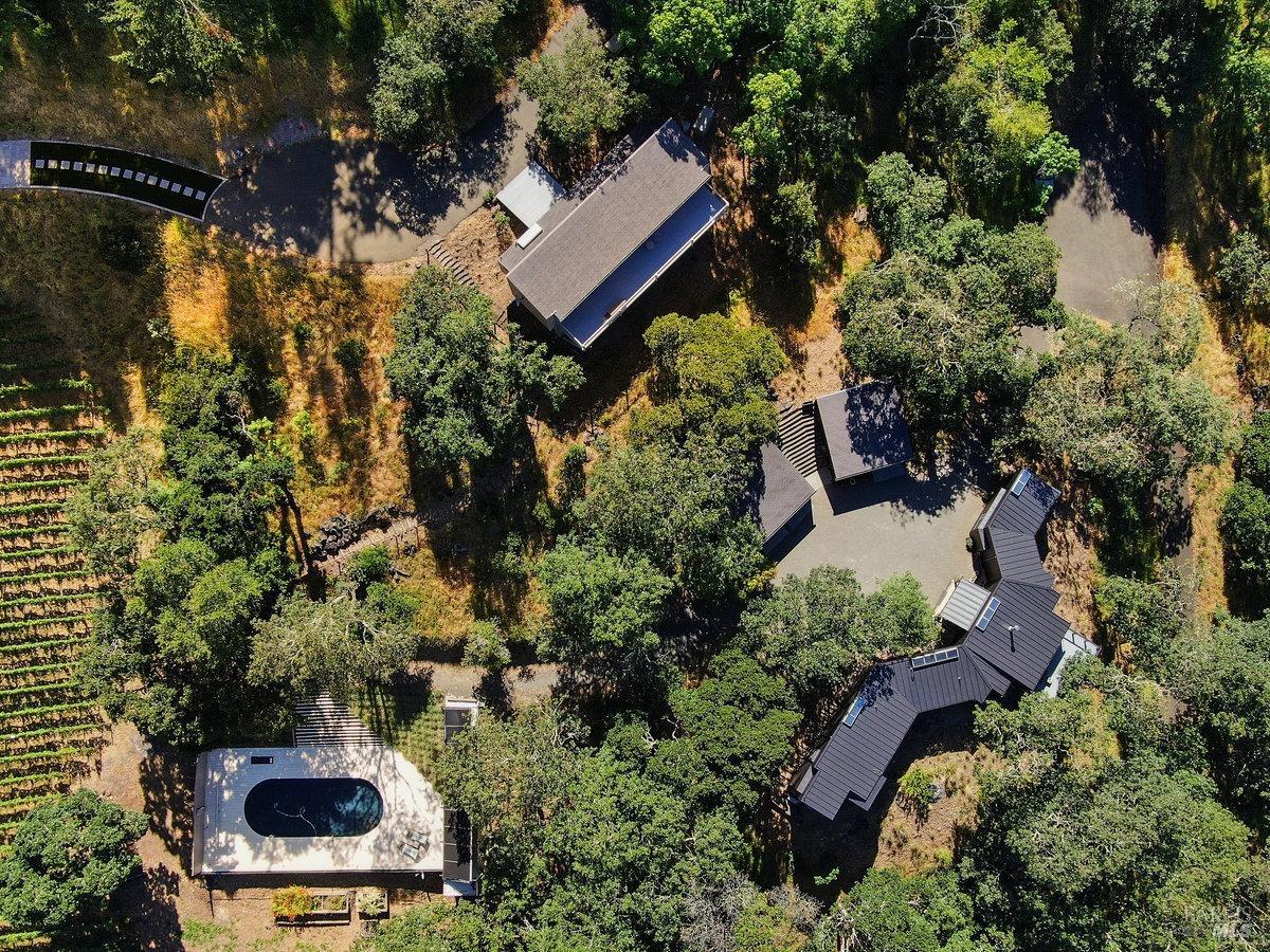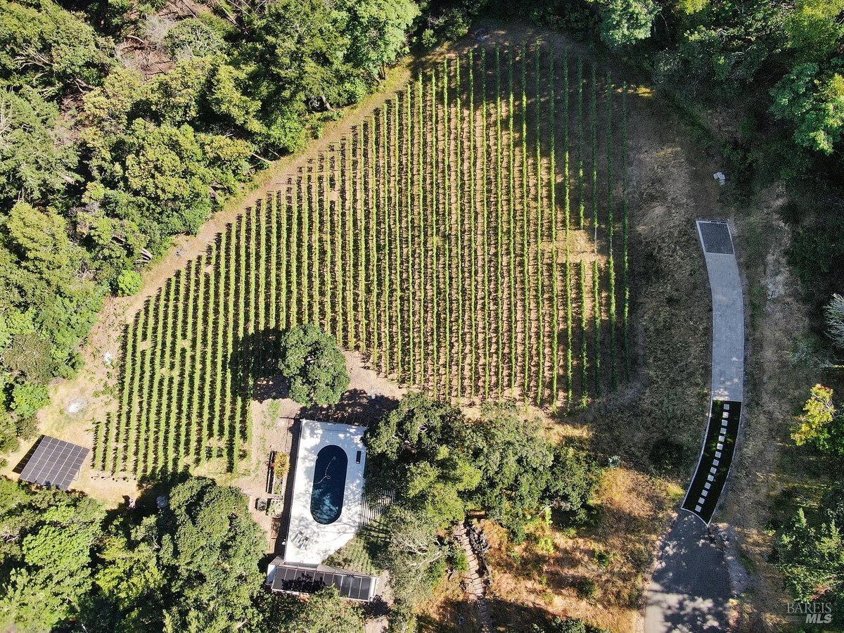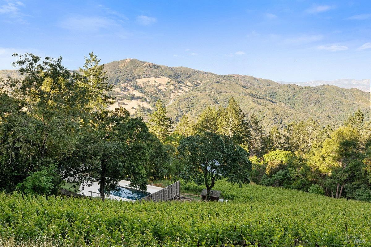 Designed by renowned architect William Turnbull, the 2,500-square-foot main house seamlessly integrates with the surrounding landscape. Unparalleled sanctuary spread across over 47 acres of pristine land. Unique blend of natural splendor, architectural distinction modern amenities, making it an ideal haven for discerning buyers who value privacy, a great reputation and potential. The driveway leads up from the valley below to a courtyard formed by 2 separate garages and by the tall wall of the house. A masterpiece of design featuring two spacious bedrooms, open floorpan with gourmet kitchen - SubZero fridge, Dacor gas range, Miele dishwasher & wood burning fireplace. A detached 1bdr 1ba 1,995-square-foot guest house with full kitchen and a basement, designed by SF modernists Marquis & Stoller, offers additional accommodation and is complemented by a private large deck with breathtaking panoramic views. An outdoor pool and a pool house designed by architect Dan Solomon. Embrace the essence of wine country living with 1,3 acre of Cab Sauvignon producing grapes -3 vineyard blocks planted in high-altitude vineyard (1400-1600ft elevation), Mt. Veeder AVA. Explore the private hiking trail leading to the summit of the mountains, offering panoramic views of Sonoma & Napa valleys.Interested in this Listing?
