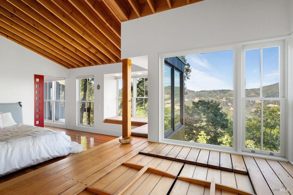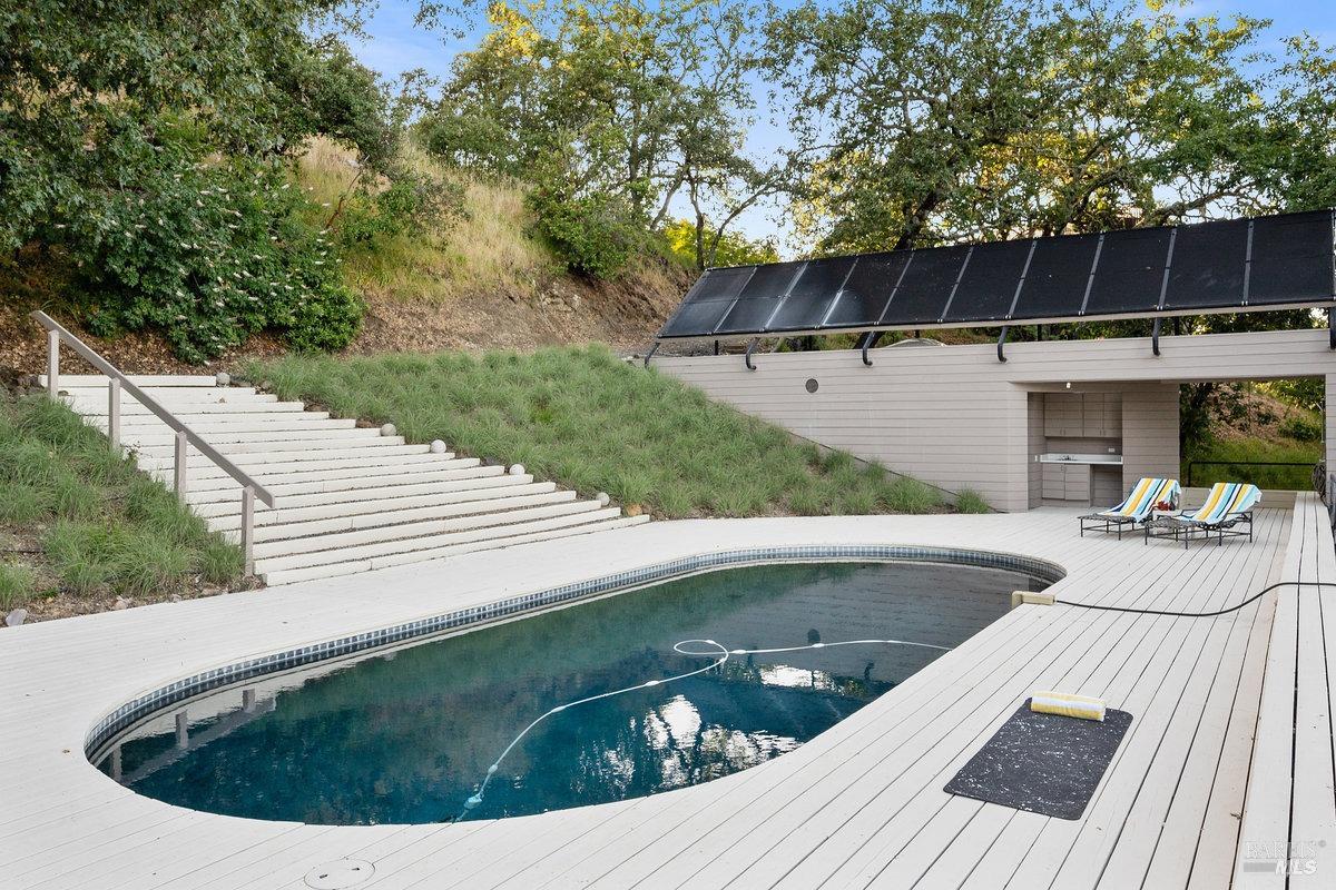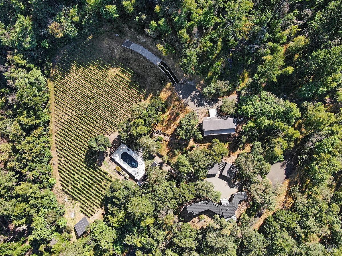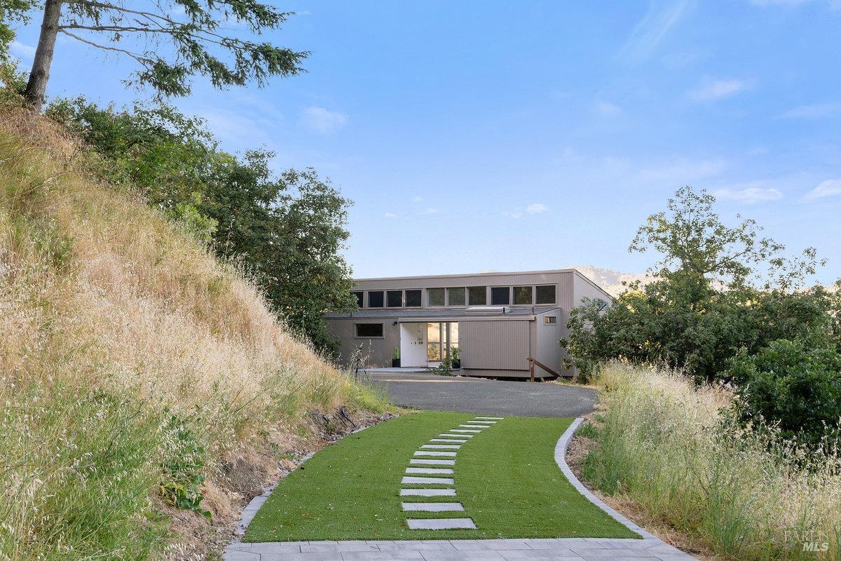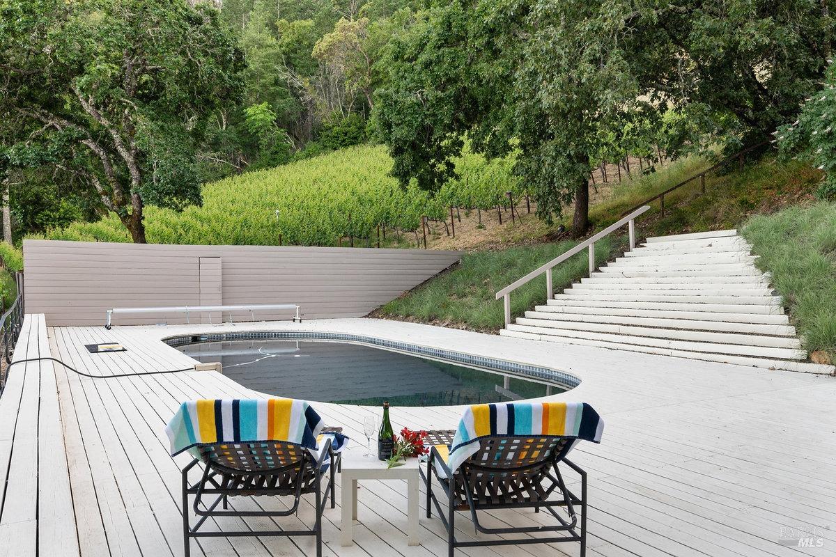 Designed by renowned architect William Turnbull, the 2,500-square-foot main house seamlessly integrates with the surrounding landscape. Unparalleled sanctuary spread across over 47 acres of pristine land. Unique blend of natural splendor, architectural distinction modern amenities, making it an ideal haven for discerning buyers who value privacy, a great reputation and potential. The driveway leads up from the valley below to a courtyard formed by 2 separate garages and by the tall wall of the house. A masterpiece of design featuring two spacious bedrooms, open floorpan with gourmet kitchen - SubZero fridge, Dacor gas range, Miele dishwasher & wood burning fireplace. A detached 1bdr 1ba 1,995-square-foot guest house with full kitchen and a basement, designed by SF modernists Marquis & Stoller, offers additional accommodation and is complemented by a private large deck with breathtaking panoramic views. An outdoor pool and a pool house designed by architect Dan Solomon. Embrace the essence of wine country living with 1,3 acre of Cab Sauvignon producing grapes -3 vineyard blocks planted in high-altitude vineyard (1400-1600ft elevation), Mt. Veeder AVA. Explore the private hiking trail leading to the summit of the mountains, offering panoramic views of Sonoma & Napa valleys.Interested in this Listing?