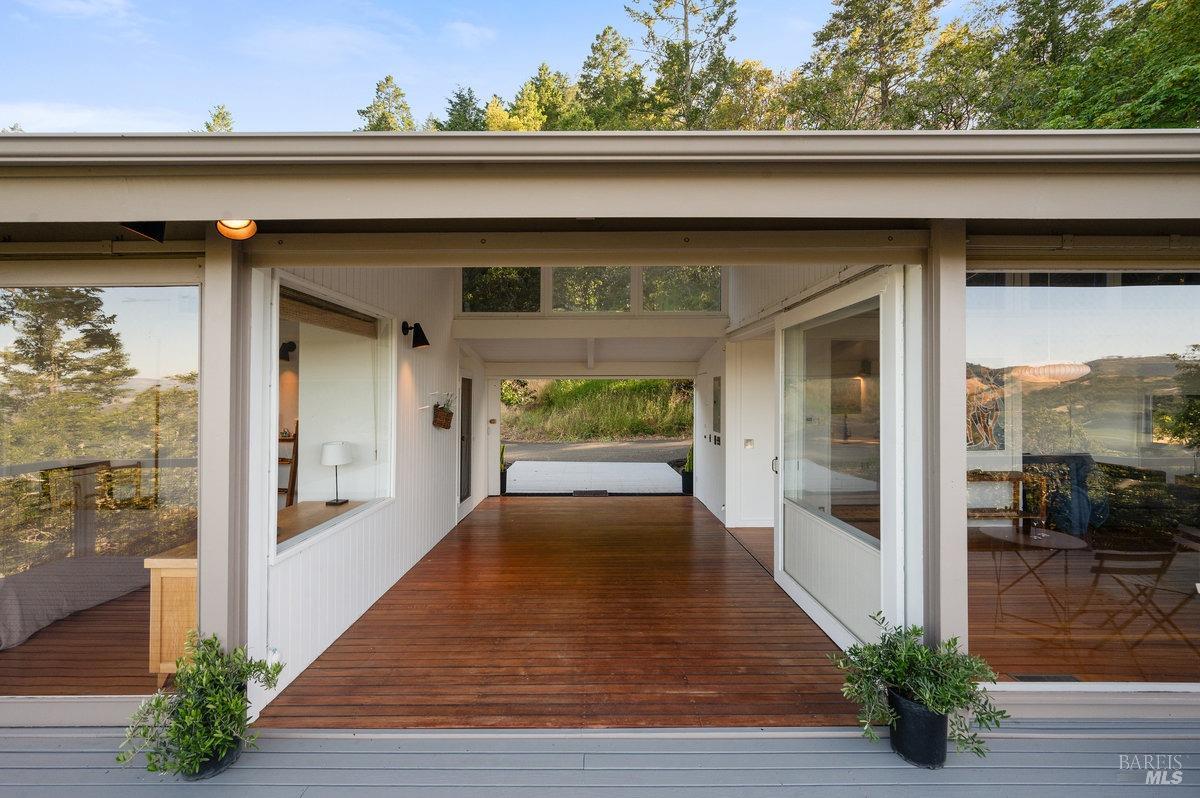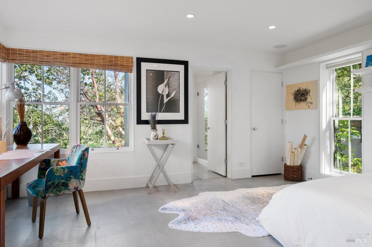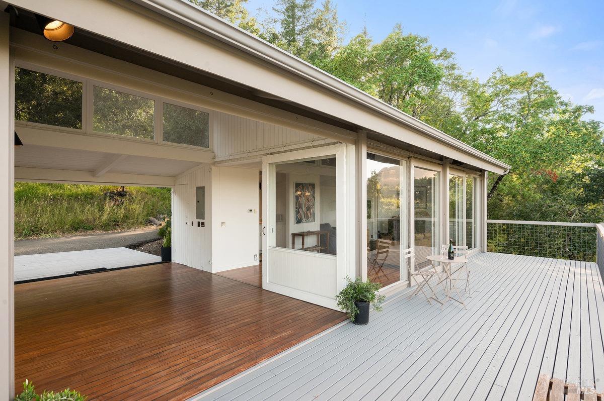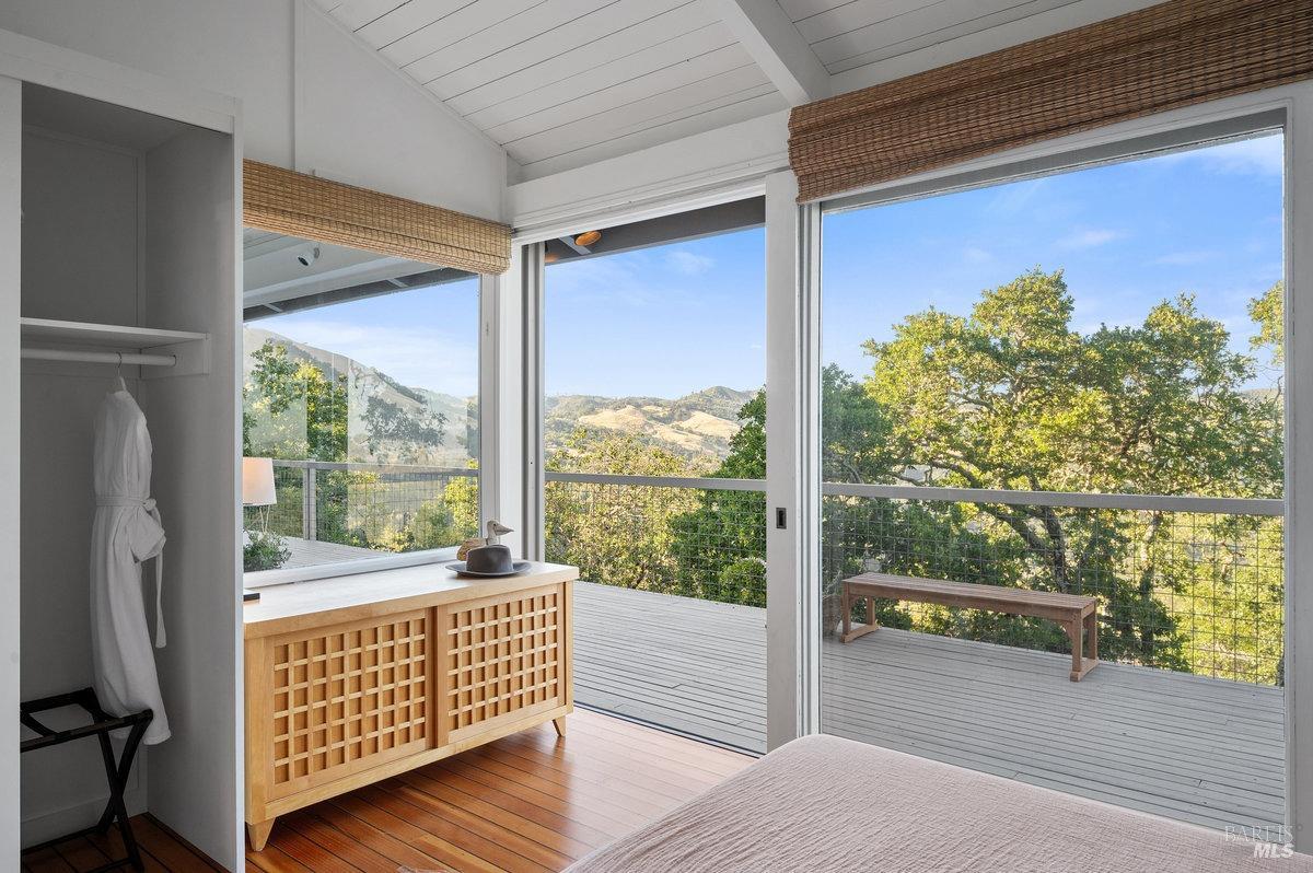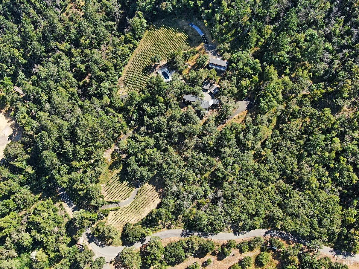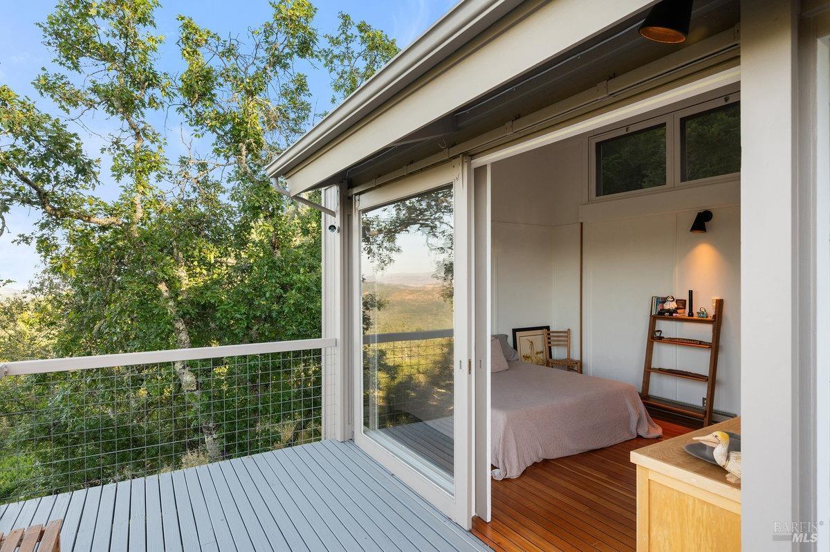Designed by renowned architect William Turnbull, the 2,500-square-foot main house seamlessly integrates with the surrounding landscape. Unparalleled sanctuary spread across over 47 acres of pristine land. Unique blend of natural splendor, architectural distinction modern amenities, making it an ideal haven for discerning buyers who value privacy, a great reputation and potential. The driveway leads up from the valley below to a courtyard formed by 2 separate garages and by the tall wall of the house. A masterpiece of design featuring two spacious bedrooms, open floorpan with gourmet kitchen - SubZero fridge, Dacor gas range, Miele dishwasher & wood burning fireplace. A detached 1bdr 1ba 1,995-square-foot guest house with full kitchen and a basement, designed by SF modernists Marquis & Stoller, offers additional accommodation and is complemented by a private large deck with breathtaking panoramic views. An outdoor pool and a pool house designed by architect Dan Solomon. Embrace the essence of wine country living with 1,3 acre of Cab Sauvignon producing grapes -3 vineyard blocks planted in high-altitude vineyard (1400-1600ft elevation), Mt. Veeder AVA. Explore the private hiking trail leading to the summit of the mountains, offering panoramic views of Sonoma & Napa valleys.Interested in this Listing?