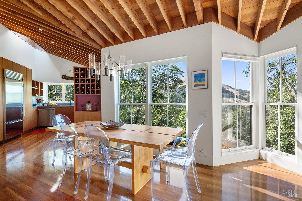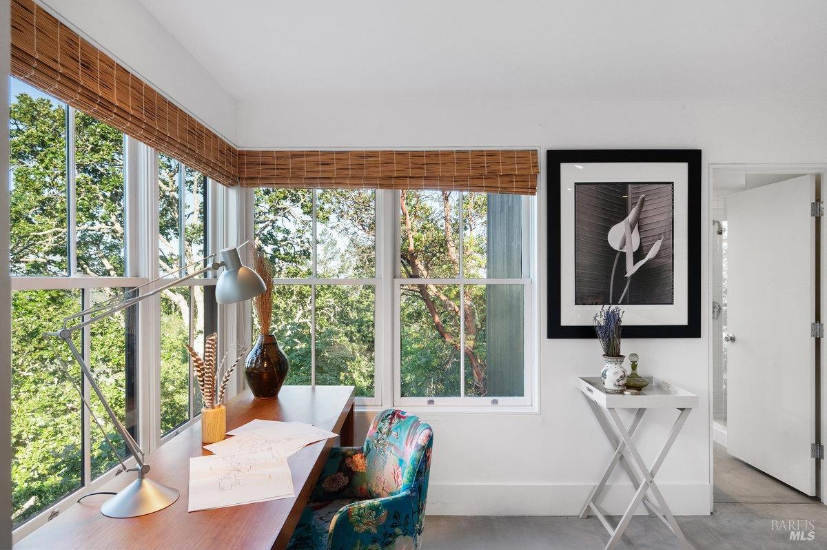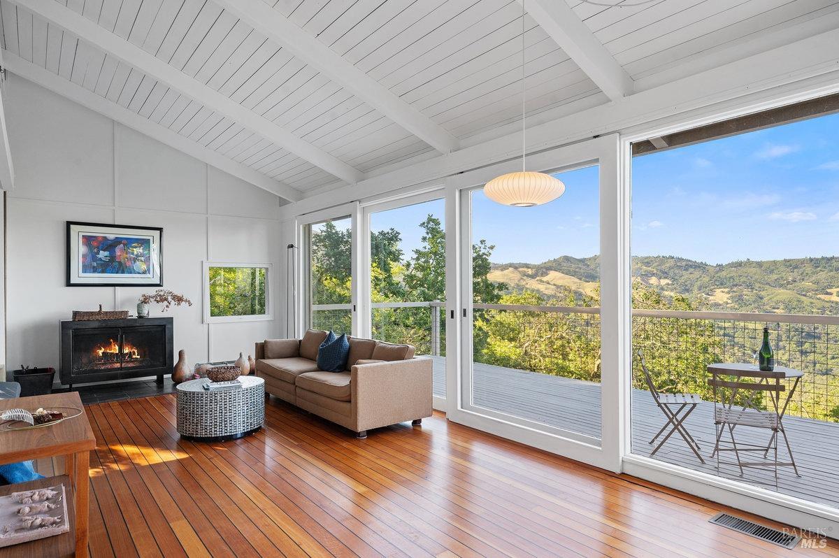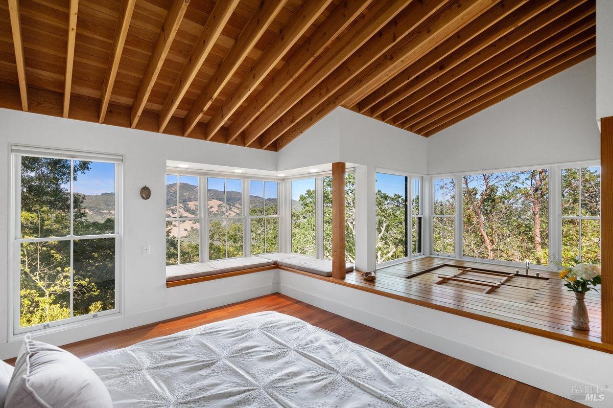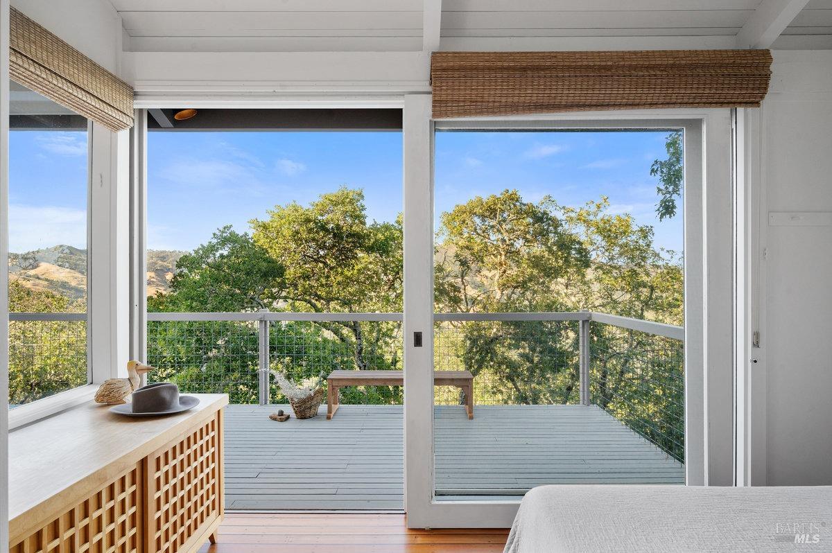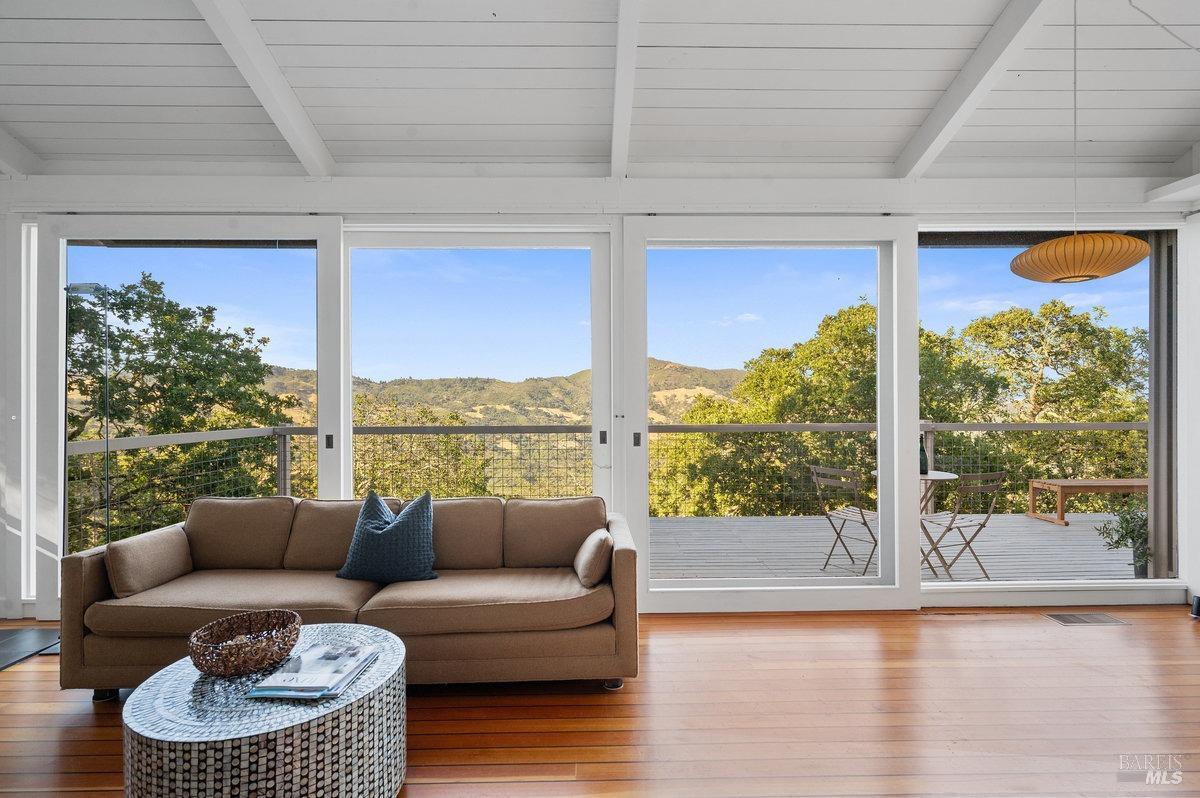 Designed by renowned architect William Turnbull, the 2,500-square-foot main house seamlessly integrates with the surrounding landscape. Unparalleled sanctuary spread across over 47 acres of pristine land. Unique blend of natural splendor, architectural distinction modern amenities, making it an ideal haven for discerning buyers who value privacy, a great reputation and potential. The driveway leads up from the valley below to a courtyard formed by 2 separate garages and by the tall wall of the house. A masterpiece of design featuring two spacious bedrooms, open floorpan with gourmet kitchen - SubZero fridge, Dacor gas range, Miele dishwasher & wood burning fireplace. A detached 1bdr 1ba 1,995-square-foot guest house with full kitchen and a basement, designed by SF modernists Marquis & Stoller, offers additional accommodation and is complemented by a private large deck with breathtaking panoramic views. An outdoor pool and a pool house designed by architect Dan Solomon. Embrace the essence of wine country living with 1,3 acre of Cab Sauvignon producing grapes -3 vineyard blocks planted in high-altitude vineyard (1400-1600ft elevation), Mt. Veeder AVA. Explore the private hiking trail leading to the summit of the mountains, offering panoramic views of Sonoma & Napa valleys.Interested in this Listing?