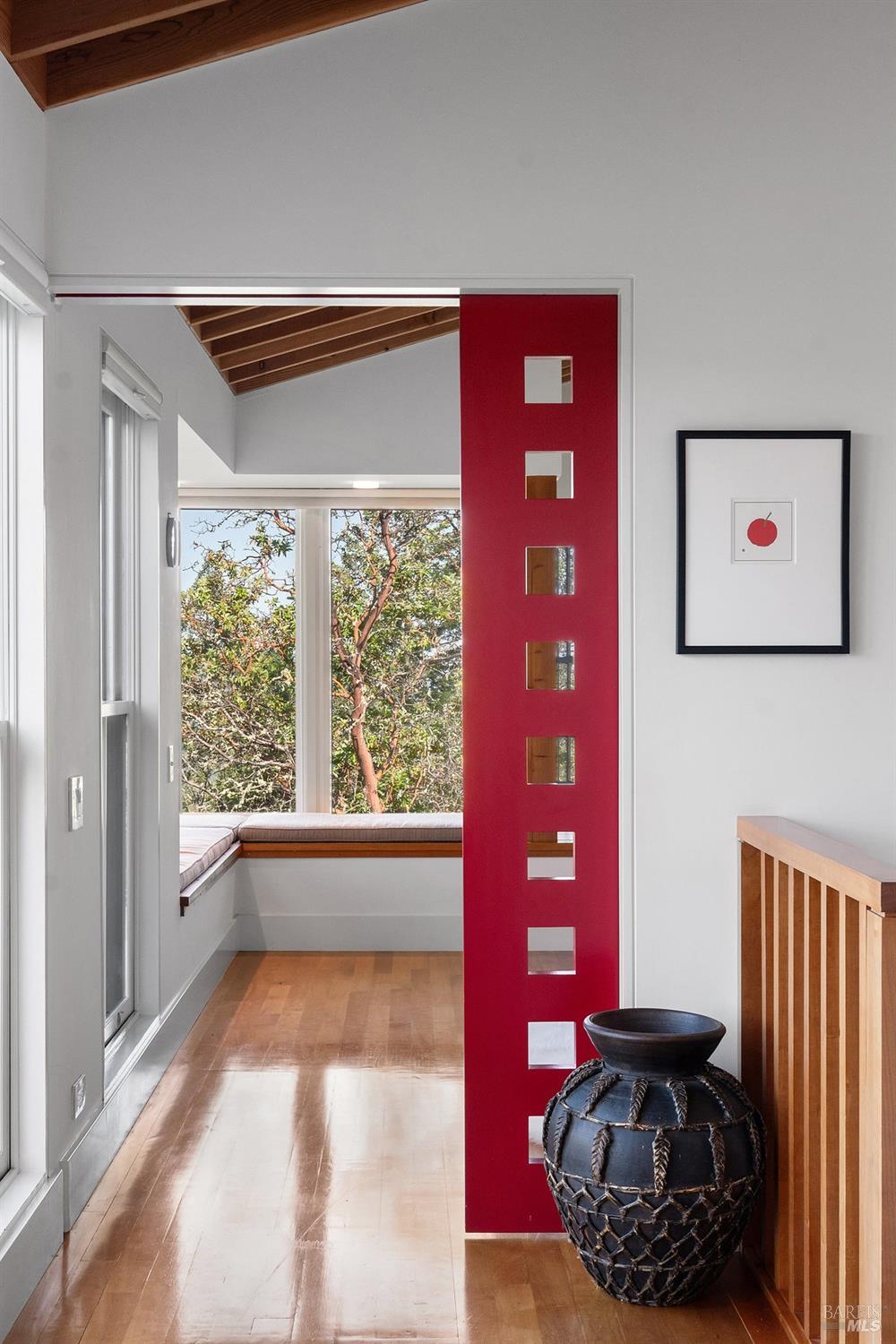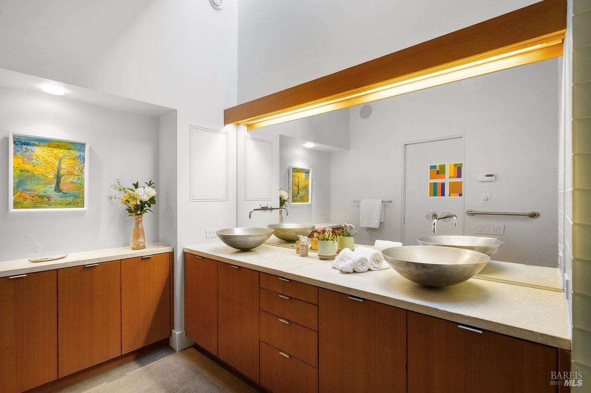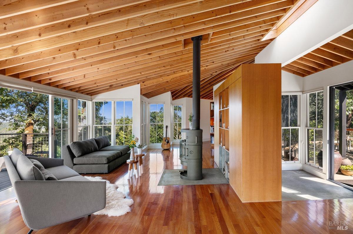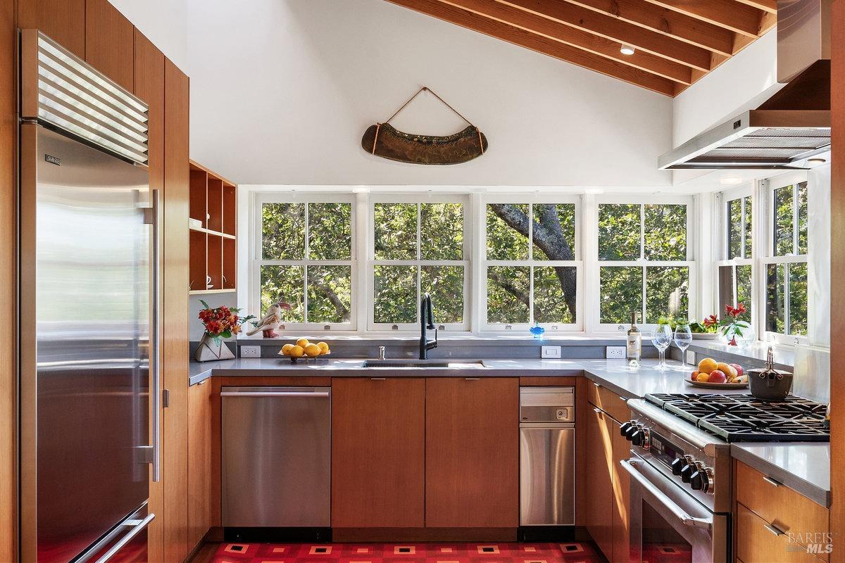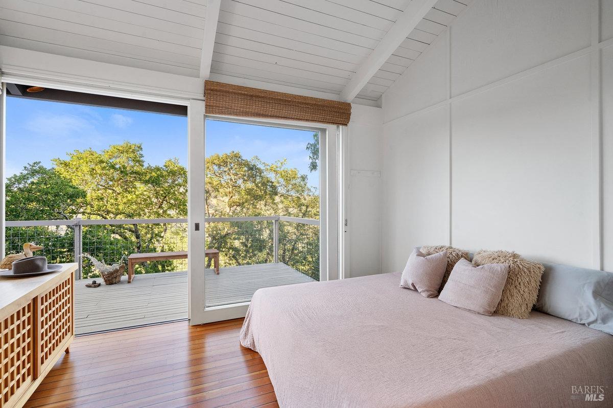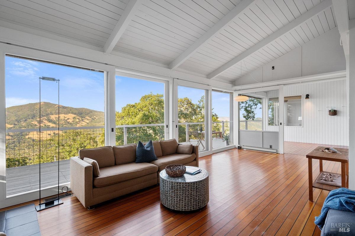 Designed by renowned architect William Turnbull, the 2,500-square-foot main house seamlessly integrates with the surrounding landscape. Unparalleled sanctuary spread across over 47 acres of pristine land. Unique blend of natural splendor, architectural distinction modern amenities, making it an ideal haven for discerning buyers who value privacy, a great reputation and potential. The driveway leads up from the valley below to a courtyard formed by 2 separate garages and by the tall wall of the house. A masterpiece of design featuring two spacious bedrooms, open floorpan with gourmet kitchen - SubZero fridge, Dacor gas range, Miele dishwasher & wood burning fireplace. A detached 1bdr 1ba 1,995-square-foot guest house with full kitchen and a basement, designed by SF modernists Marquis & Stoller, offers additional accommodation and is complemented by a private large deck with breathtaking panoramic views. An outdoor pool and a pool house designed by architect Dan Solomon. Embrace the essence of wine country living with 1,3 acre of Cab Sauvignon producing grapes -3 vineyard blocks planted in high-altitude vineyard (1400-1600ft elevation), Mt. Veeder AVA. Explore the private hiking trail leading to the summit of the mountains, offering panoramic views of Sonoma & Napa valleys.Interested in this Listing?
