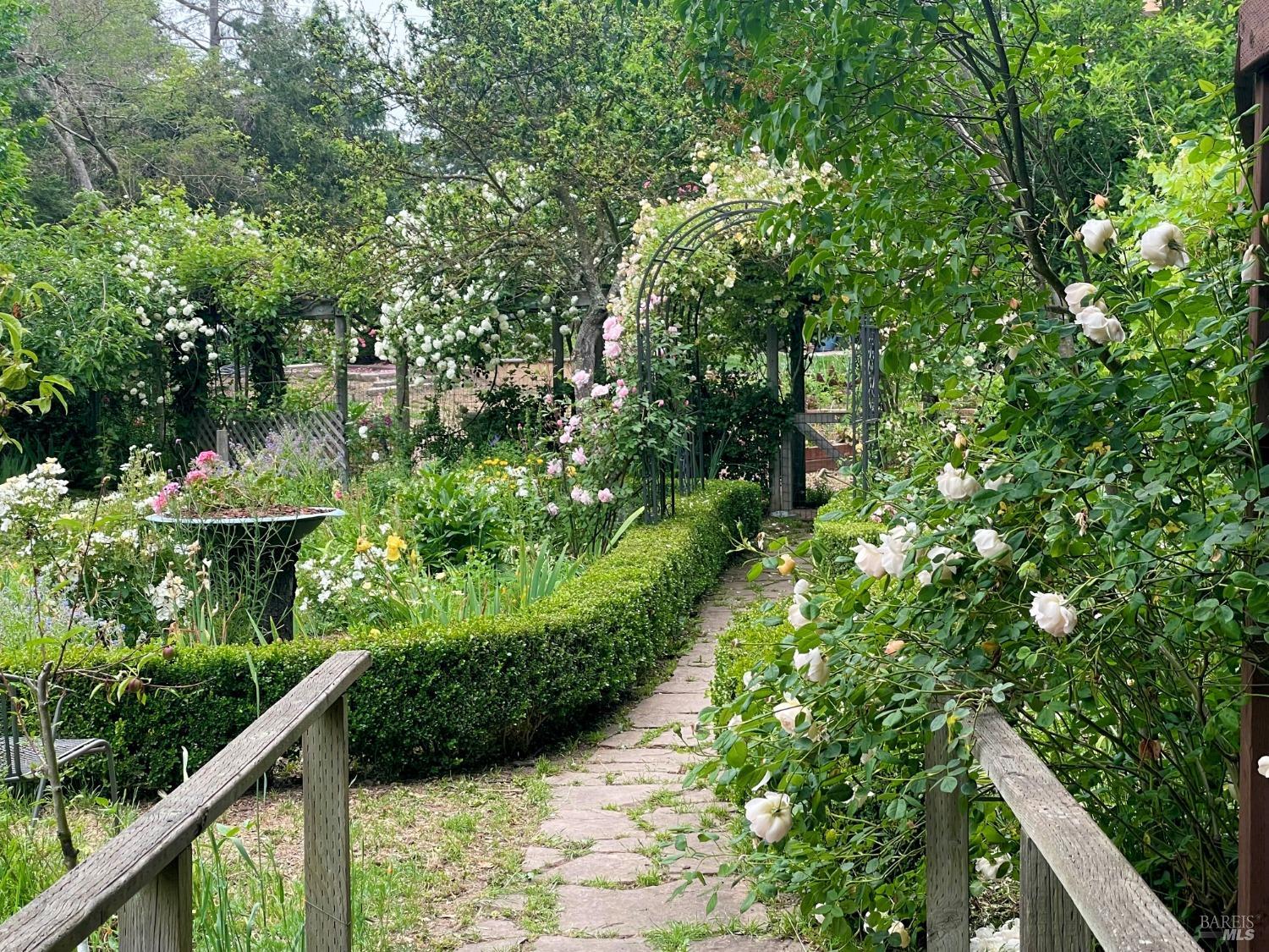 The picture perfect combination of country living and elegance. The home is set amidst gardens bursting with color. Enjoy the serenity, the fresh air, the birds playing in the fountain. Such a rare opportunity to own an acre of pure joy. The home has been lovingly crafted and updated through the years with the second story added in 1992. You will appreciate the European architectural elements from the beveled glass door and imported iron hardware to the beautiful decorative ceiling tiles in the kitchen and wainscoting in the stairwell. French doors open out to the back deck and pool from the dining, family, and guest rooms for that indoor/outdoor lifestyle. The sunlit stairwell leads up to the most amazing family room with vaulted ceiling and so much natural light. It separates the primary suite from a large guest rm or studio with tons of storage. French doors & two balconettes with sweeping views of the garden. The huge primary suite has vaulted beam ceiling and garden views. The front garden has so many places to entertain or simply relax. Fruit trees, flowers and companion planted potager garden, a greenhouse with citrus trees and the picture-perfect lily pond. Other great features are the oversized garage with EV charger, storage room & garden shed.Interested in this Listing?