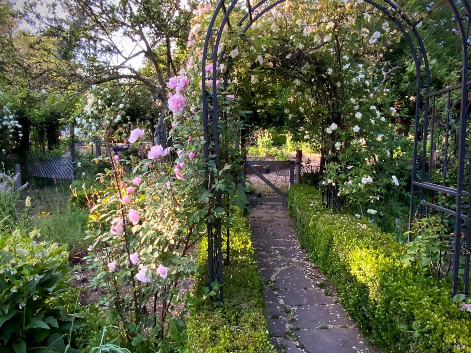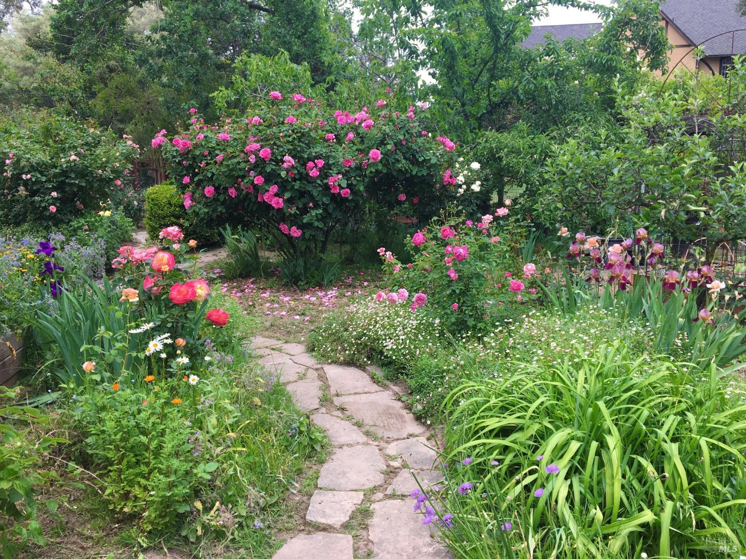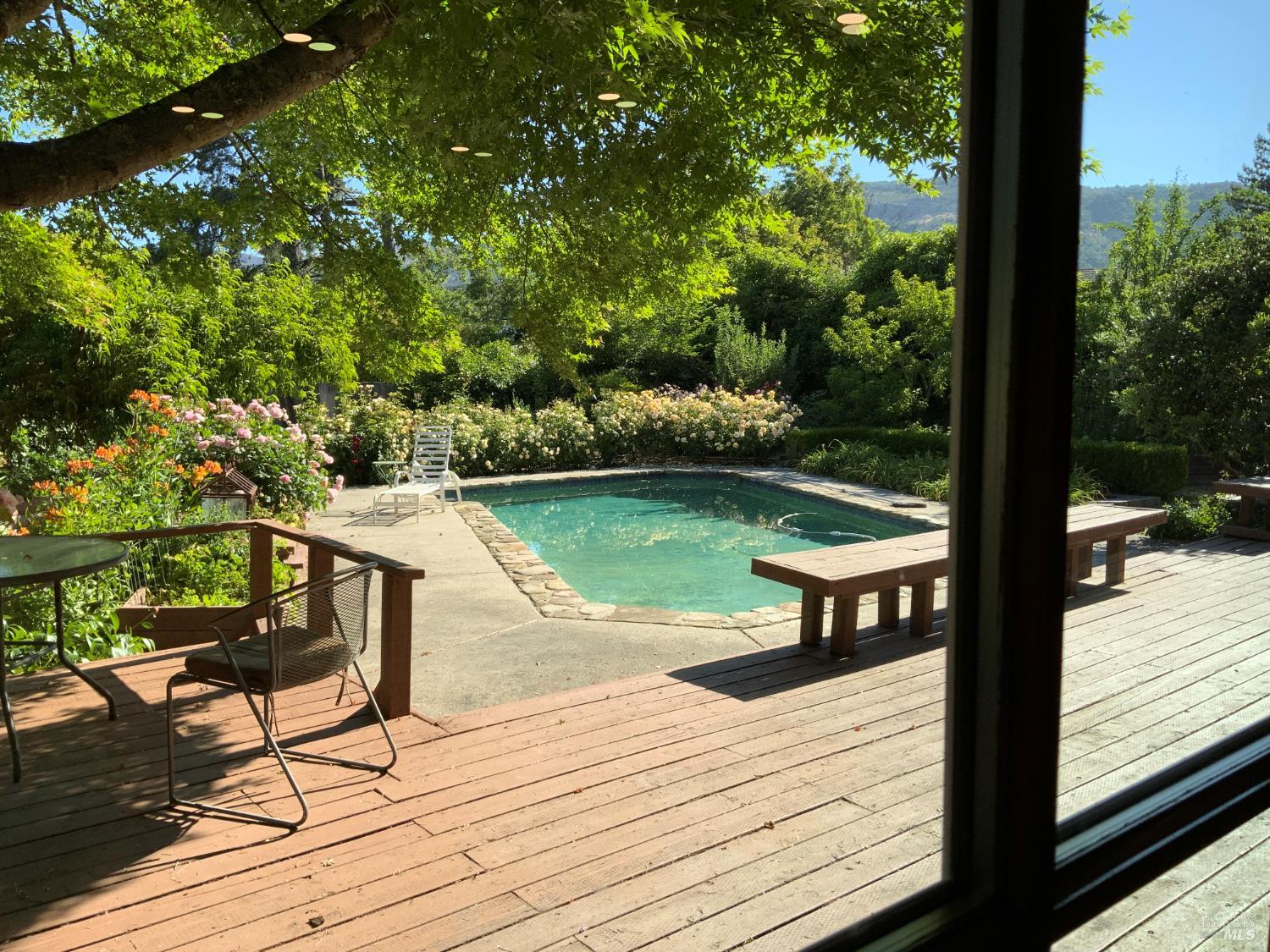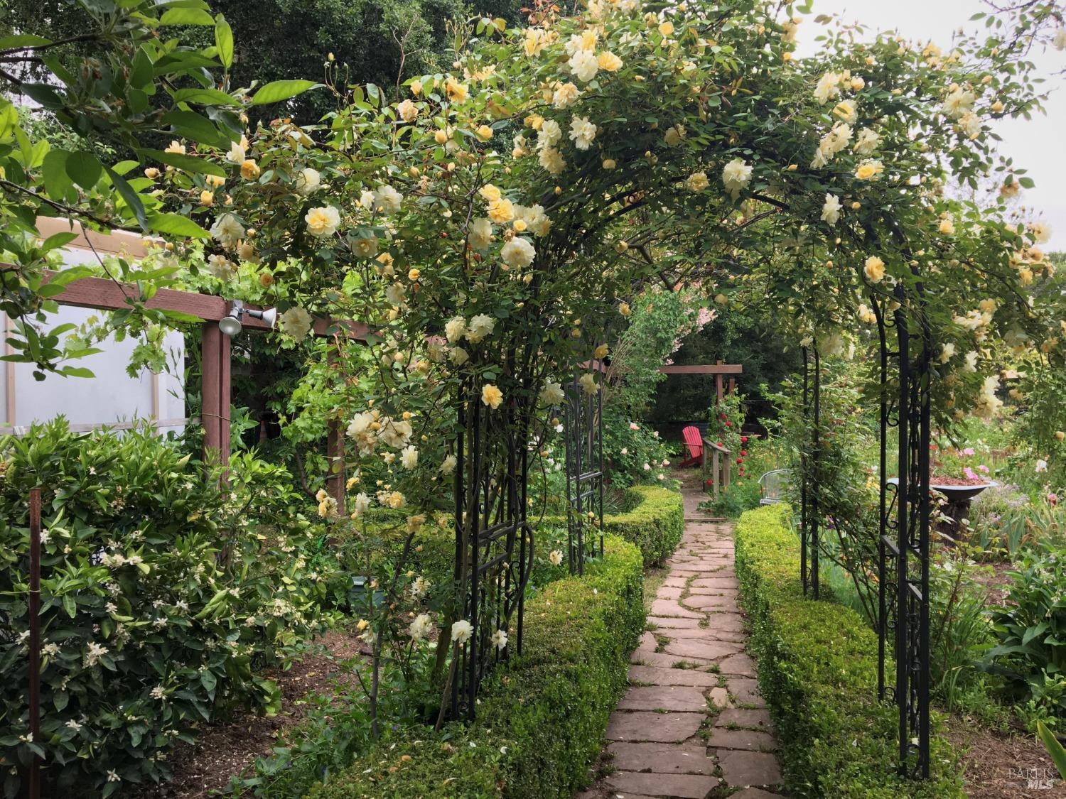 The picture perfect combination of country living and elegance. The home is set amidst gardens bursting with color. Enjoy the serenity and fresh air. Such a rare opportunity to own an acre of pure joy. The home has been lovingly crafted and updated through the years with the second story added in 1992. You will appreciate the European architectural elements from the beveled glass door and imported iron hardware to the beautiful decorative ceiling tiles in the kitchen and wainscoting in the stairwell. Counter seating between the kitchen & family room with a rustic brick fireplace. French doors open out to the back deck and pool from the family room, living and guest room for that indoor/outdoor lifestyle. This will be the hub of summer fun. Cooking, dining, playing in the sunny pool, or relaxing beneath the shade of gorgeous Japanese Maples. The sunlit stairwell leads up to the most amazing second family room with vaulted ceiling and so much natural light. It separates the primary suite from a large guest room or studio. French doors & two balconettes with sweeping views of the garden. The huge primary suite has vaulted beam ceiling and garden views. The front garden has so many places to entertain or simply relax. Fruit trees, flowers and companion planted potager garden, a greenhouse with citrus trees and the picture-perfect lily pond. Other great features are the oversized garage with EV charger, large storage room & garden shed. A place in the country and yet just seconds away from downtown Napa. Your dream come true!Interested in this Listing?
