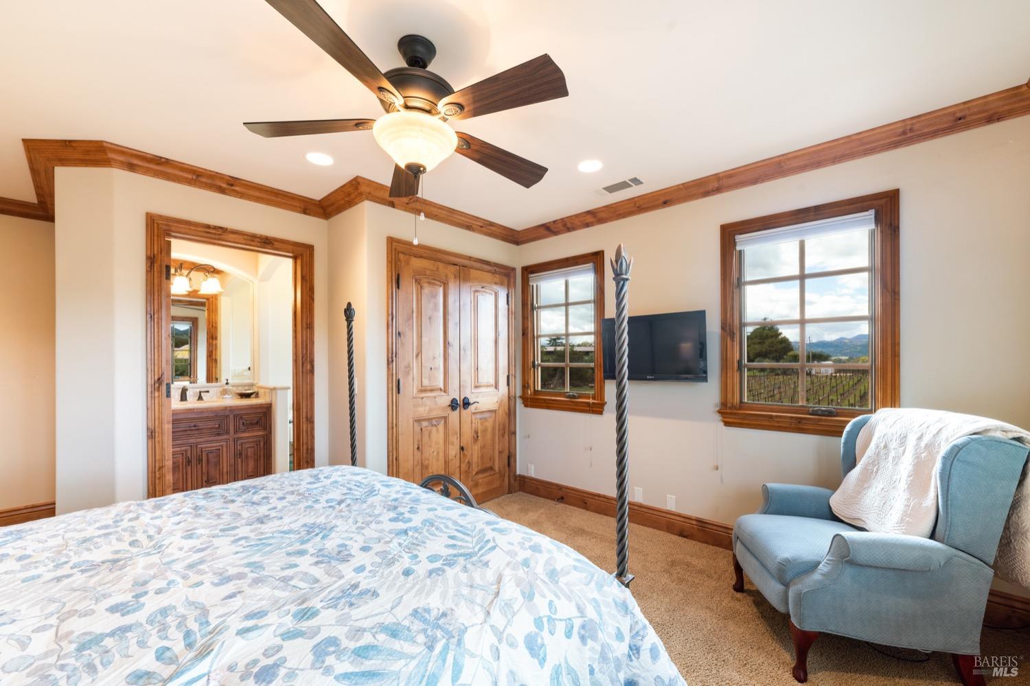 A family-owned estate since 1943 like this rarely becomes available or even makes it on the market. The gently sloping, 19.2-acre parcel sits on the Valley floor and is bisected by the Soda Creek. It has always been an Agricultural property, most recently planted to Vineyards in 2004. The entrance is anchored by an original 1907 agricultural barn, then winds through the vineyards framed with stately Oak trees and gorgeous natural landscape. Three wells on the property provide ample water to three homes and approximately 10.9 acres planted predominantly to Cabernet Sauvignon. The family built the well-constructed European Farmhouse-style main home and guest house from the ground up in 2009. The main house, 4224+/- sq. ft., with 4 BD, 4.5 BA and great room. Sited next to the pool lies the guest house of roughly 1000+/- sq. ft., kitchen, living room, dining room, two bedrooms, and 1.5 bath. A sufficient distance away, you'll find a complete ADU with 1350 square feet of living. Zoning allows for Winery use and the property benefits from having an existing turning lane on the Silverado Trail directly in front of the property entrance.Interested in this Listing?