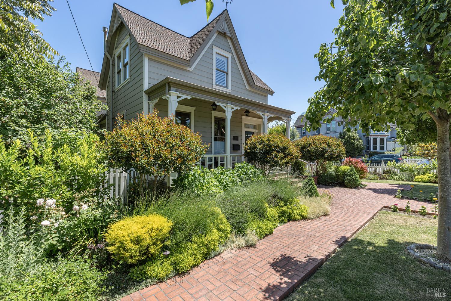 Discover unparalleled craftsmanship in this exquisitely updated three-bedroom, three-bathroom residence spanning 2,534 square feet. Built in 1871, this historic and distinguished property harmoniously blends heritage charm with sophisticated modern amenities. The culinary enthusiast will appreciate the gourmet kitchen, featuring Wolf cooktop, Subzero refrigerator, and custom cabinetry with refined granite countertops. Each bathroom has been meticulously reimagined with stone counters, quality fixtures, and thoughtful design elements including a luxurious jacuzzi in the primary bathroom suite. This enchanting outdoor sanctuary is unlike any other, boasting a heart redwood deck, stone patio, and professionally designed landscape with efficient irrigation and atmospheric lighting. Enjoy a glass of wine in the jasmine Gazebo or relax on the front porch surrounded by flowers. This meticulously maintained property, full of history since 1871, nestled in historic Downtown Napa, represents a rare opportunity to embrace a lifestyle of elegance and comfort.Interested in this Listing?