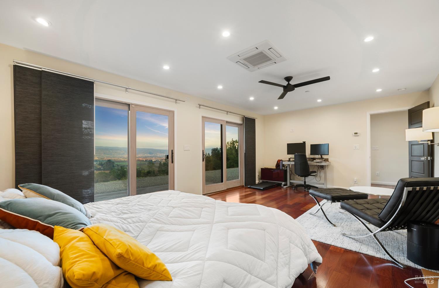 Live life above it all! Experience this extraordinary Napa estate straddling the coveted Mt Veeder and Oak Knoll AVA's, and offering sweeping vineyard, valley, and mountainside views in every direction. A private drive leads to this serene retreat just minutes from downtown Napa and Yountville, with approval for approximately two acres of vines and ADU's. The over 3,700 sq ft single-level residence has been fully remodeled with timeless, sophisticated finishes. At its heart is a dramatic galleria-style living space with floor-to-ceiling glass roll-top doors that create seamless indoor-outdoor living and frame uninterrupted panoramic views- an entertainer's dream! The chef's kitchen features designer countertops, stainless steel appliances, an induction range, and stunning valley outlooks. The primary suite offers vineyard views, a spa-like bath, and an oversized his and her's walk-in closet, while additional bedrooms and flexible living spaces provide comfort and versatility. (Bedroom #3 currently staged as living space.) Large laundry rooms with ample storage. Outside, level areas offer exceptional potential for a pool, outdoor kitchen, gardens, and generous entertaining terraces. See photos of virtual renditions. Multiple IPE view decks further enhance the property's breathtaking vistas. Solar and a whole-house backup battery system, both recently installed, provide modern energy efficiency and peace of mind. The property is county-approved for both an ADU and a Junior ADU, ideal for guest accommodations, income or multigenerational living. Additionally, allowance for one non-dwelling structure with no maximum square footage. All is subject to final county approval. A rare blend of privacy, panoramic views, vineyard potential, and one-level sophistication capturing the essence of elevated Napa Valley living!