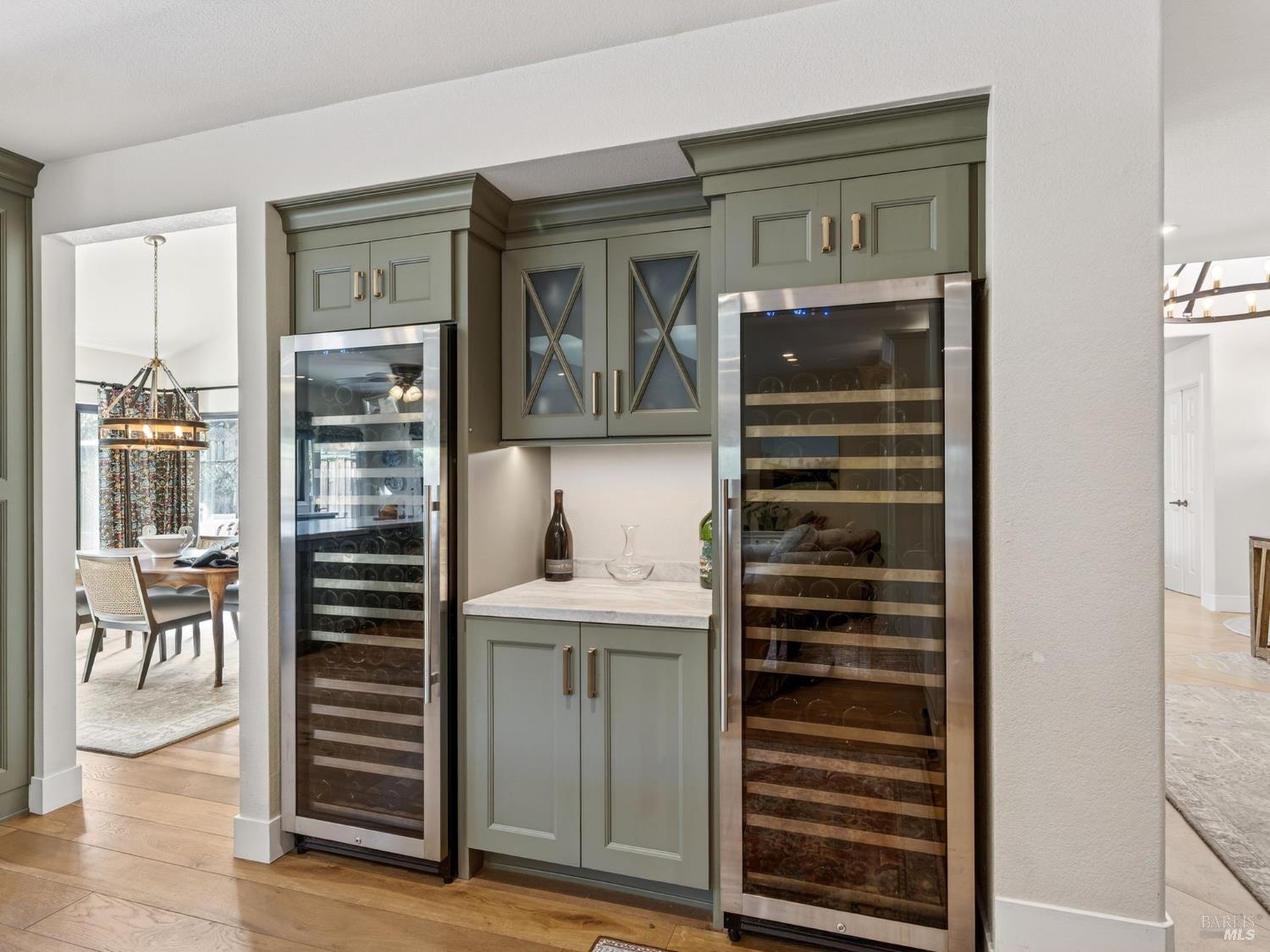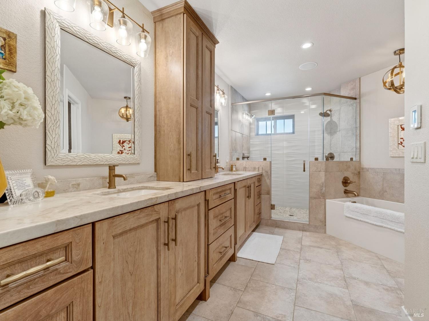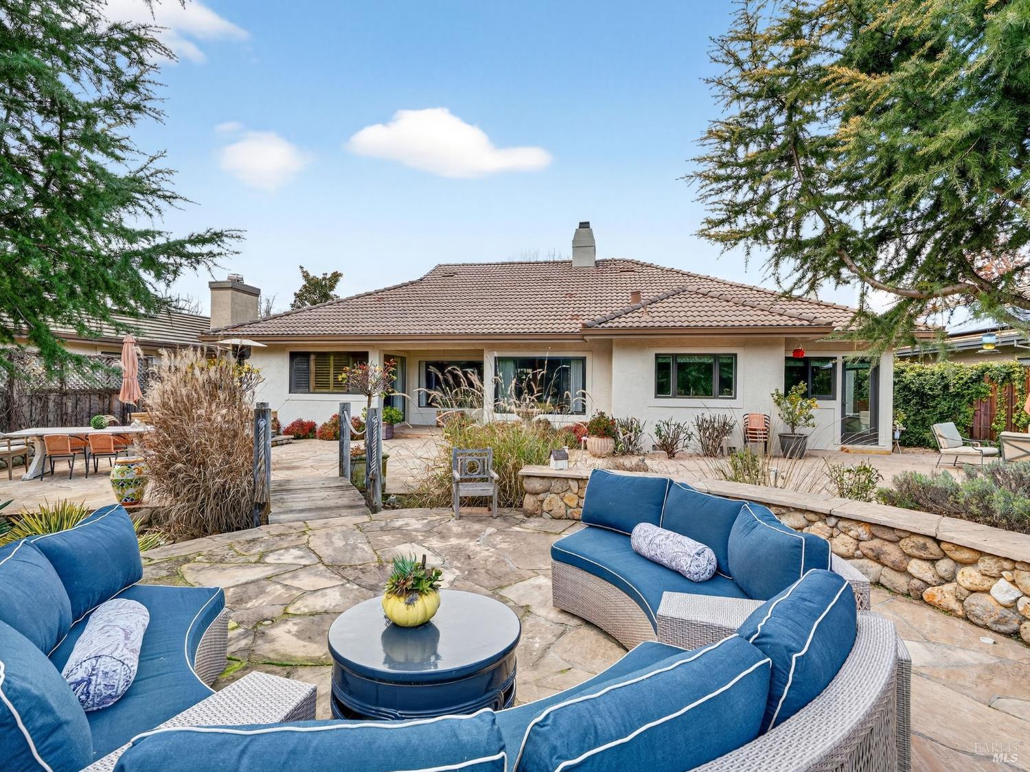 Welcome to 416 Troon Drive. This exceptionally updated, single-level residence offers 4 bedrooms and 2 bathrooms and thoughtfully designed living space on a spacious .27-acre lot. Step inside to discover a bright, open floorplan with tasteful finishes, custom window treatments and wood, tile and carpet flooring. The living room boasts a vaulted ceiling and fireplace, dining area, family room with fireplace and a seamless flow that's ideal for both everyday living and entertaining. The heart of the home features a chef's kitchen with high-end appliances, 6 burner gas range, built-in refrigerator, custom cabinetry, island with eating area, granite counter tops, farm sink, warming drawer, and two generous wine refrigerators. The luxurious, spa-like primary suite features a tiled walk-in shower, soaking tub, fitted walk-in closet, wood accent ceiling and speakers. The additional three well-appointed bedrooms complete the interior living space for family, friends or even a home office. Enjoy indoor-outdoor California living in the professionally landscaped backyard with water features, spacious dining areas and hot tub, perfect for al fresco dining, gatherings or relaxing in your one-of-kind back yard. Additional highlights include central heating and cooling, an attached two car garage, and a friendly HOA that maintains common areas and front yard landscaping. Just steps from your front door, residents have access to Silverado Springs' private community amenities including tennis courts, pool and spa creating a true resort-style lifestyle in Napa Valley. Ideally situated close to Napa's premier wineries, dining, and outdoor recreation, this home brings together comfort, style and convenience.