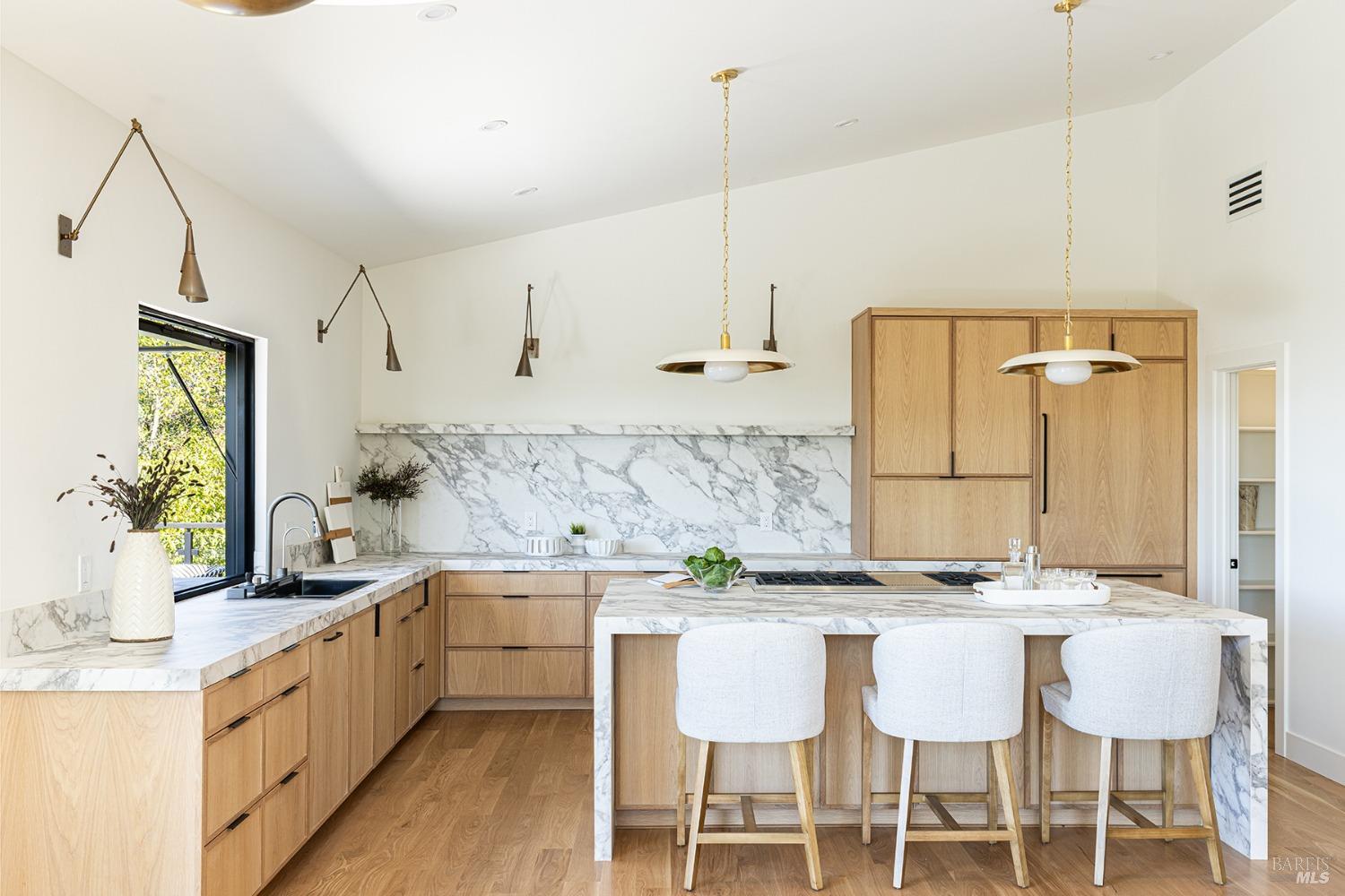 Set in Napa's sought-after Alta Heights neighborhood, this newly reimagined residence blends elevated design with modern California comfort. Completed in early 2025, the home offers 3 beds, 3 baths and 2 powder rooms, across a thoughtful and contemporary refined layout. Vaulted ceilings and expansive windows frame sweeping views from Napa to San Pablo Bay. A beautiful glass NanaWall opens to an expansive deck, creating seamless indoor-outdoor flow ideal for entertaining both indoors and outdoors in Napa Valley's temperate climate. The chef's kitchen features Sub-Zero and Wolf appliances, a waterfall island, and a walk-in pantry. The primary suite offers a tranquil escape with a spa-inspired bath, soaking tub, dual-head shower, and generous walk-in closet. On the lower level, a private guest wing includes two bedrooms, two bathrooms, a laundry room, and a versatile den or office opening to a covered patio and lush garden. Rebuilt from the ground up with all-new systems, including HVAC, plumbing, electrical, roof, windows, and doors, this turnkey home offers enduring quality and peace of mind. Just moments from the vibrant core of Downtown Napa, enjoy easy access to acclaimed restaurants, boutique shops, tasting rooms, and the local music and arts scene.Interested in this Listing?
