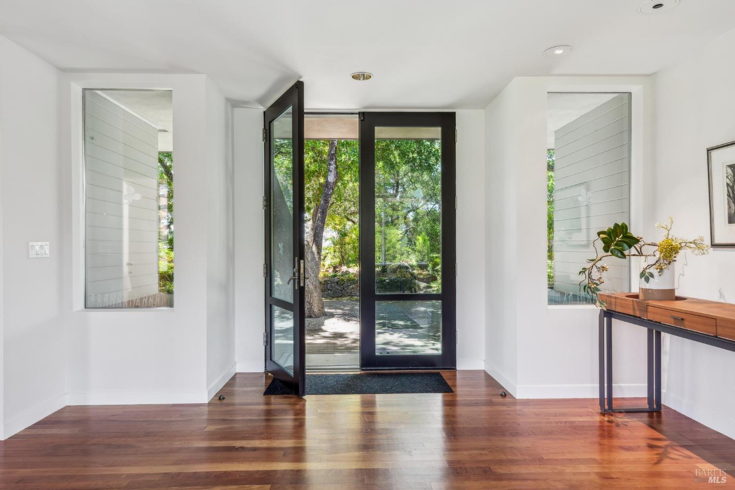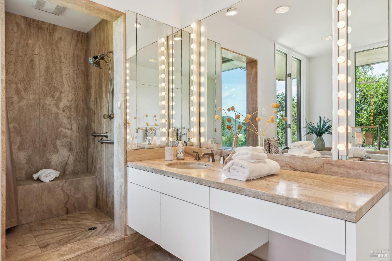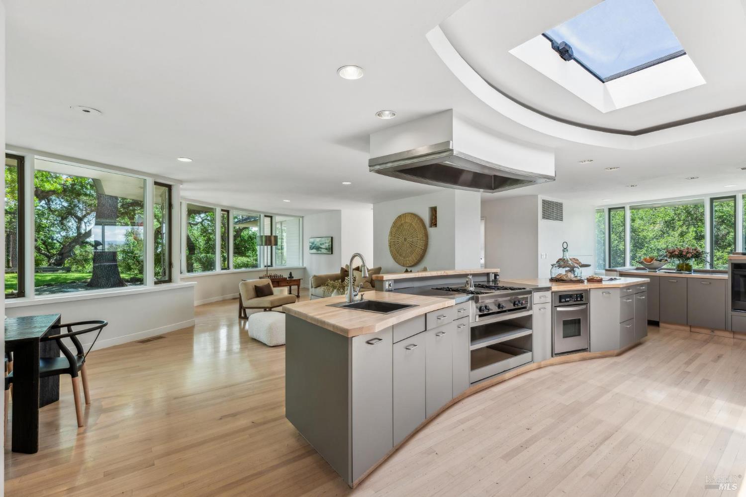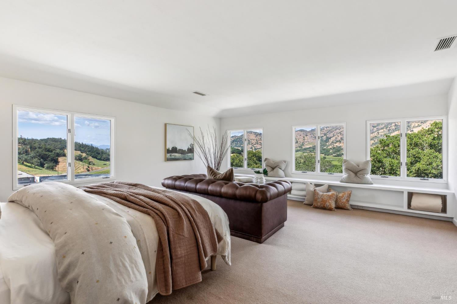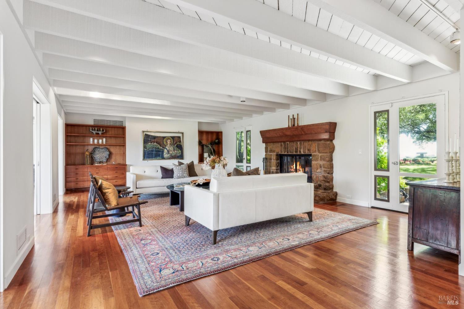 The incredible legacy of this estate will capture your imagination, while the beauty of the setting and the style and comfort of the home will capture your heart. Perched atop a knoll and anchored in bedrock, this 7,912 SF, 6-bedroom home commands views of Napa Valley with Stags Leap Palisades as the backdrop. Designed to take in the ever-changing light on the peaks, the home blends strength and artistry with restrained elegance. The glass-paneled doors open to amber wood floors and a gallery of windows. The warm bookshelf lined library is tucked down the hall, while the living room with open beams, stone fireplace, built-ins and hidden glass doors that partition it from the window gallery, then flows seamlessly to the bar & dining room with gorgeous views. The chef's kitchen features butcher block counters, a six-burner Wolf range, skylight, and is open to the family room. The west-facing primary suite offers a marble bath, deep soaking tub, and spacious dressing room. The lower level includes a former dance studio, additional bed & bath, woodworking shop, wine cellar, and guest suite with its own outside patio. Upstairs, three charming bedrooms feel like a secret retreat. Surrounded by gardens, and heritage oaks this 8.19 acres is history waiting to be loved and reimagined.Interested in this Listing?